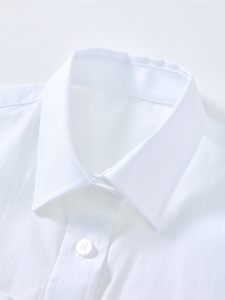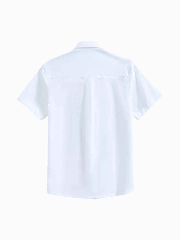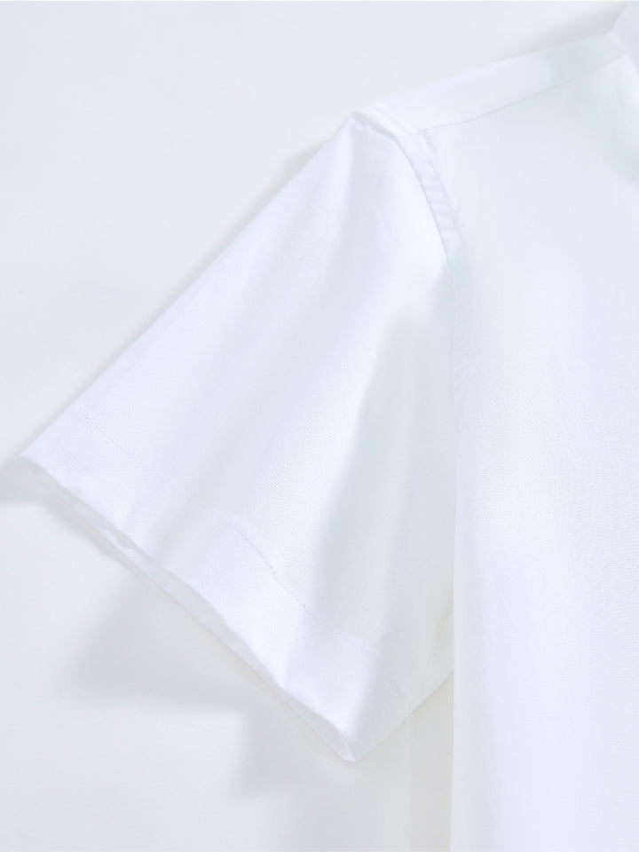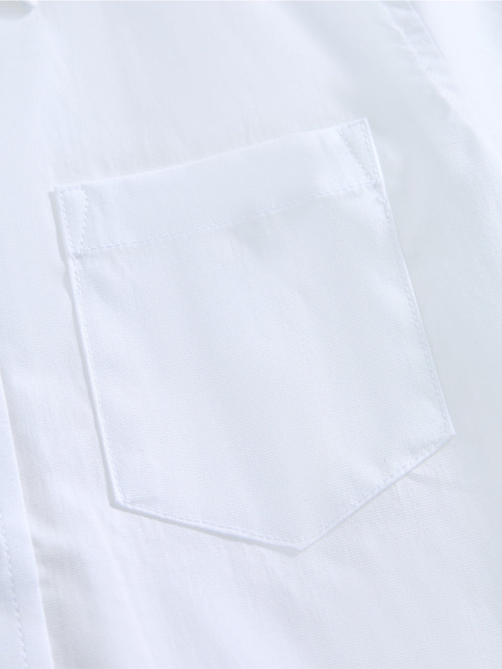يتميز هذا القميص القصير الأكمام بلون موحد بأزرار أمامية للإغلاق، وجيب أمامي عملي وياقة كلاسيكية-مثالي للإطلالات الكاجوال أو شبه الرسمية.