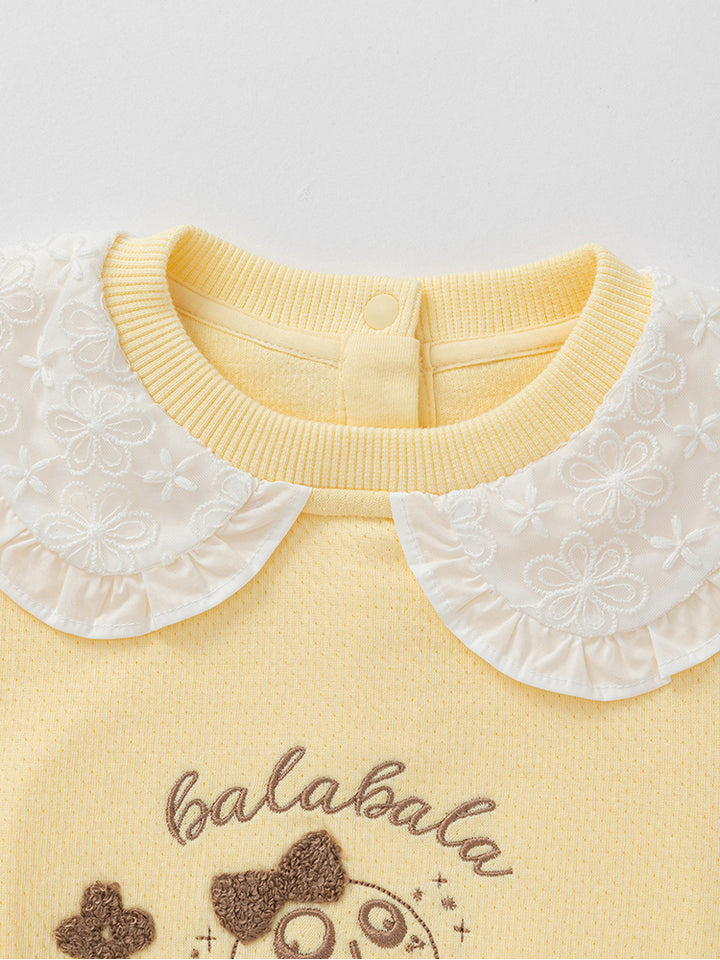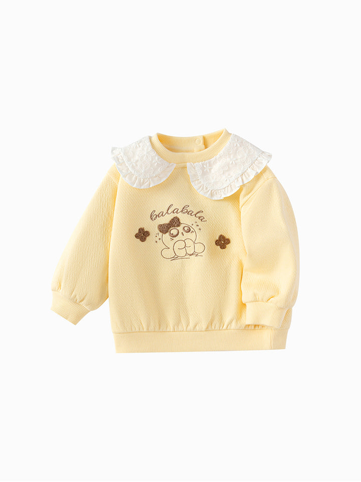long sleeves blouse decorated with front embroidery, comes with wide collar and buttons for closure on the back side