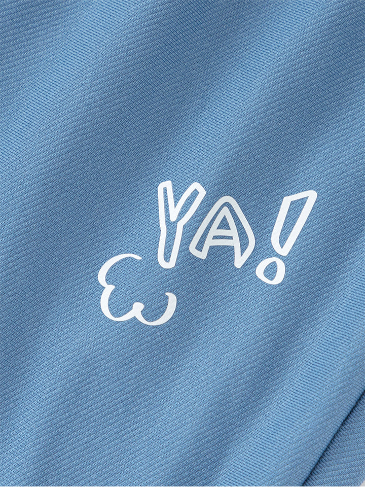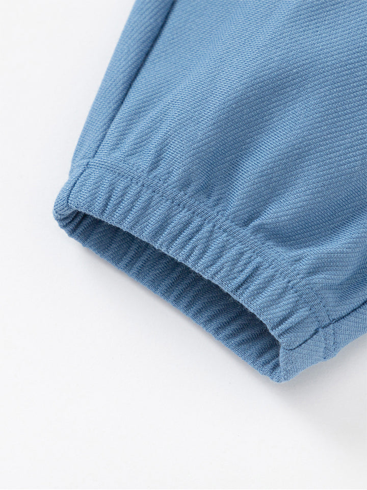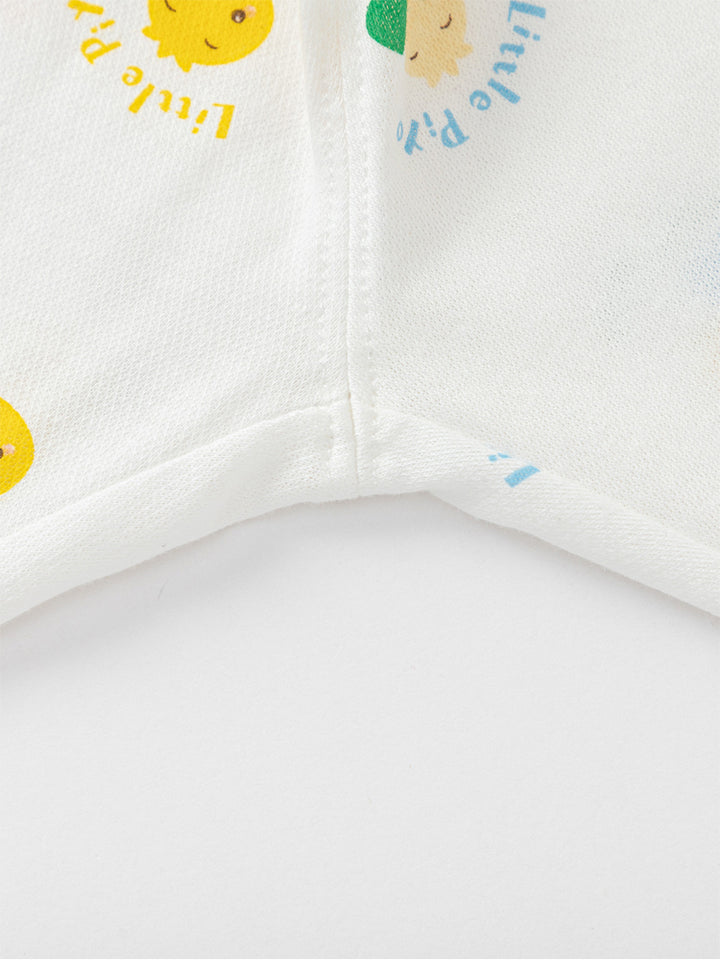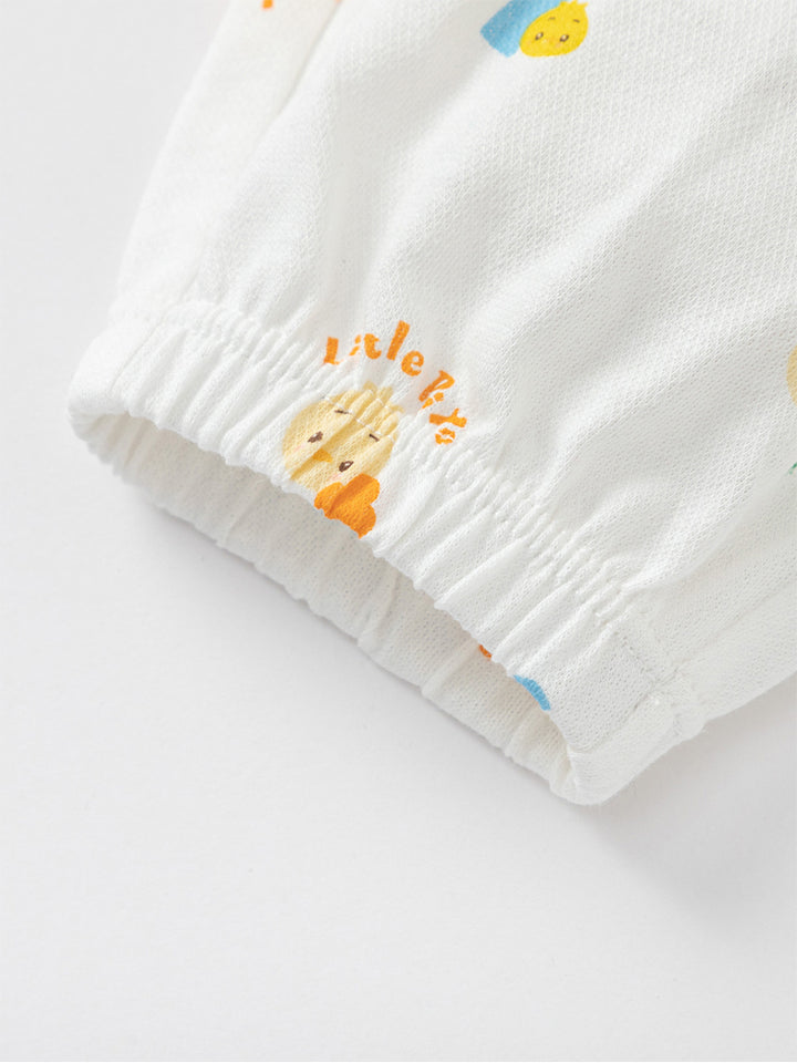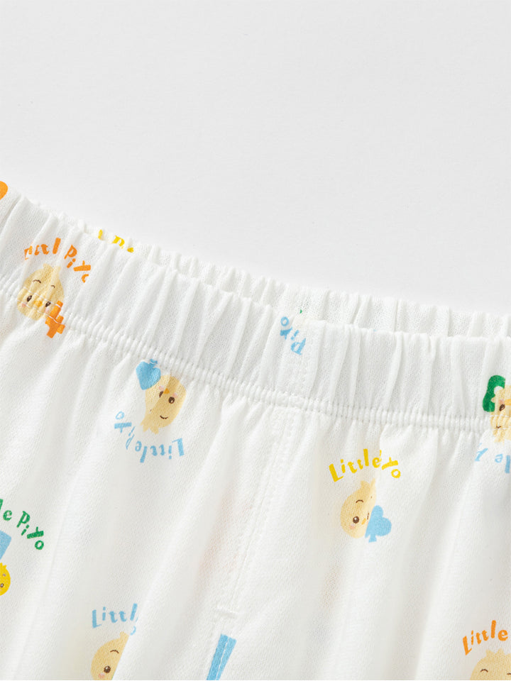 baby boy casual pants, decorated with a print on the front side and a duck patch detail on the side of one leg, comes with a comfy elasticated waistband