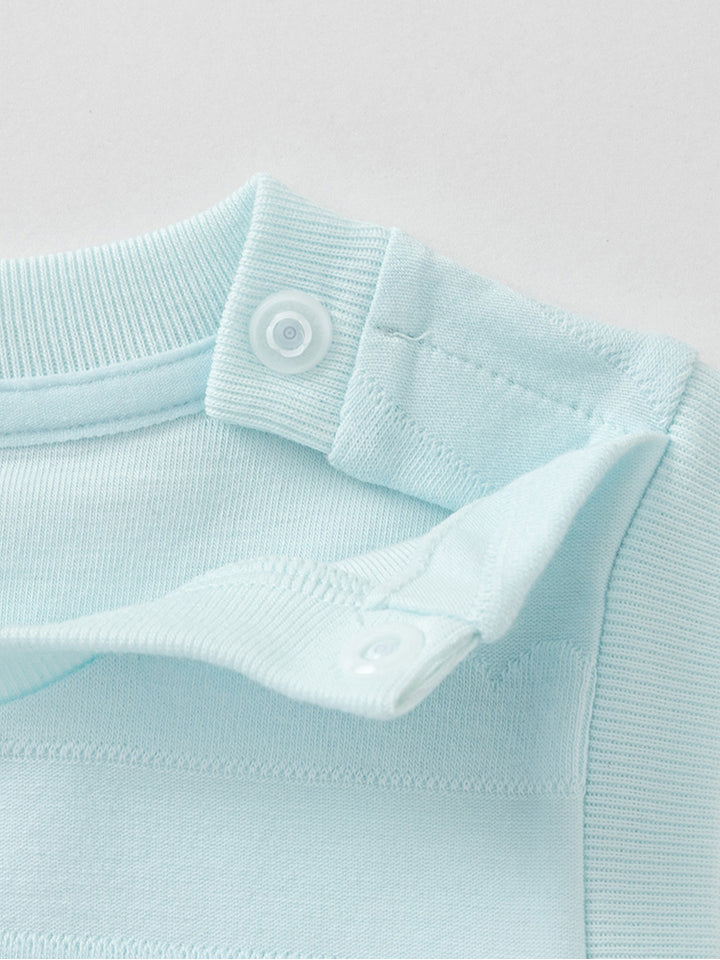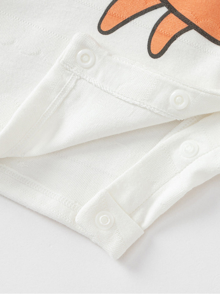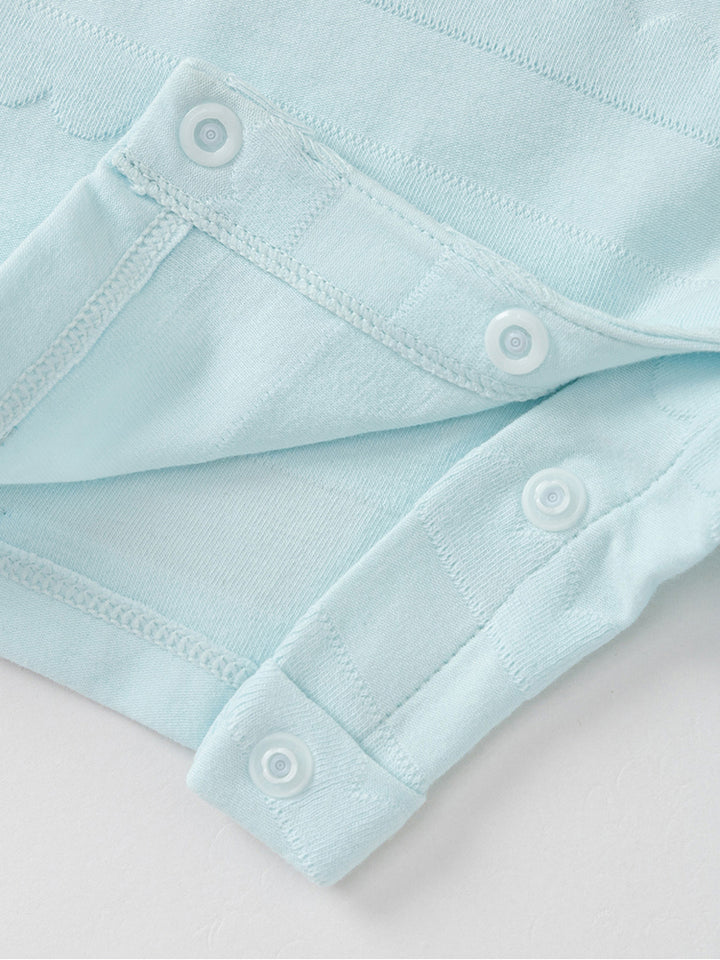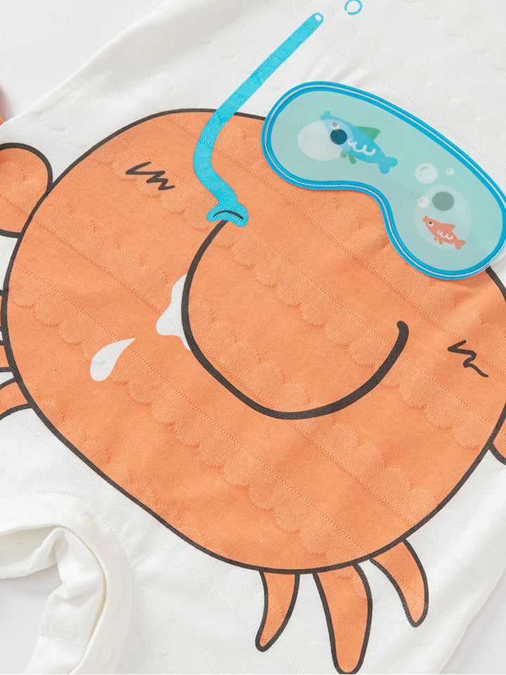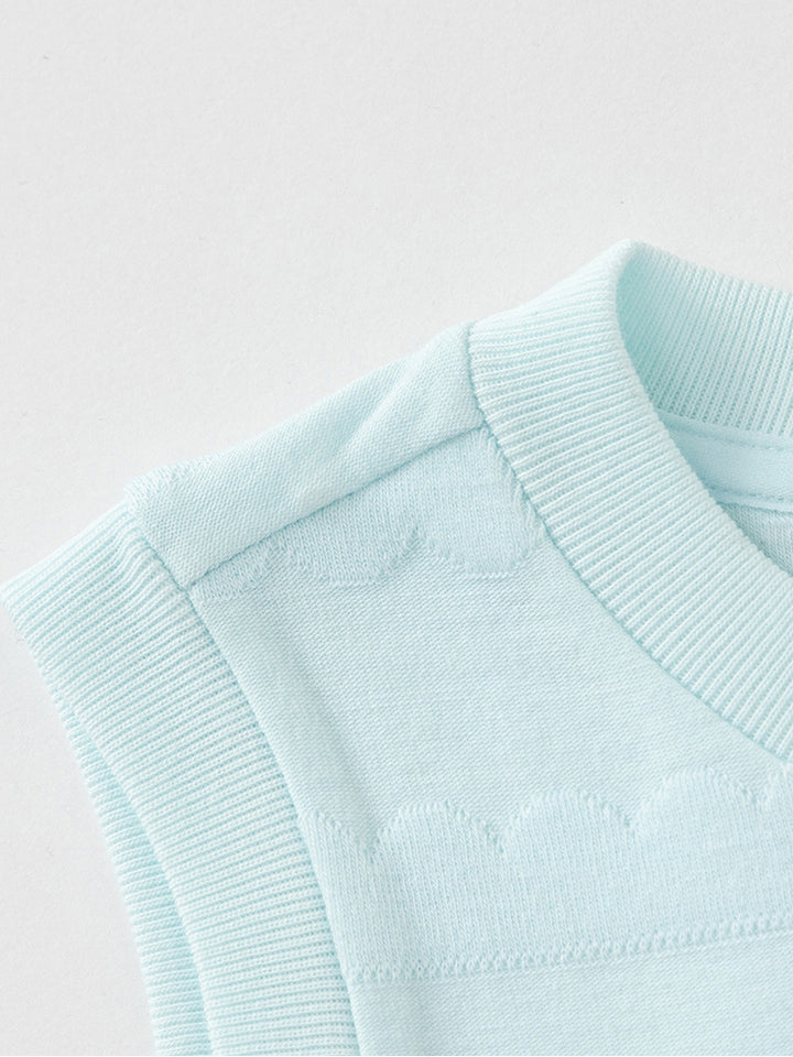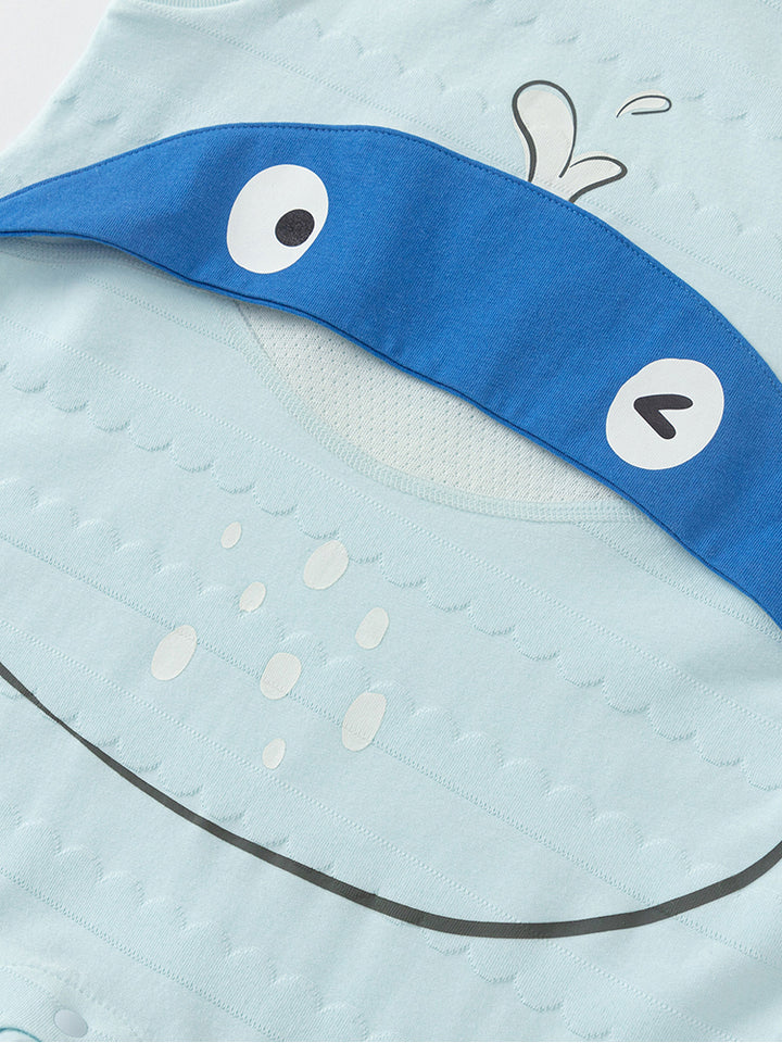 sleeveless baby boy overall, decorated with a print on the front side, comes with push buttons for closure on one shoulder and on bottom side and with a rounded shape neckline