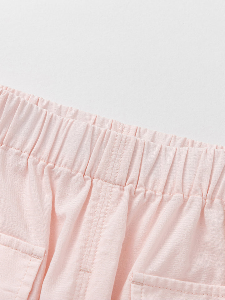 flowy pants in a solid mono colored pattern, comes with pockets on the front side and a comfy elasticated waistband