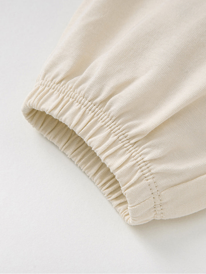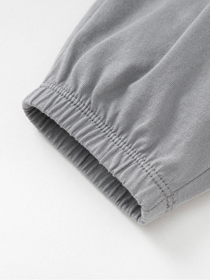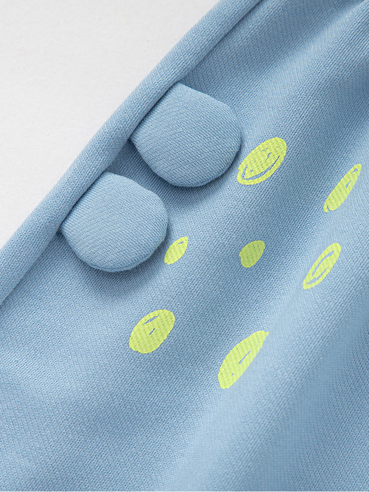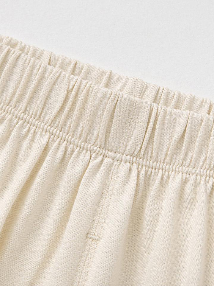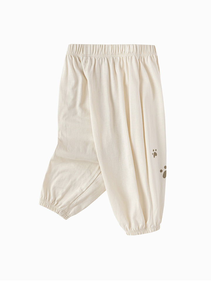 flowy pants in a solid colored pattern, decorated with a print on he front side, comes with a comfy elasticated waistband
