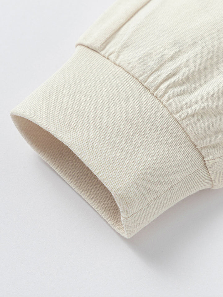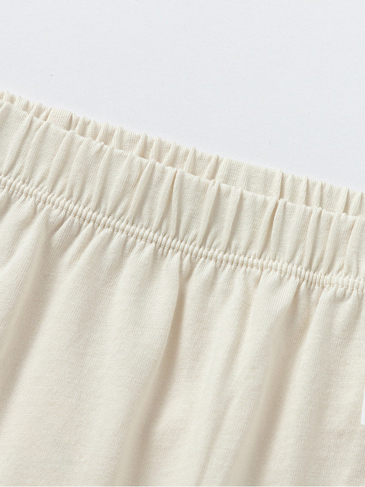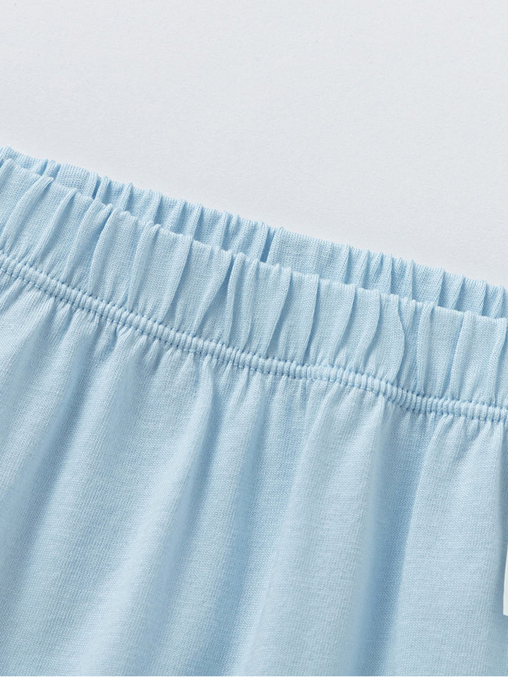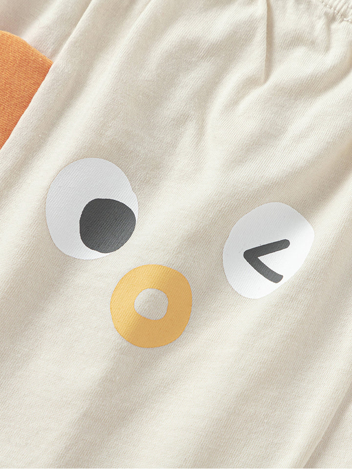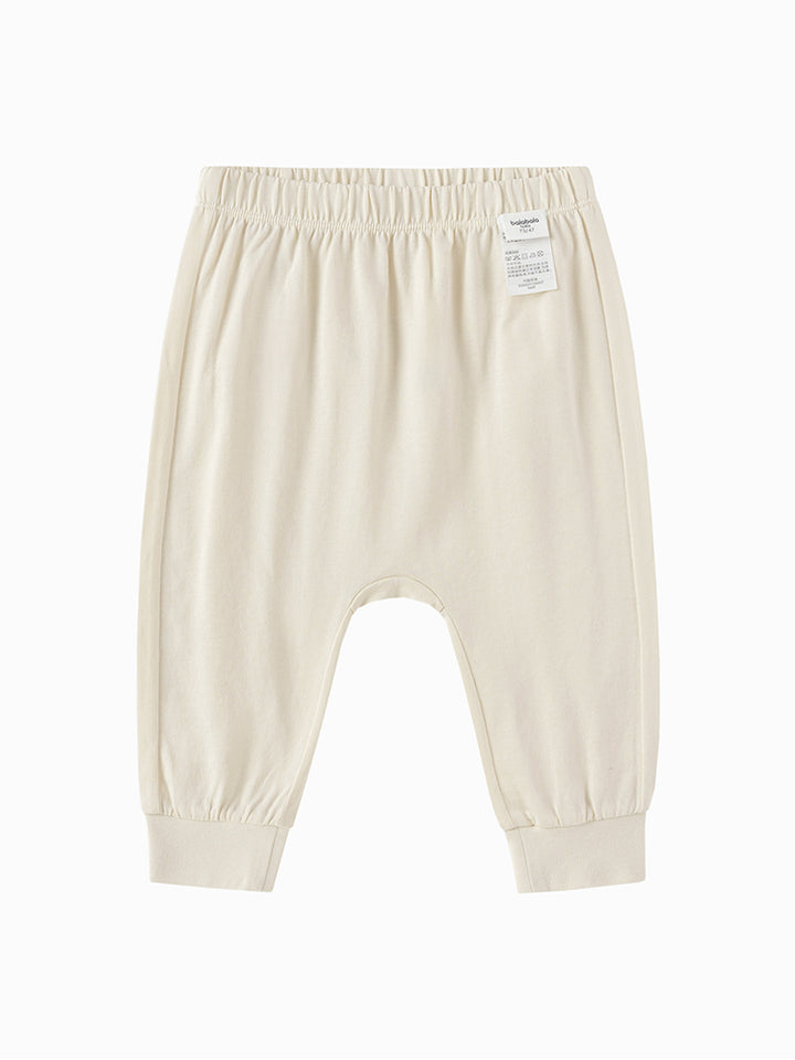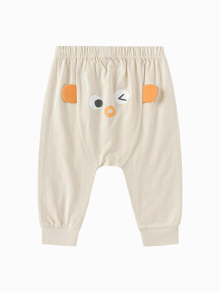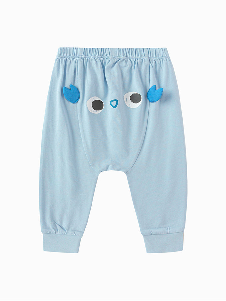 flowy pants in a solid colored pattern, decorated with a print on he back side, comes with a comfy elasticated waistband