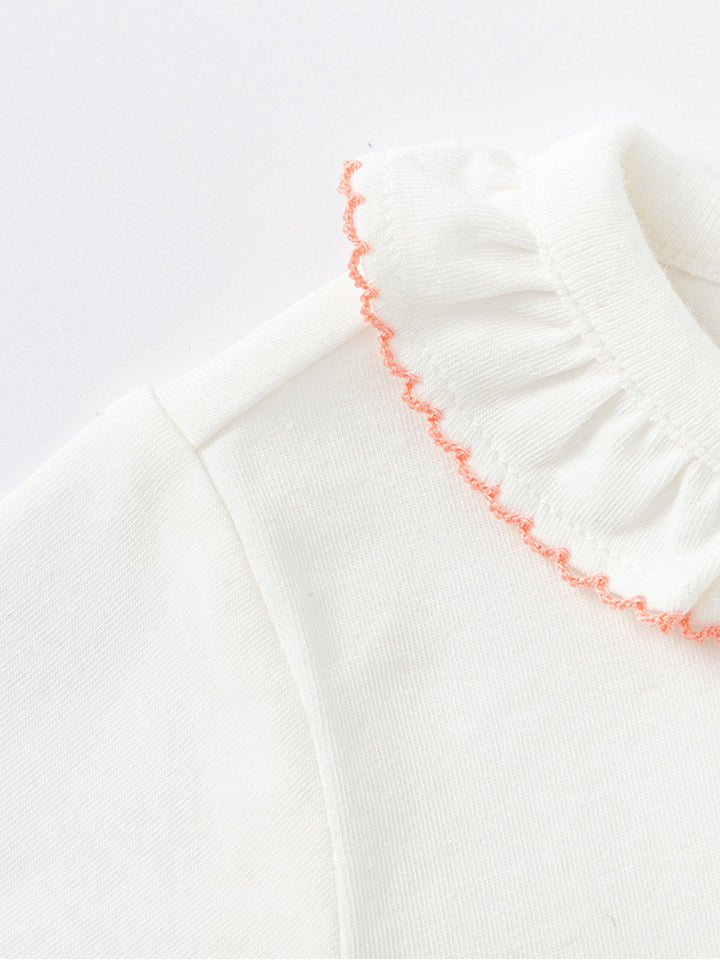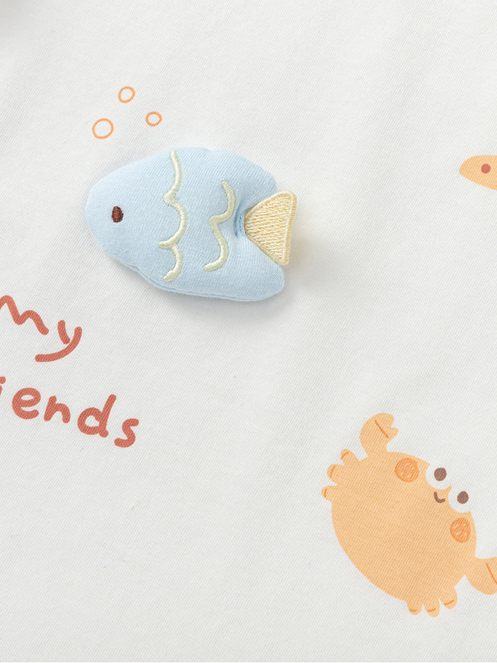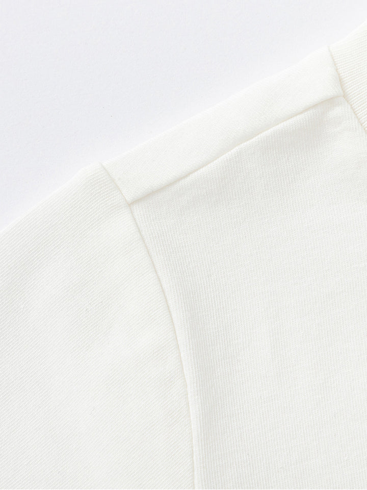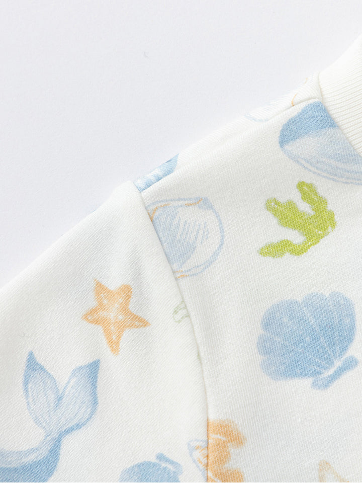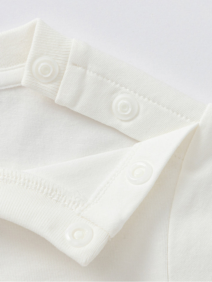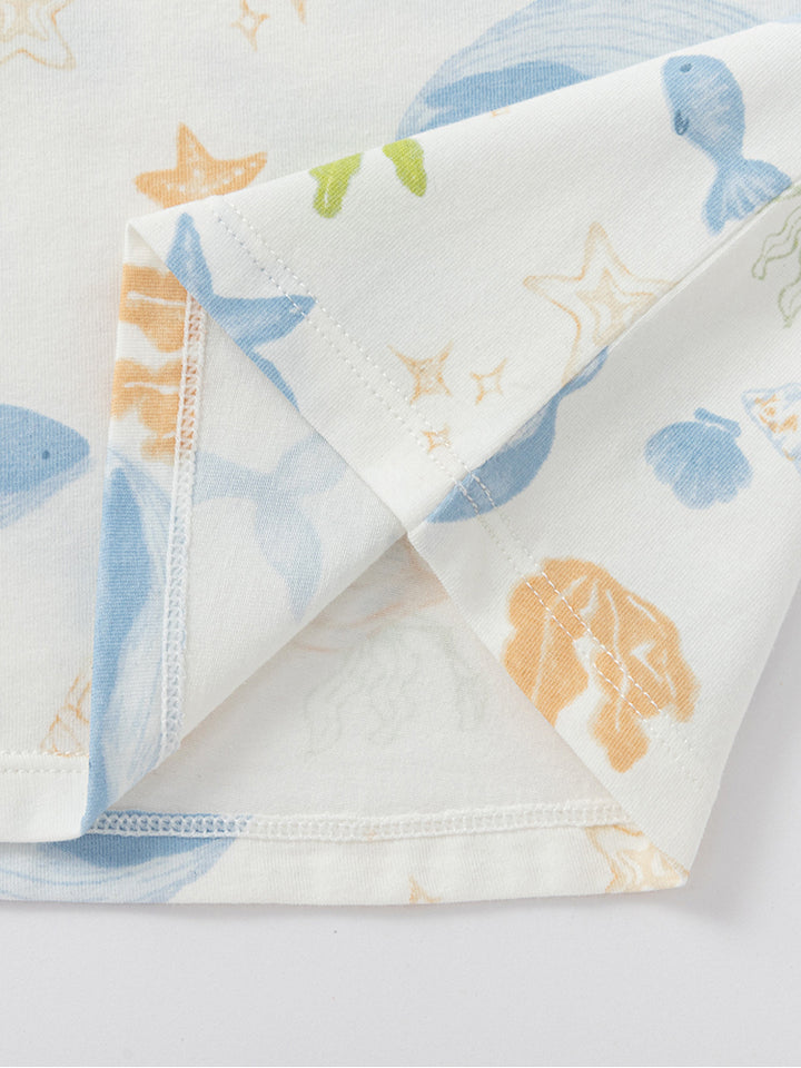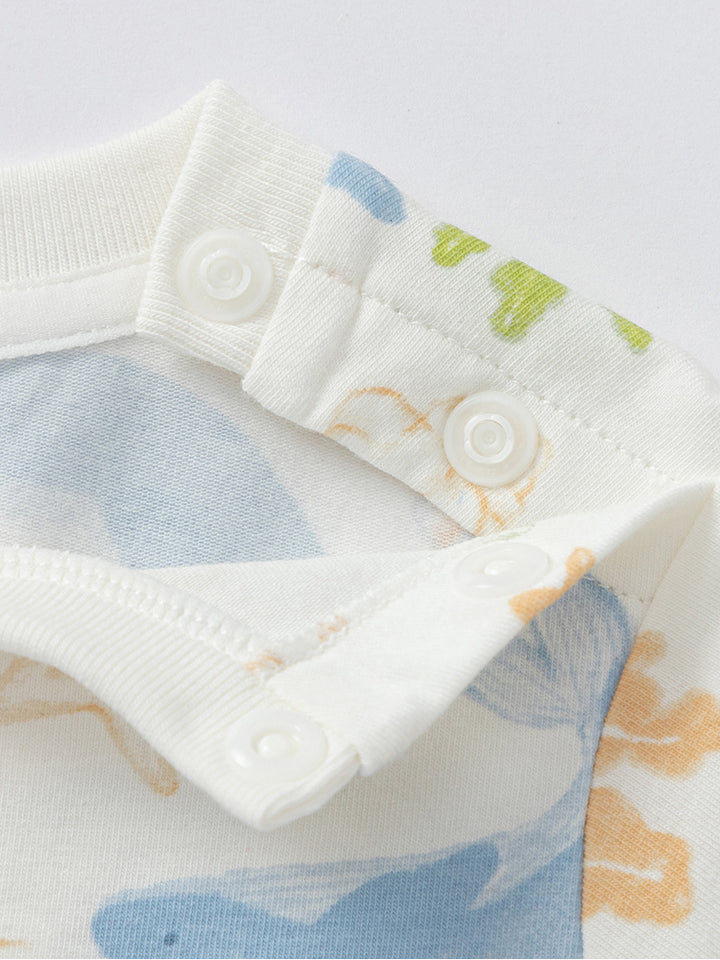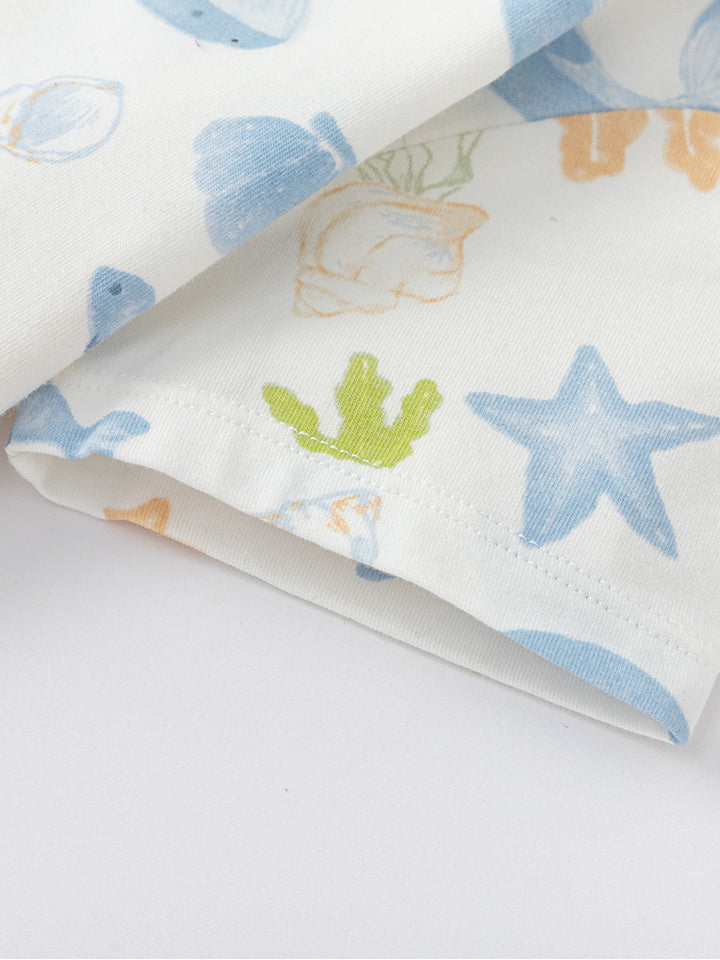 short sleeves t-shirt, decorated with a print on the front side, comes with buttons on one shoulder and with a rounded shape neckline