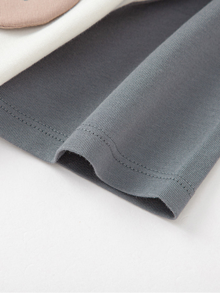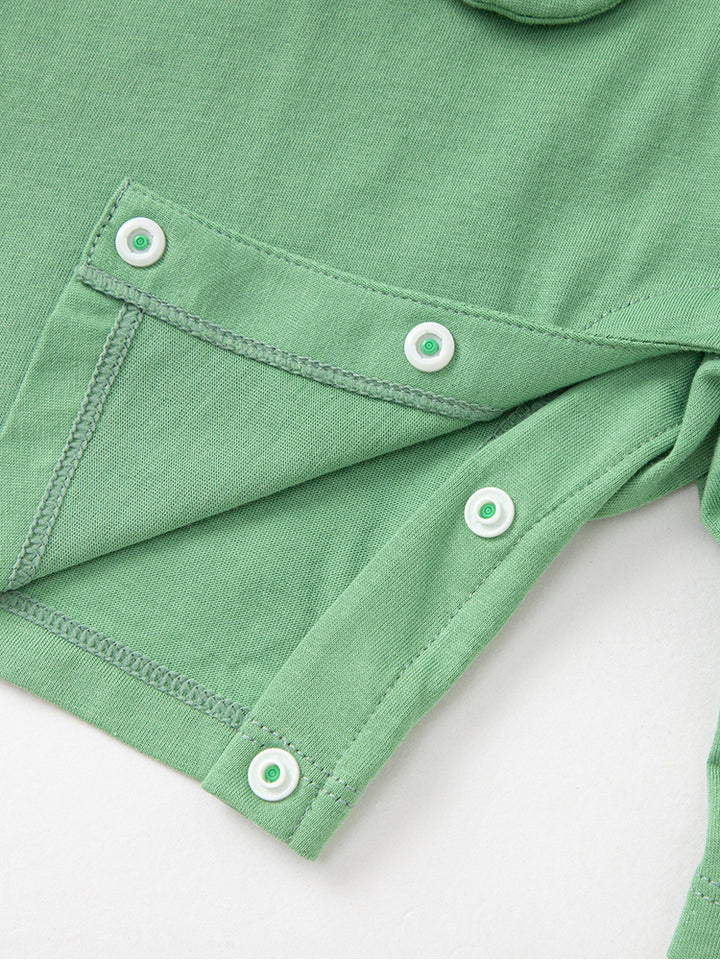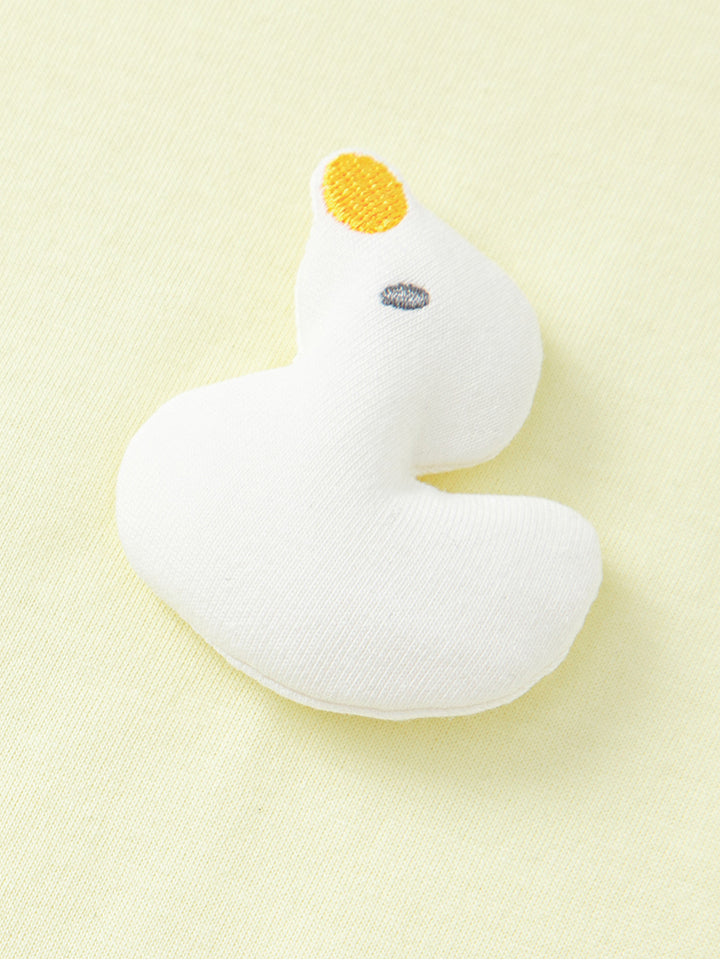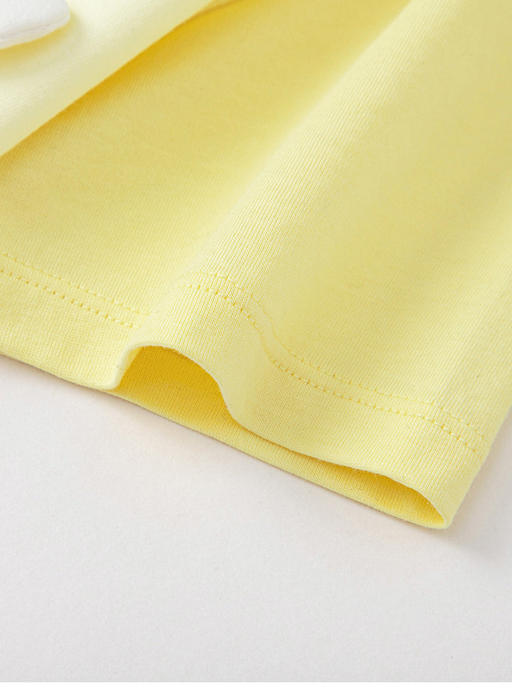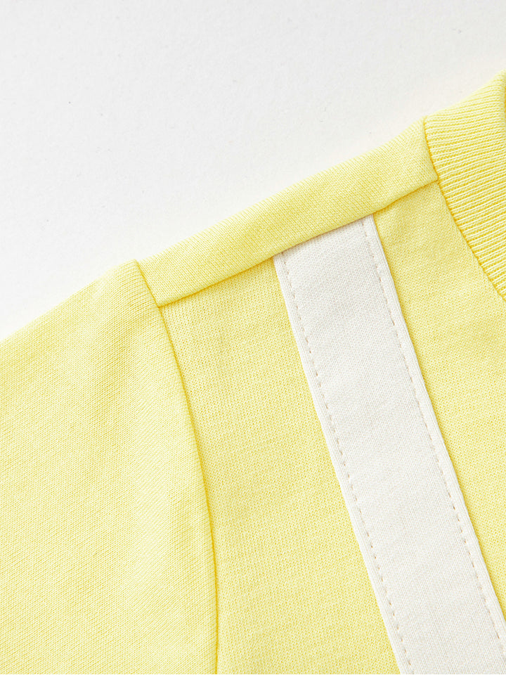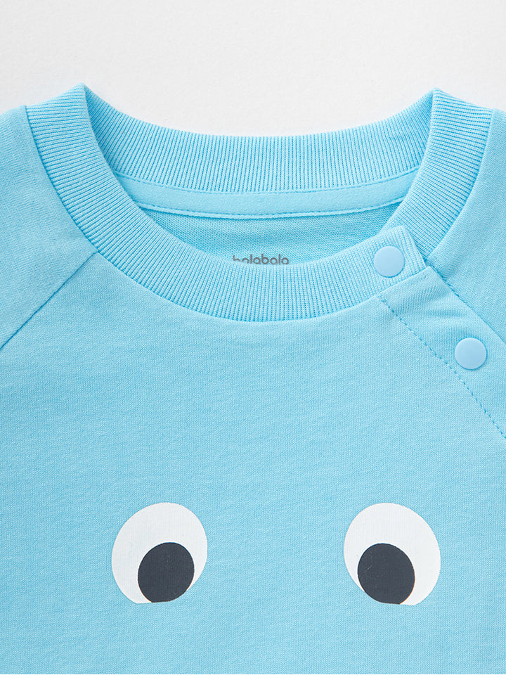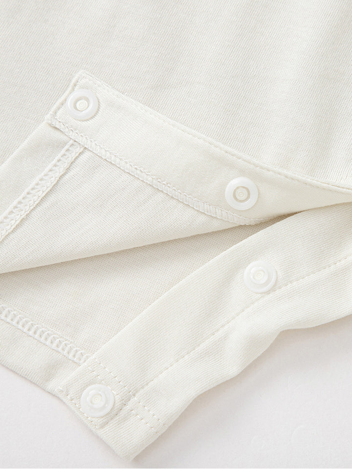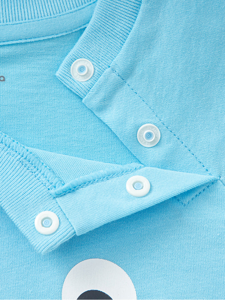 short sleeves bodysuit decorated with striped details on upper side and fun design on the front side, comes with bottom buttons and a rounded shape neckline
