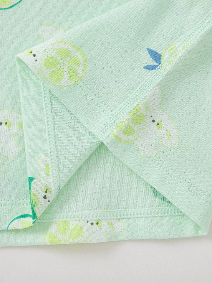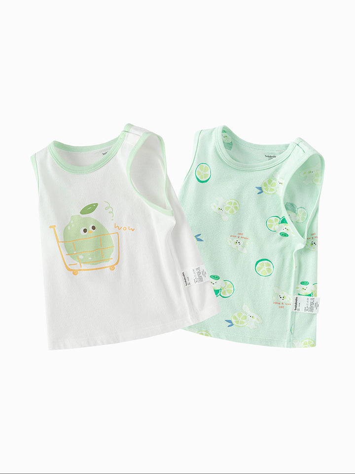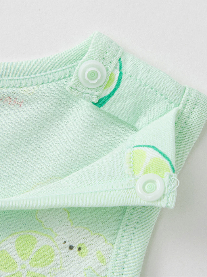 This cute two-piece baby top set features a sleeveless design with playful prints, a round neck, and push buttons for easy closure on the front side. Perfect for a stylish and comfortable look for your little one