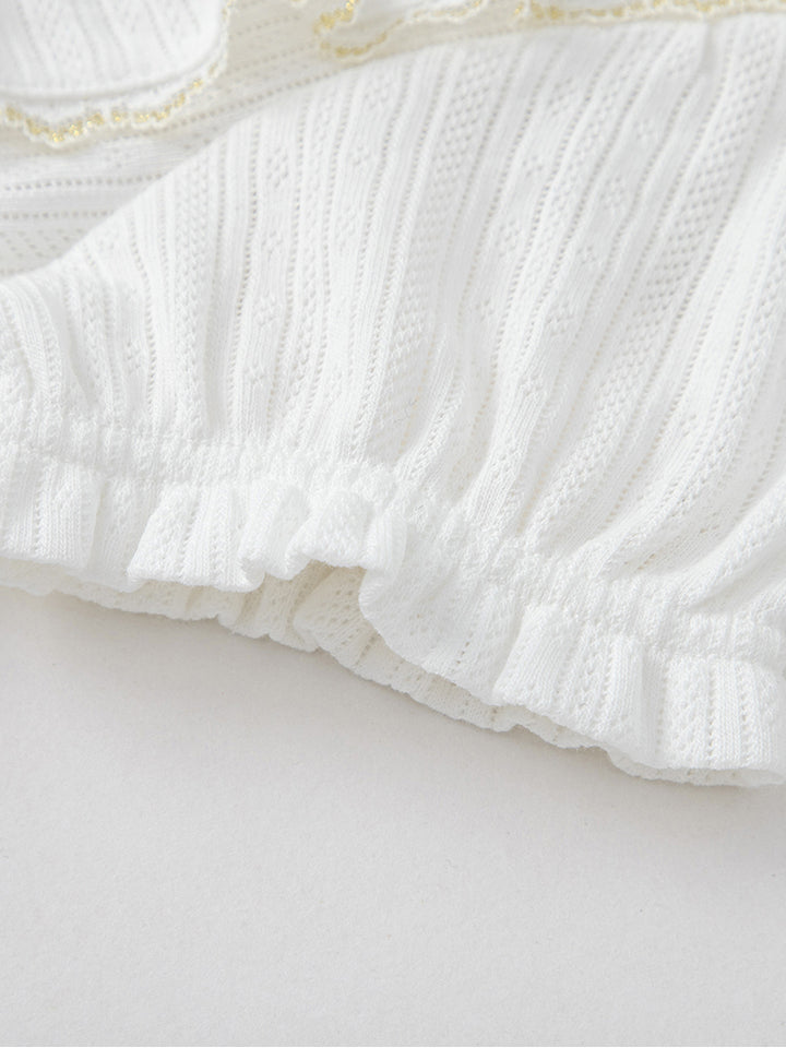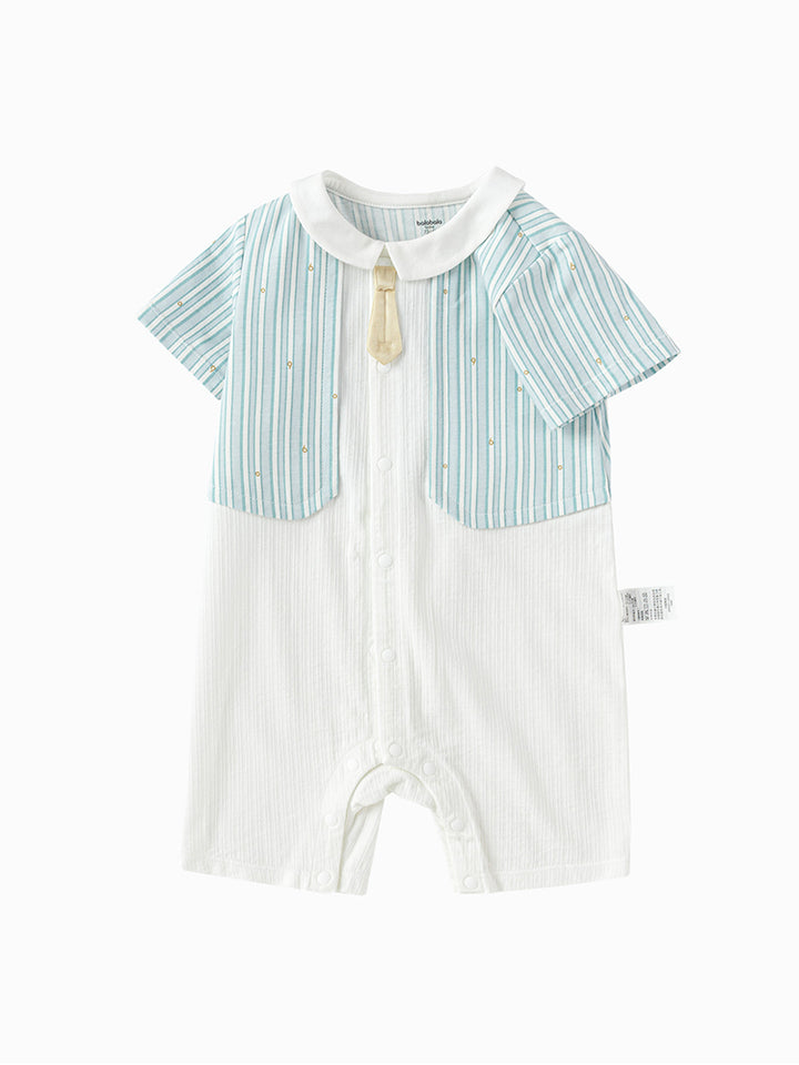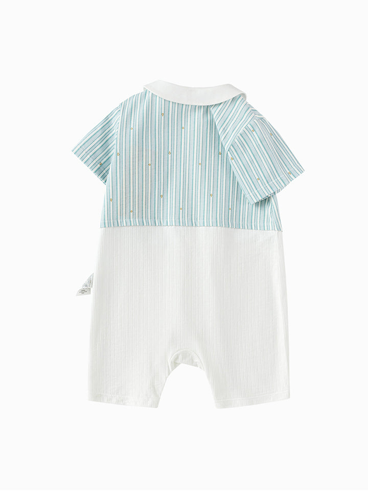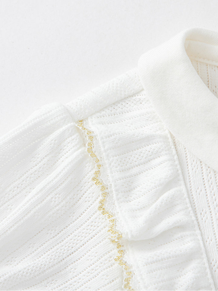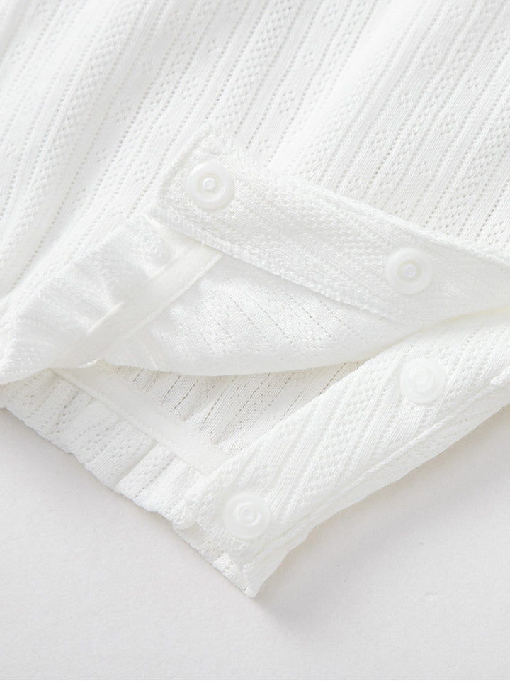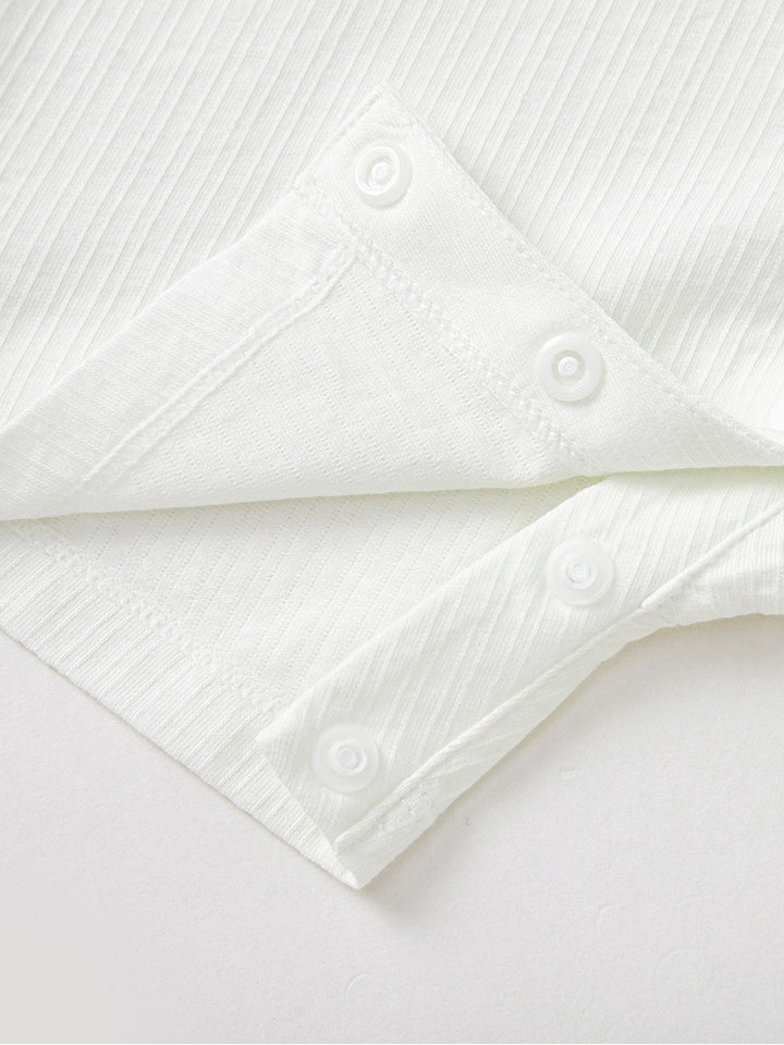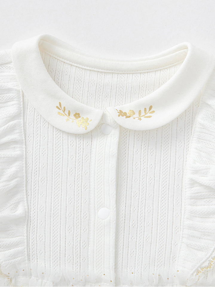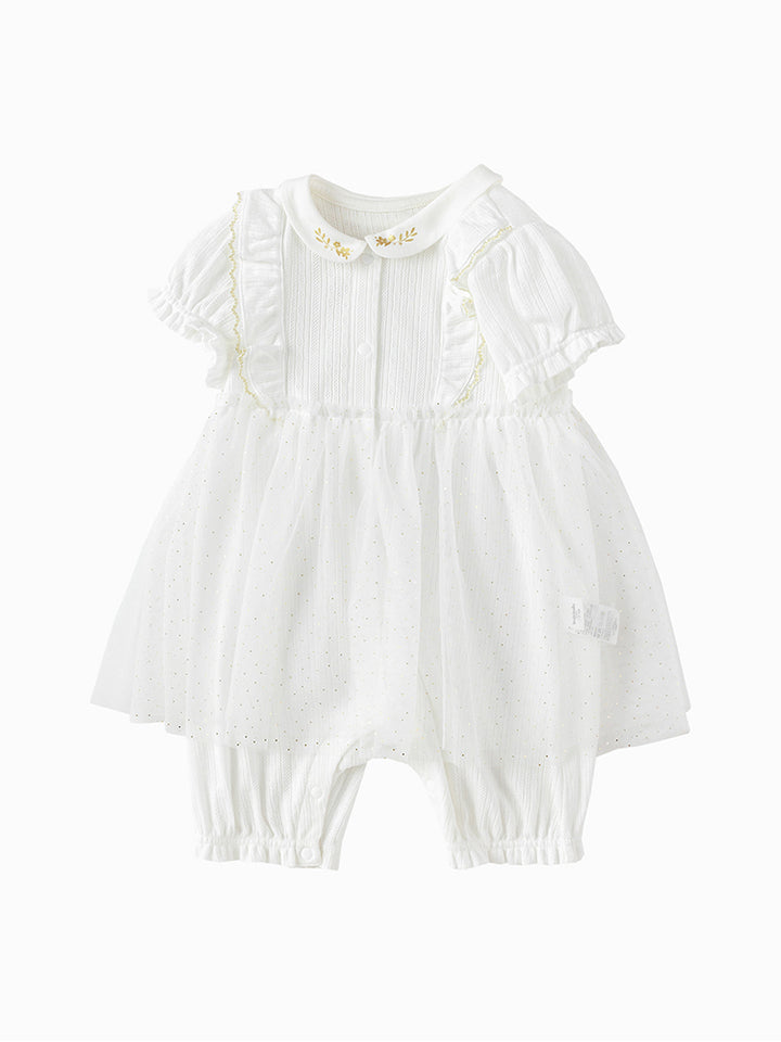 short sleeves bodysuit in a solid mono colored pattern, decorated with a tulle layer detail, comes with front buttons and a classic regular collar