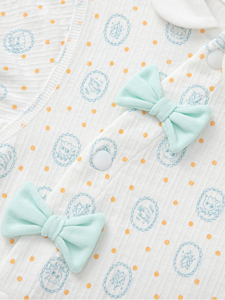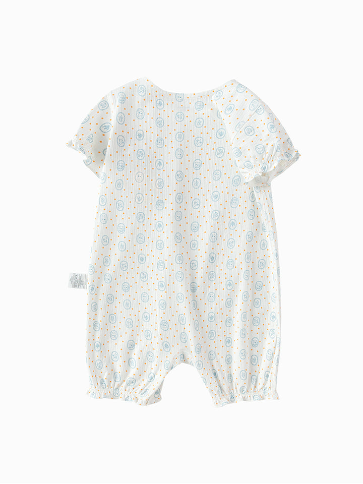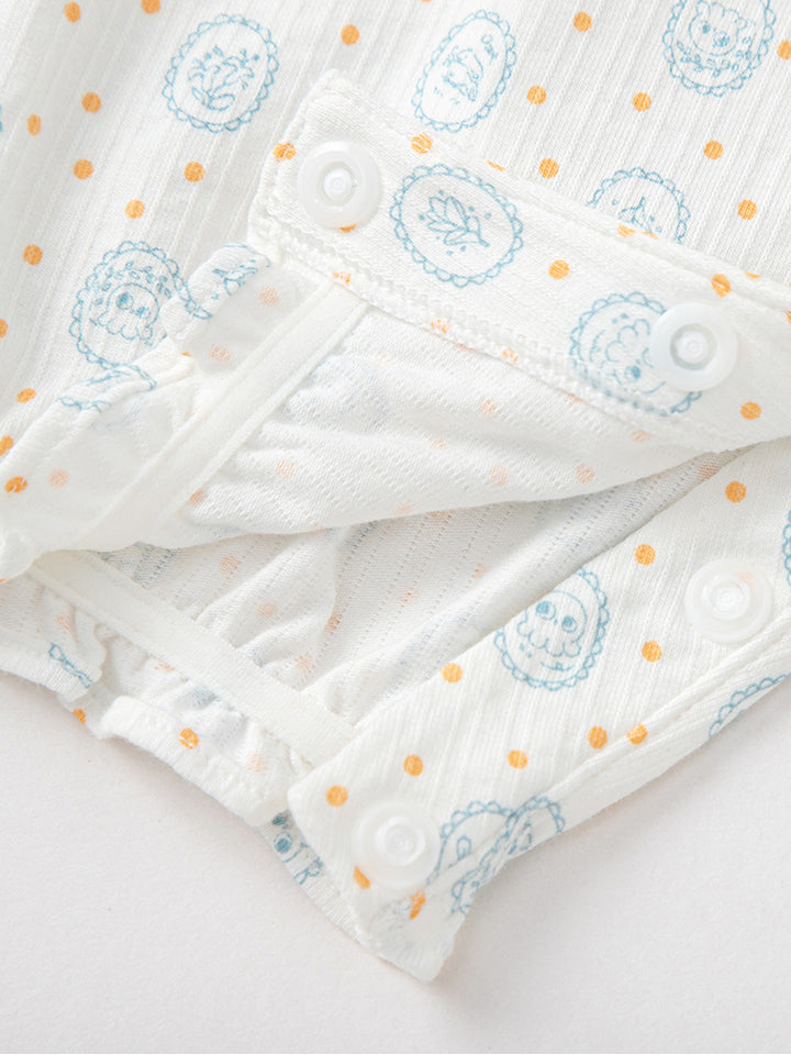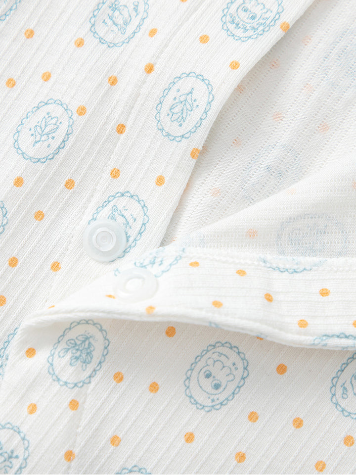short sleeves bodysuit decorated with a colored printed pattern, comes with front buttons and a rounded shape neckline