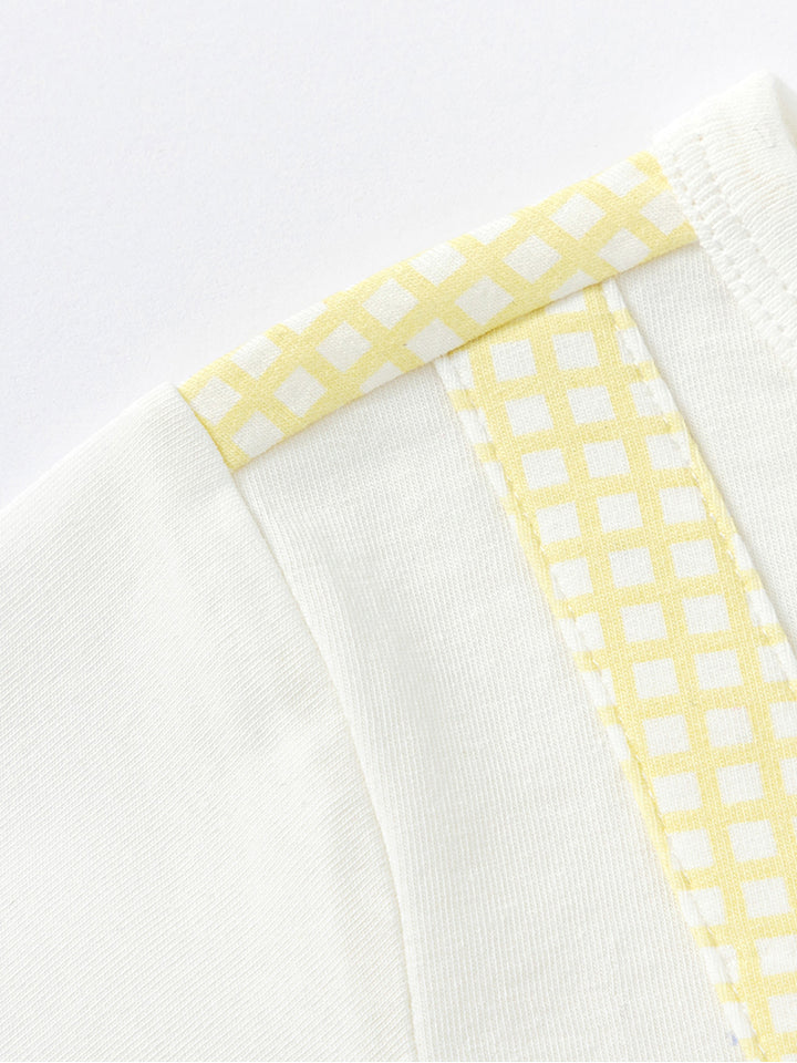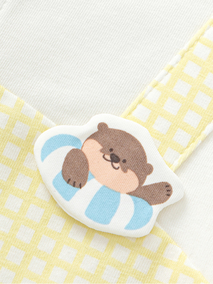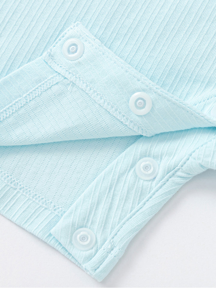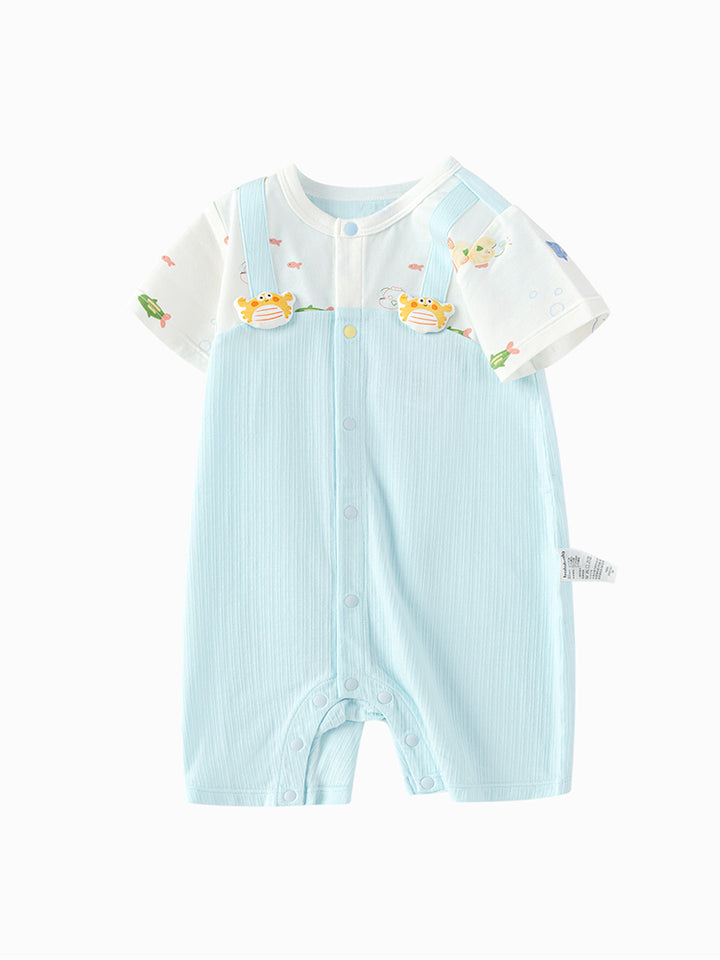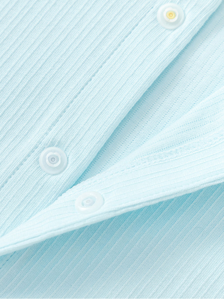 short sleeves bodysuit decorated with a colored printed pattern, comes with front buttons and a rounded shape neckline