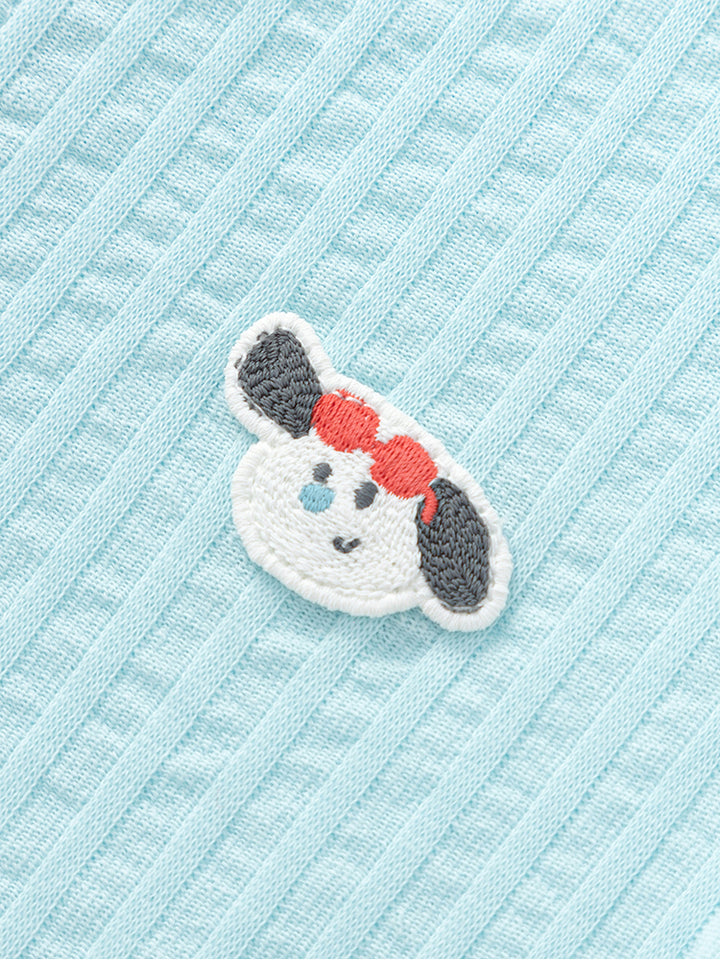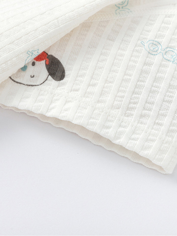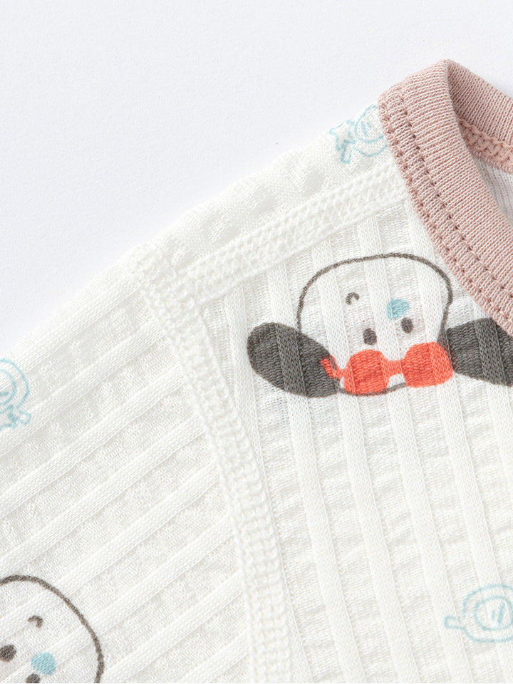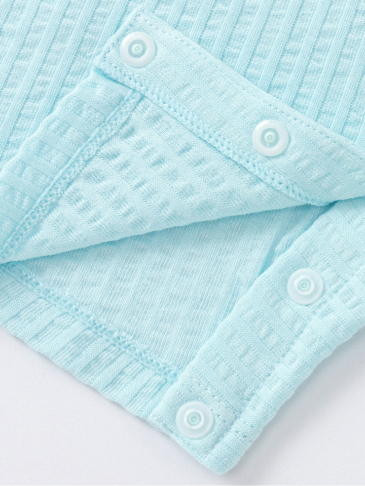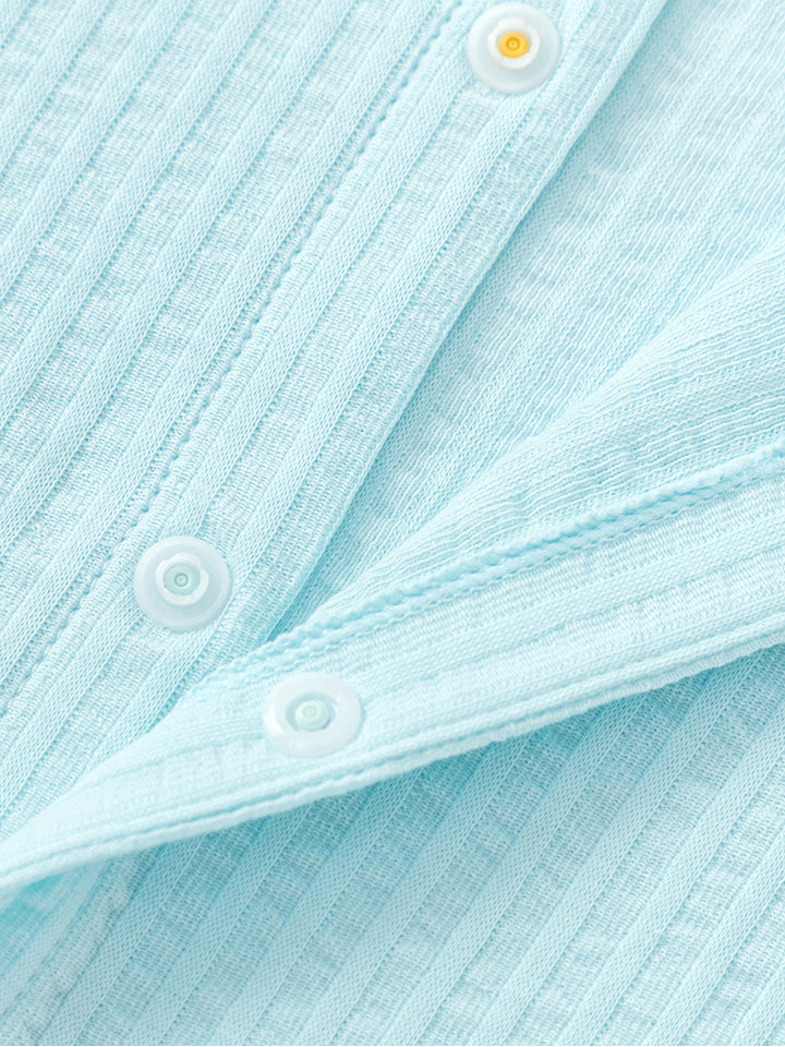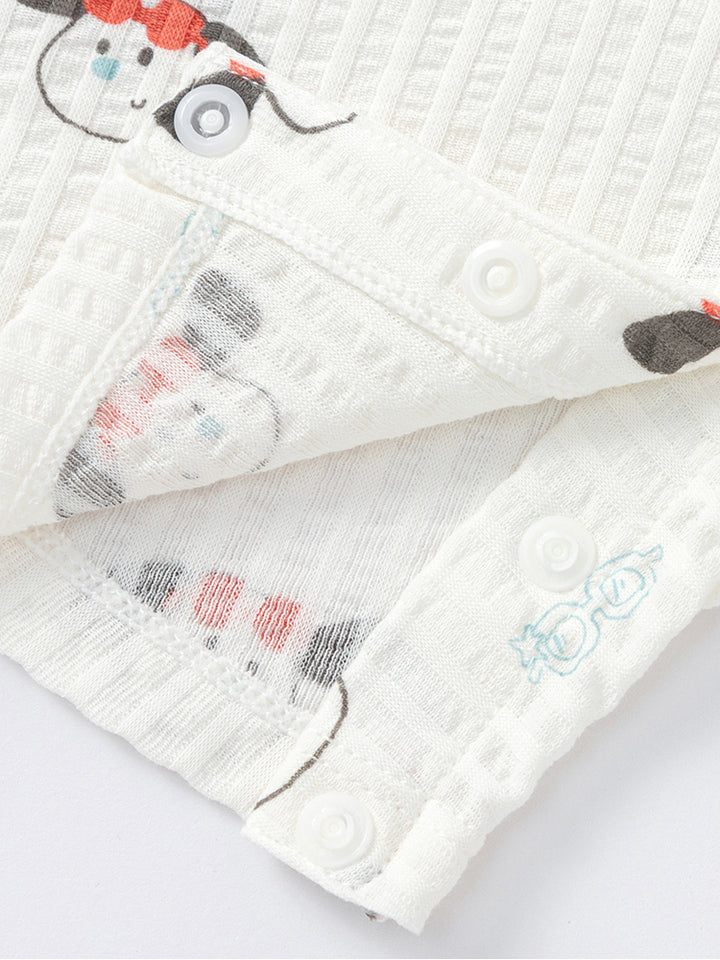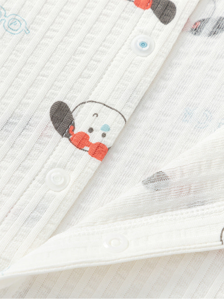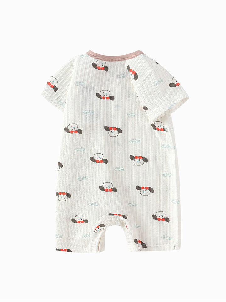 short sleeves bodysuit decorated with a colored printed pattern, comes with front buttons and a rounded shape neckline
