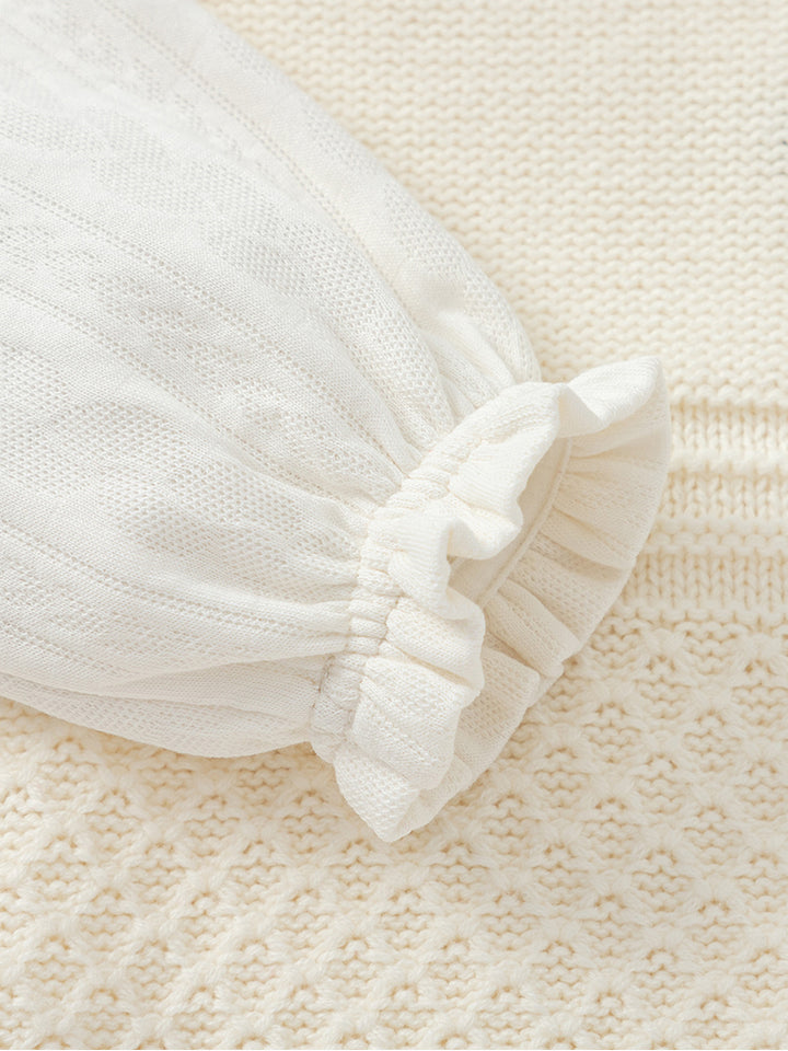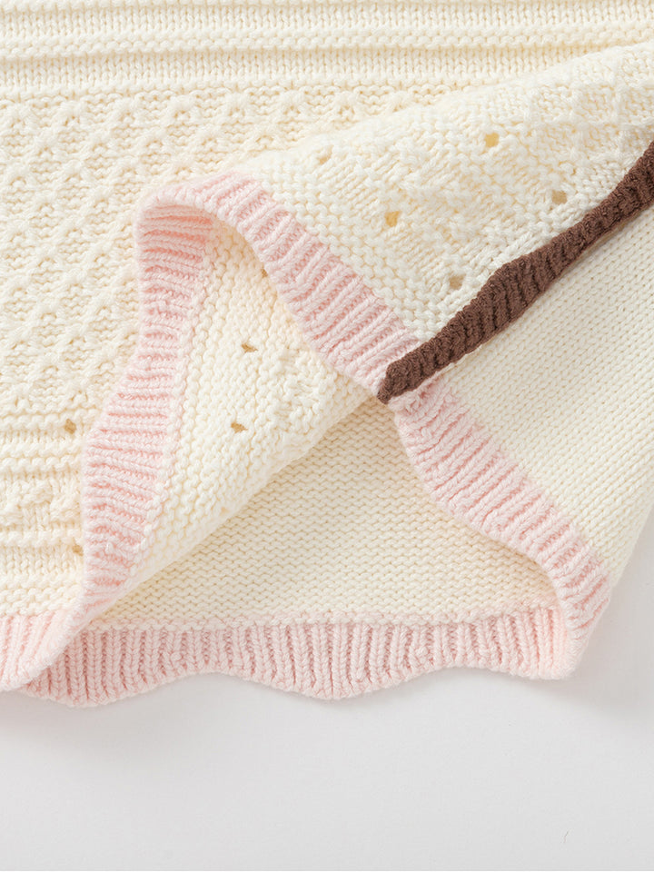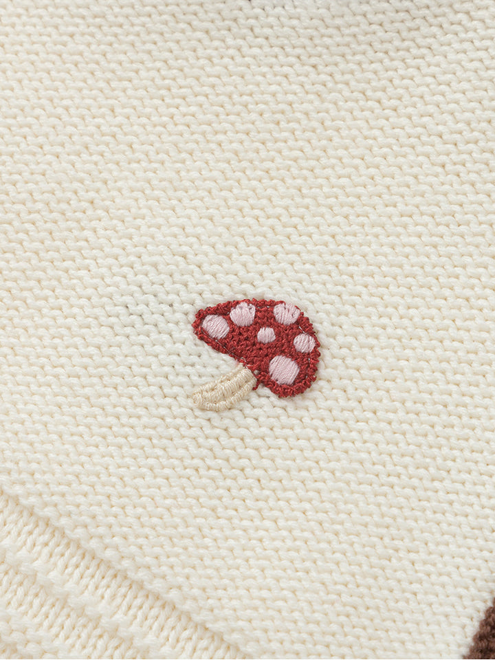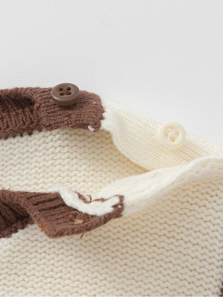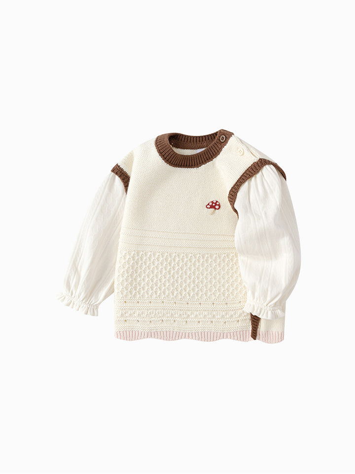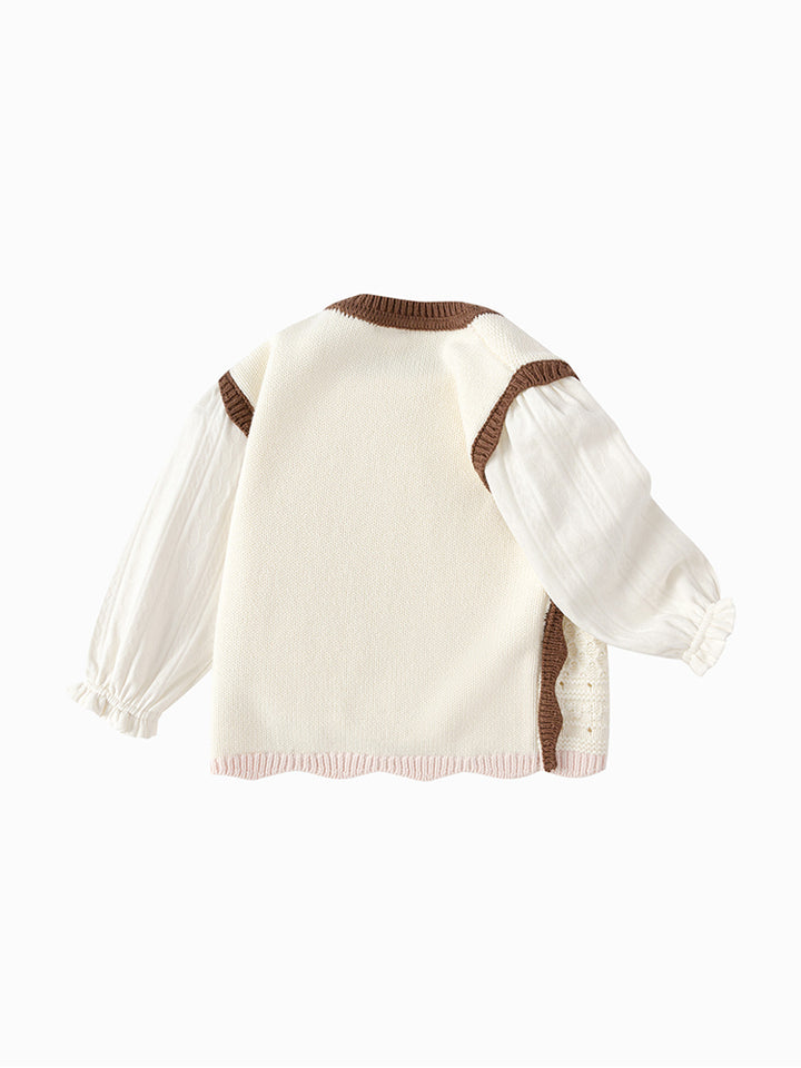 long sleeves girl knitted fabric sweater decorated with small embroidery, comes with buttons and rounded neckline