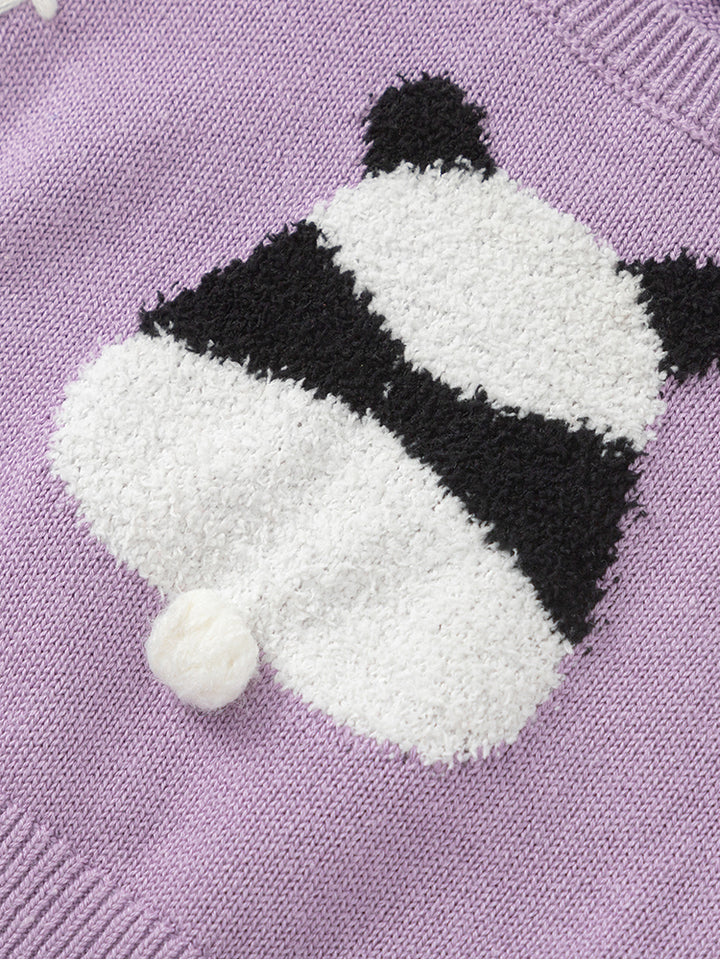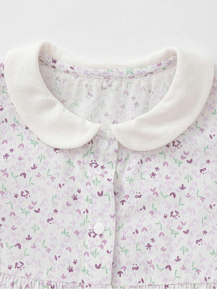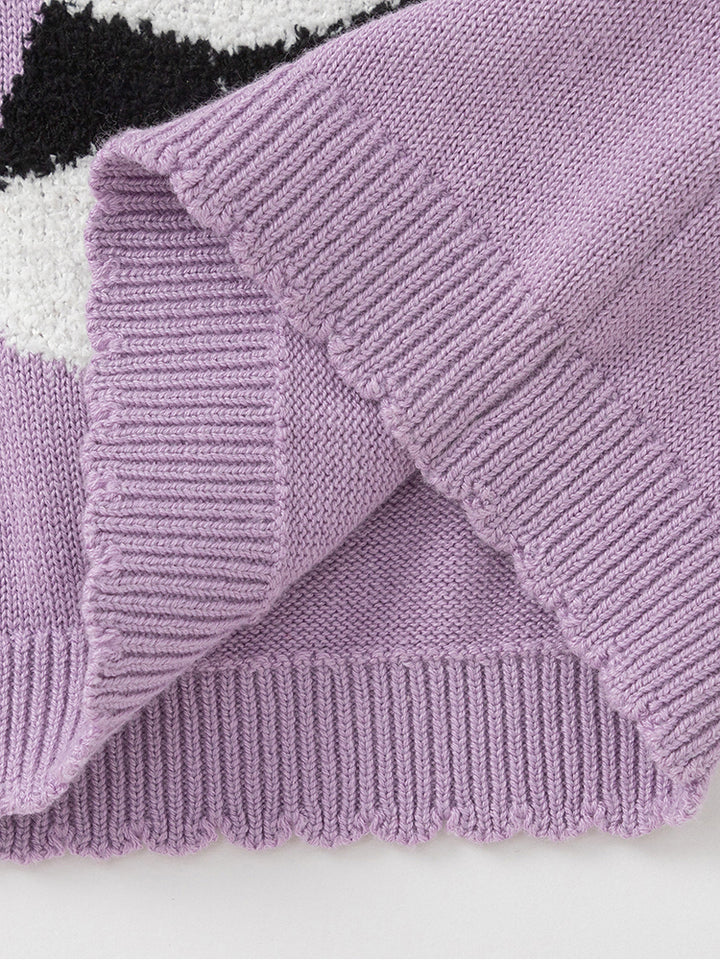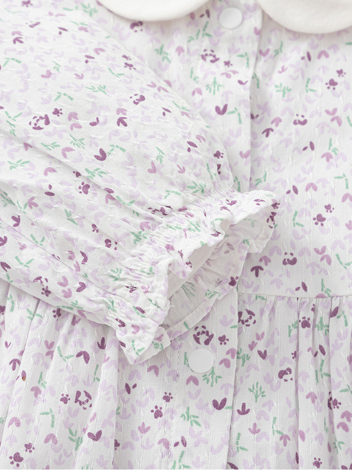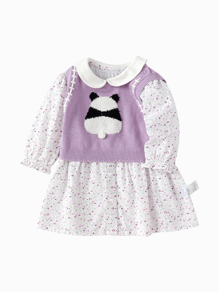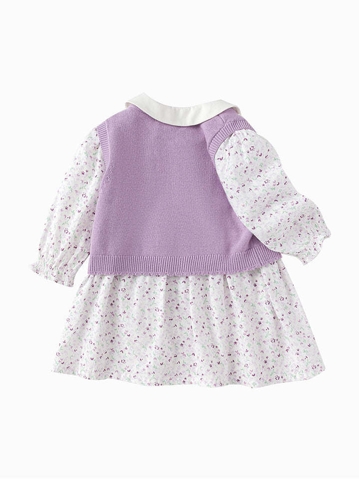 girl long sleeves dress decorated with a printed pattern comes with buttons and a top knitted layer decorated with colored details