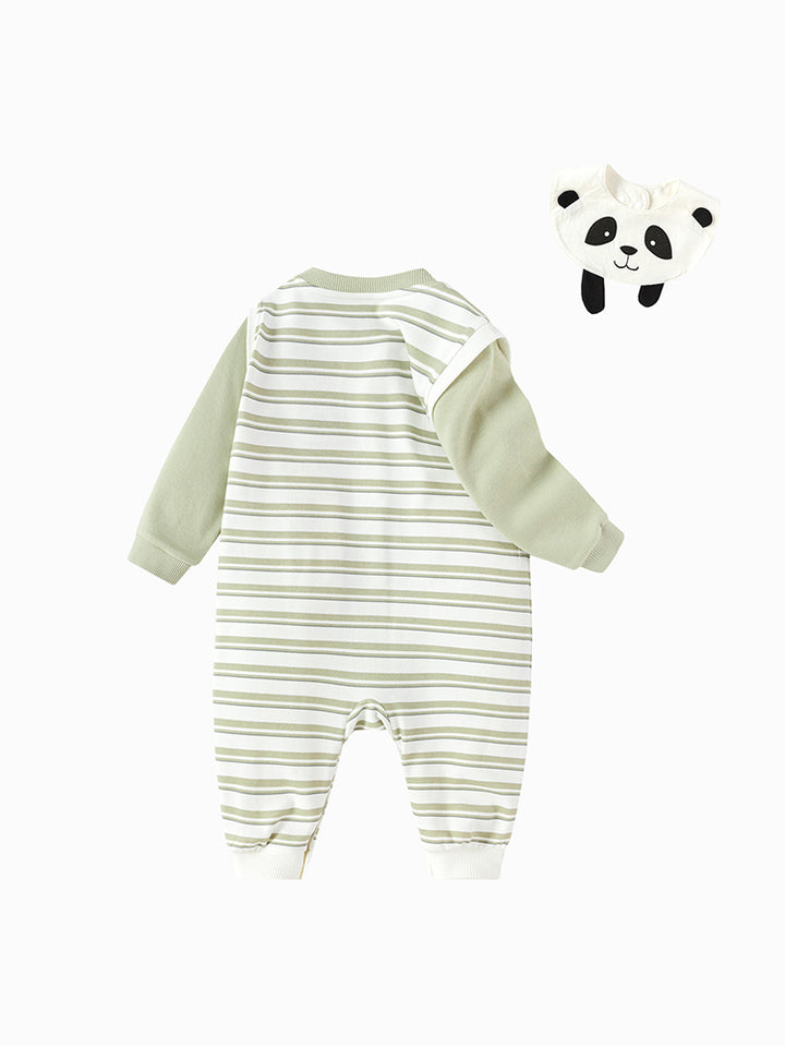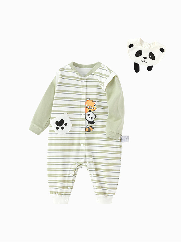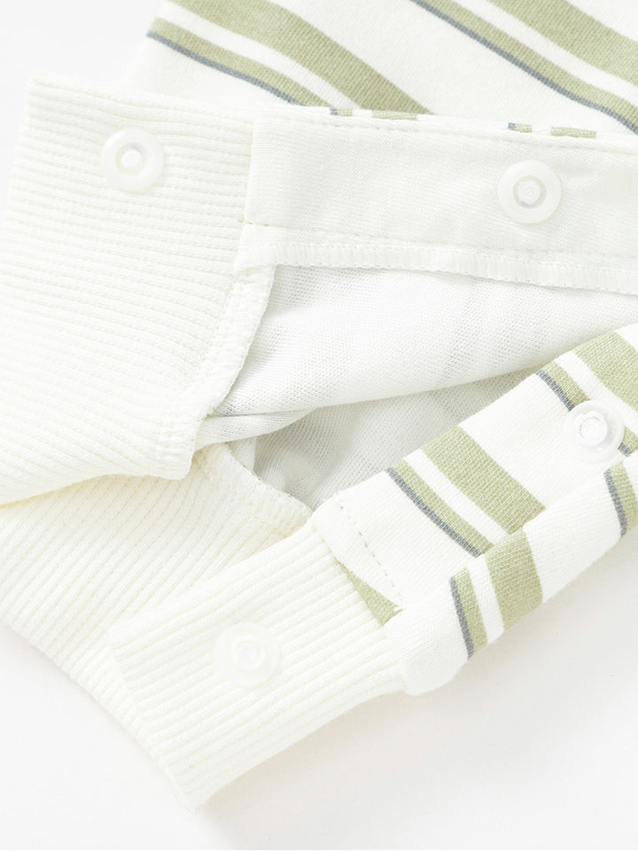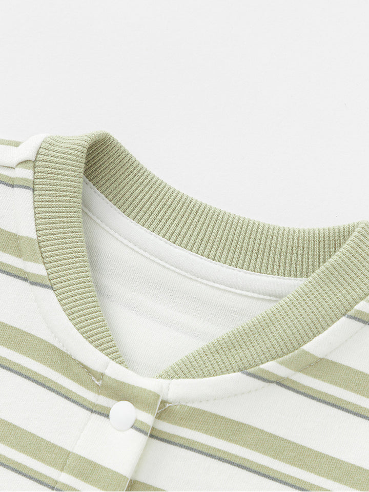 long sleeves baby overhaul, decorated with a striped pattern, comes with buttons for closure