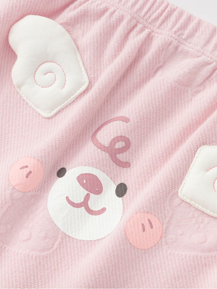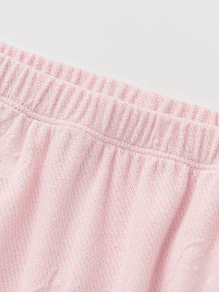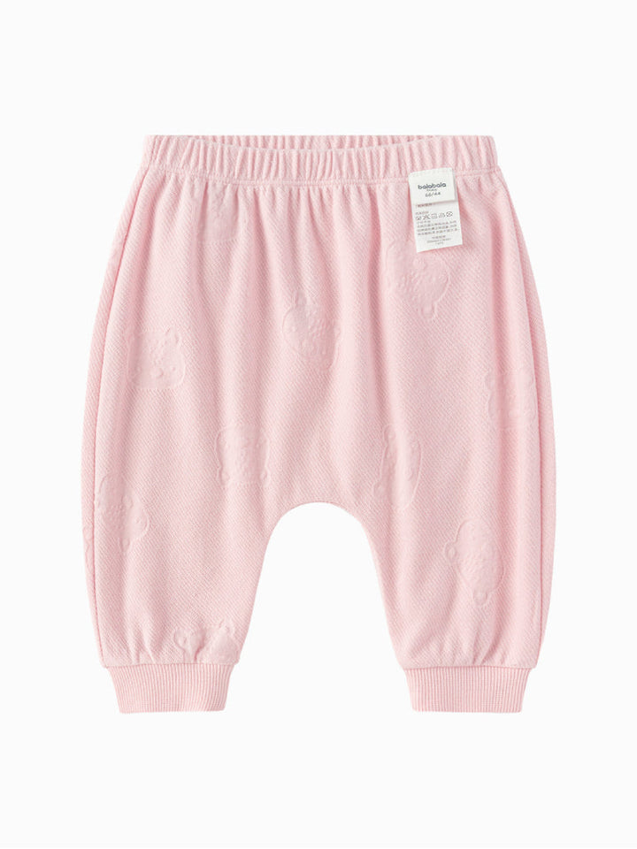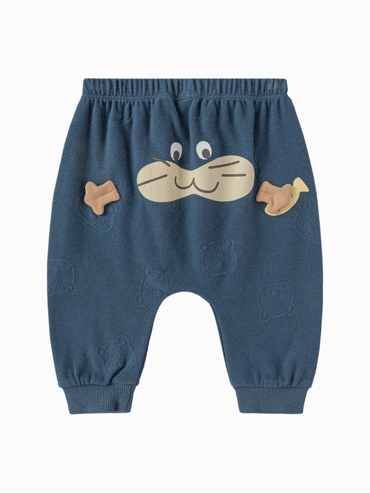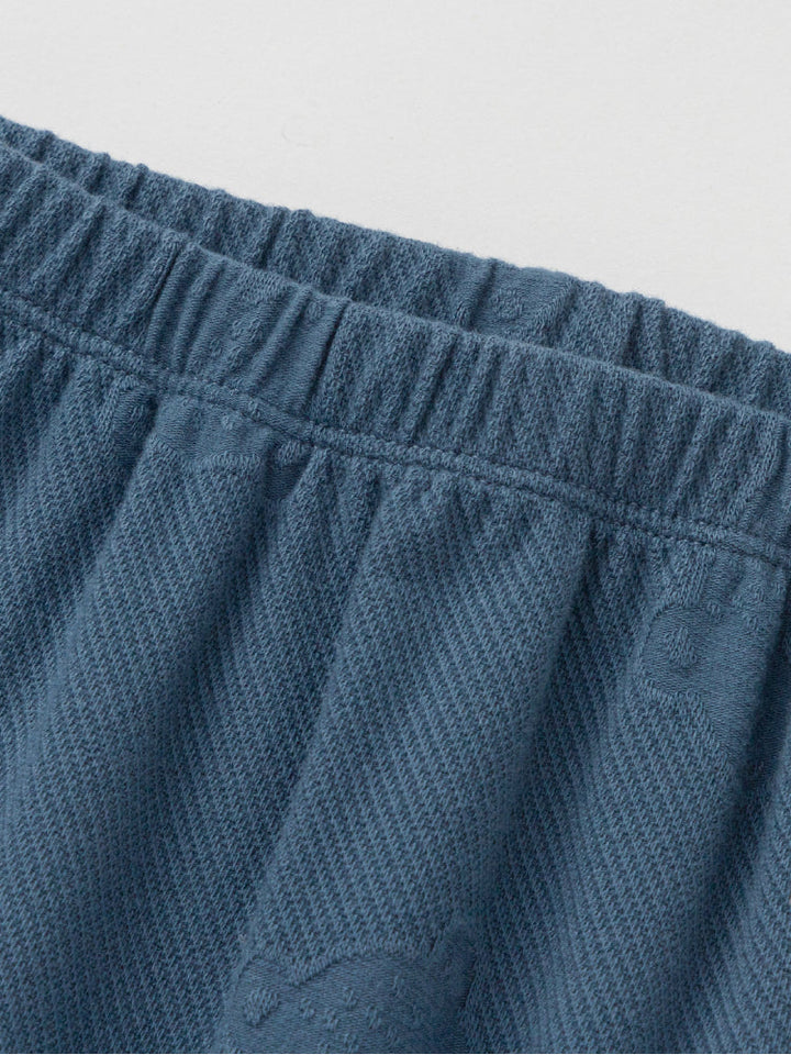 Soft textured pants featuring an all over subtle pattern with an elasticated waistband and ribbed cuffs The back is adorned with a playful character detail adding a fun twist to a comfortable everyday essential.