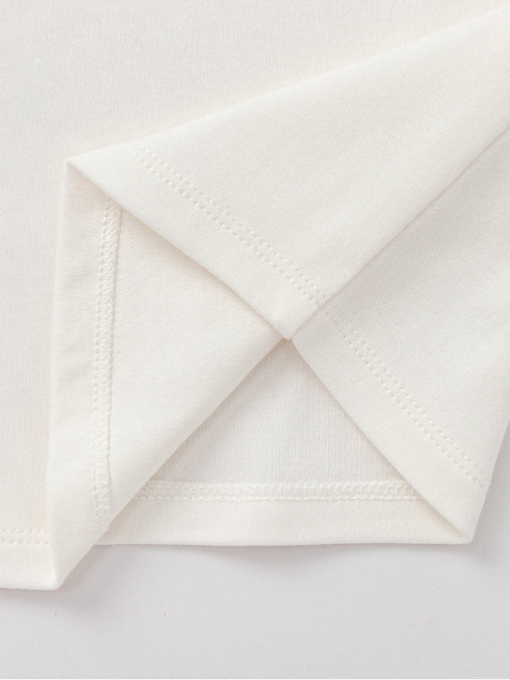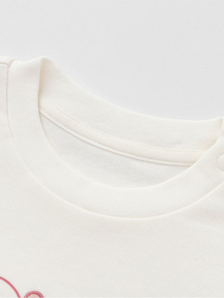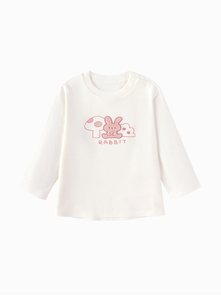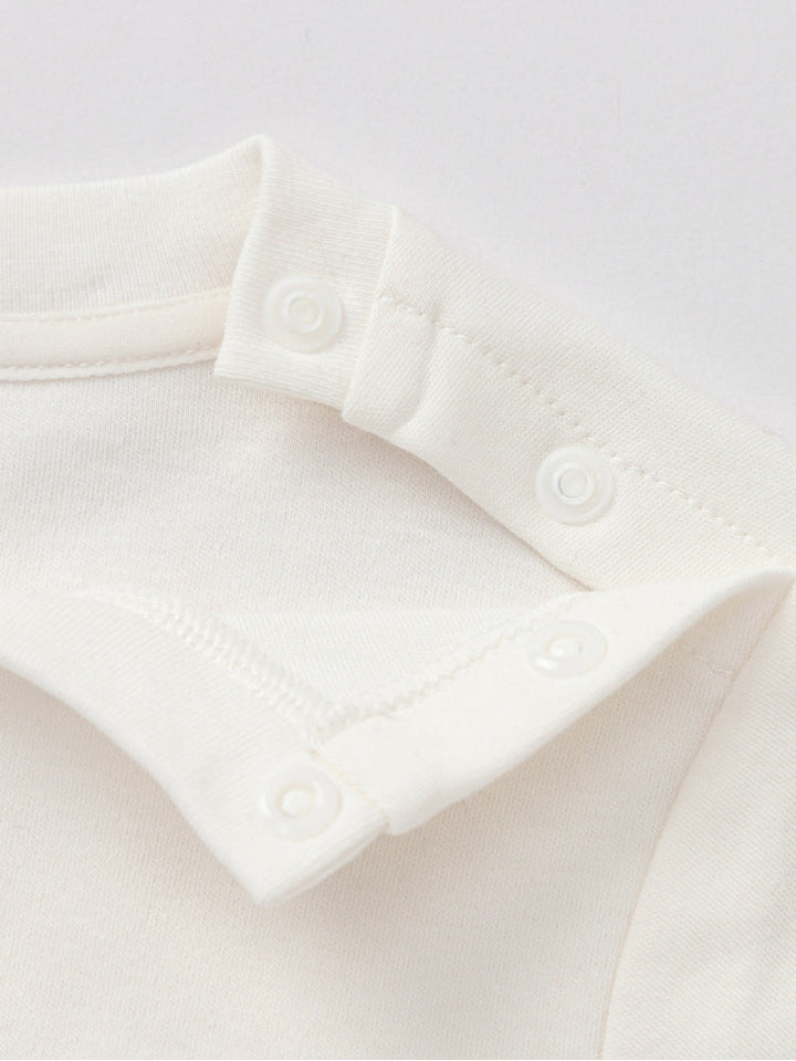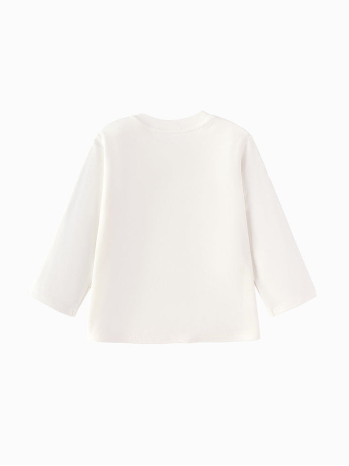 Soft and comfortable long sleeve top for kids, featuring a round neckline and a playful front design. Made from breathable fabric, ideal for everyday wear and layering. Easy snap-button closure at the shoulder for quick dressing.