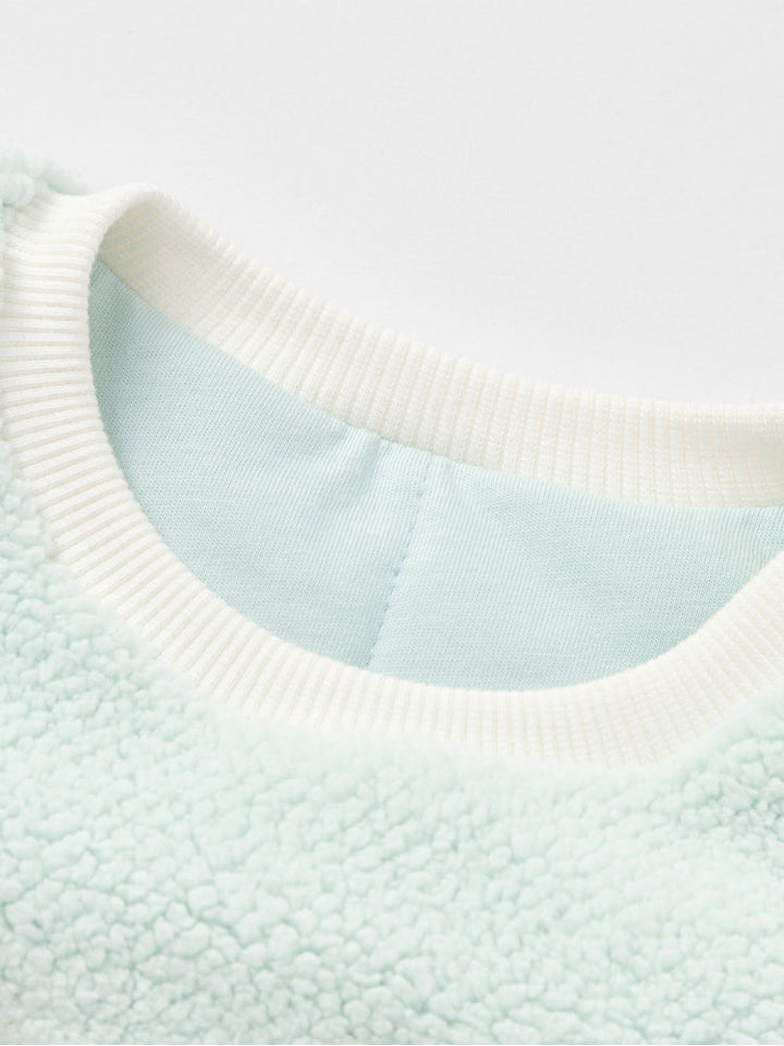 Cozy fleece sweatshirt designed to keep kids warm and comfortable. Features long sleeves, ribbed cuffs and hem, with a playful embroidered design at the front. Soft-touch fabric makes it perfect for everyday winter wear.