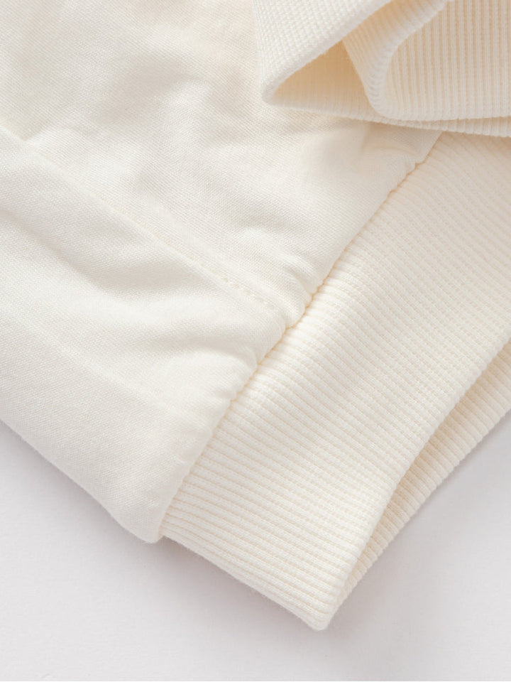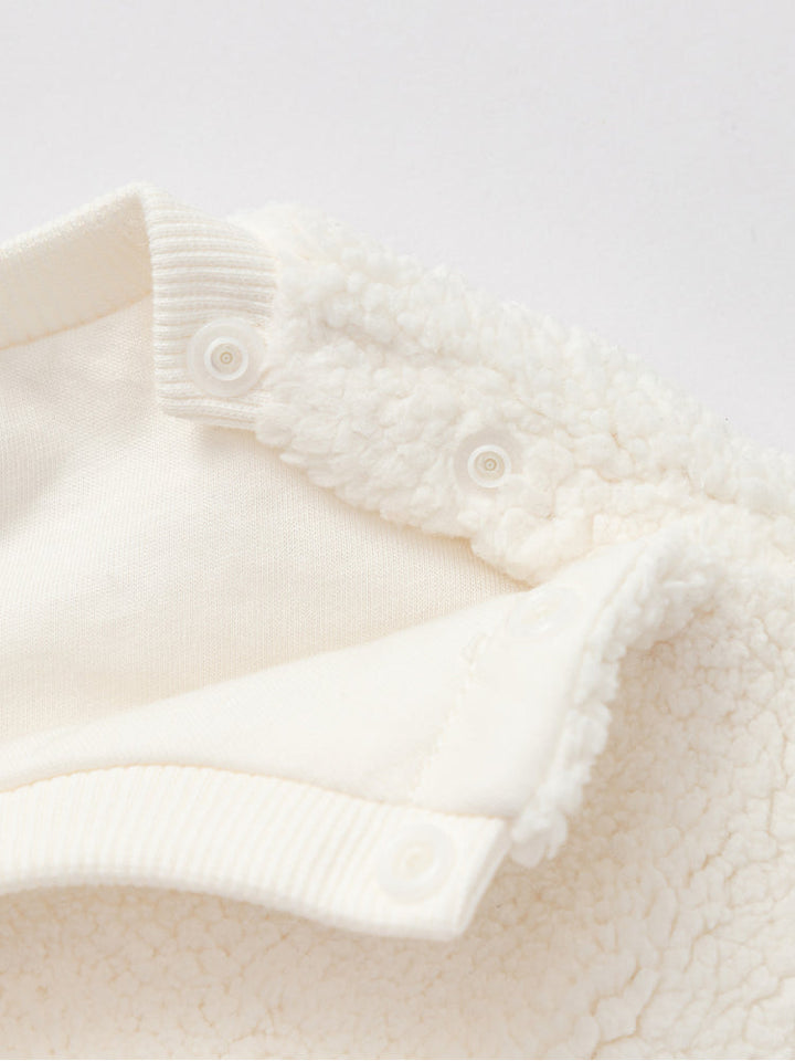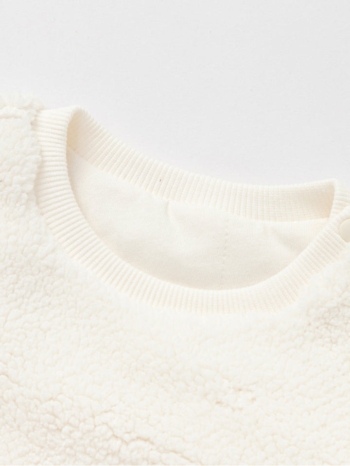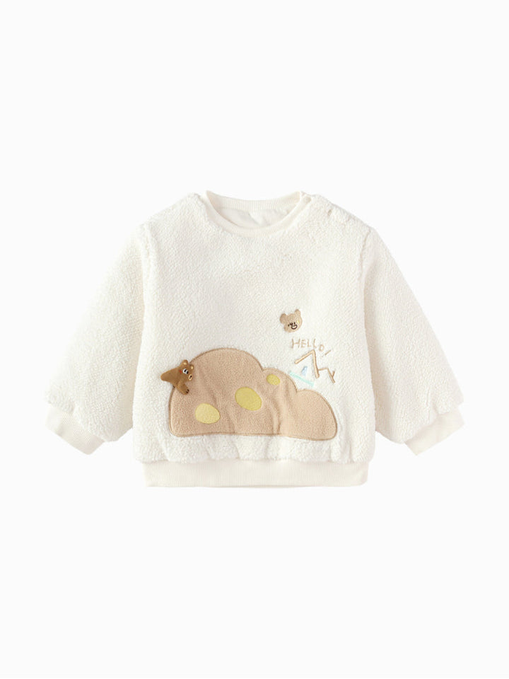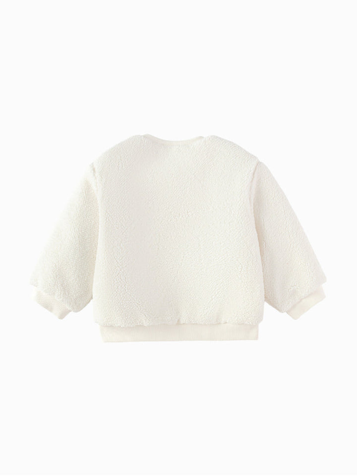 Cozy fleece sweatshirt designed to keep kids warm and comfortable. Features long sleeves, ribbed cuffs and hem, with a playful embroidered design at the front. Soft-touch fabric makes it perfect for everyday winter wear.
