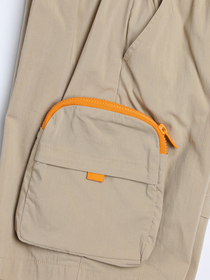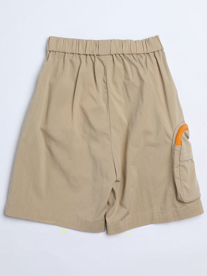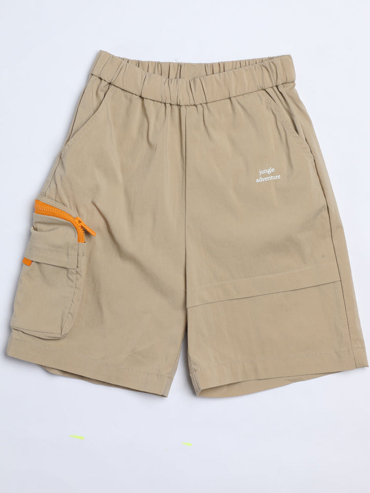 Utility-inspired kids cargo shorts with elastic waistband, side pockets, and an extra zipper pocket for functionality.