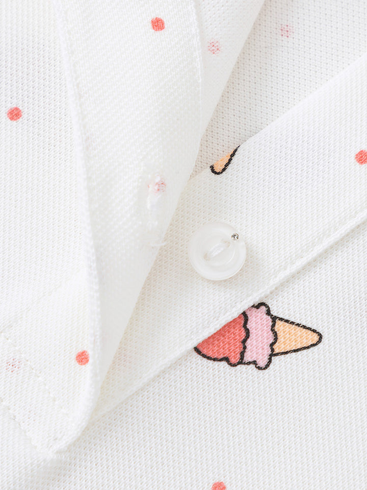 short sleeves dress, decorated with a printed pattern, comes with buttons on the front side and with a regular collar