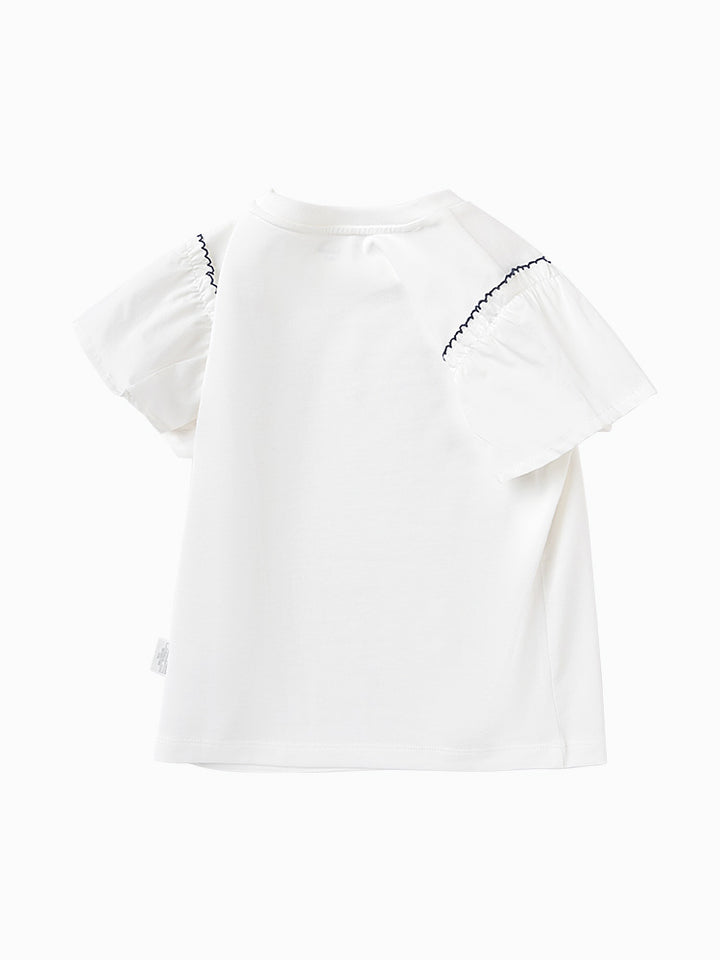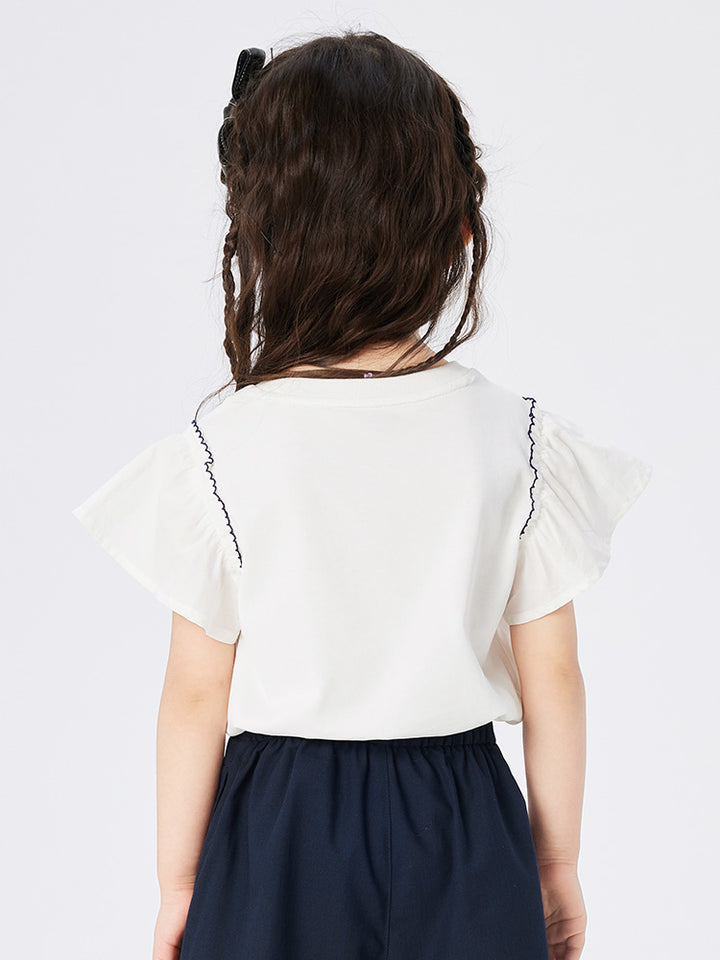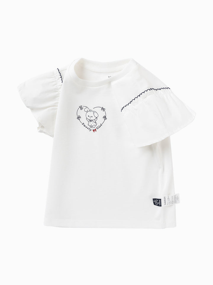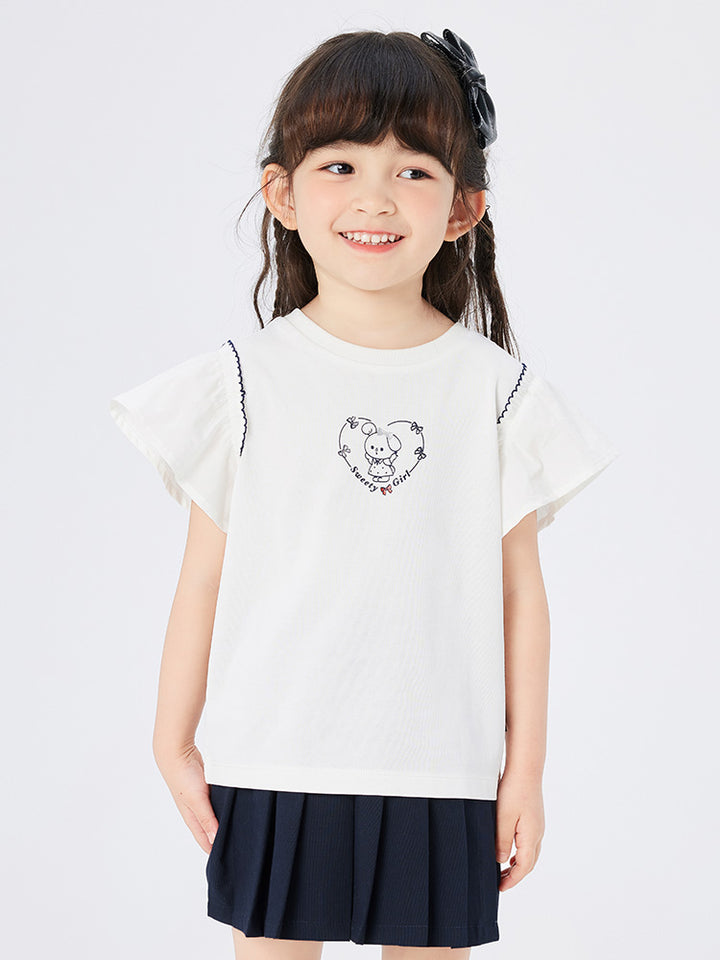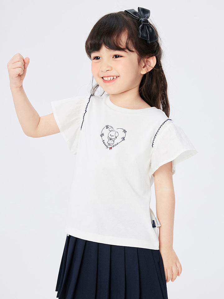 short sleeves t-shirt, decorated with a print on the front side, comes with a rounded shape neckline