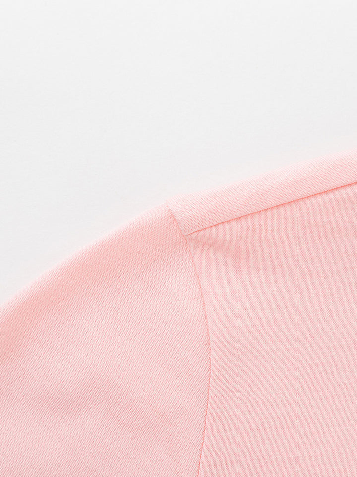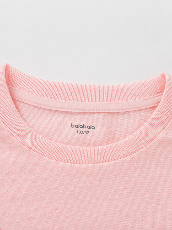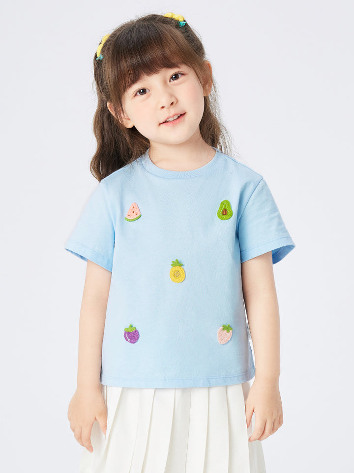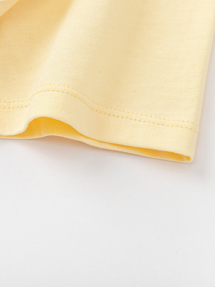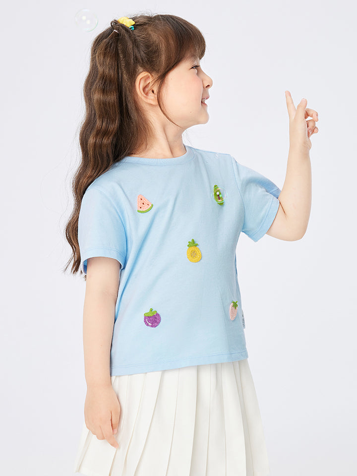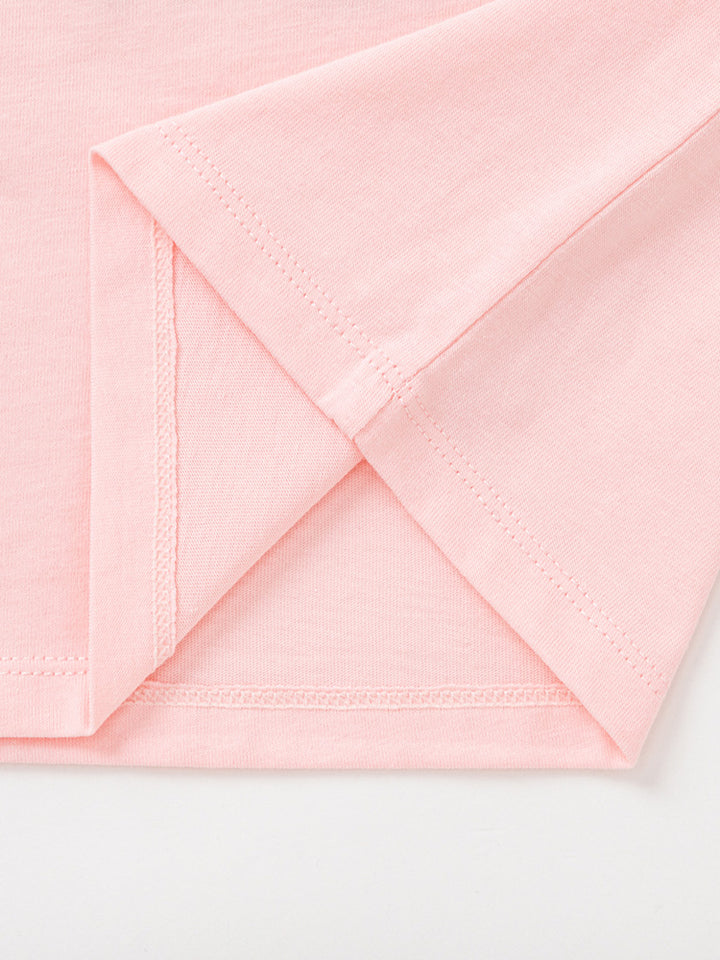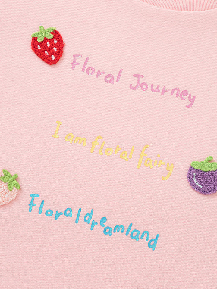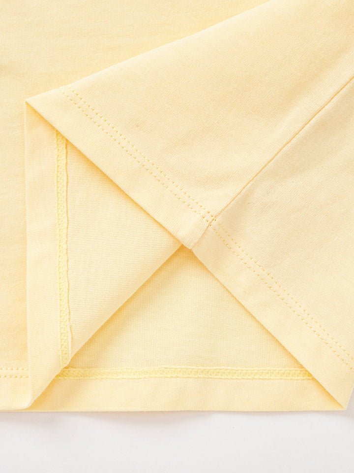 short sleeves t-shirt, decorated with a print and chiffon pocket on the front side, comes with a rounded shape neckline