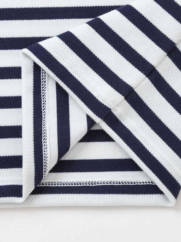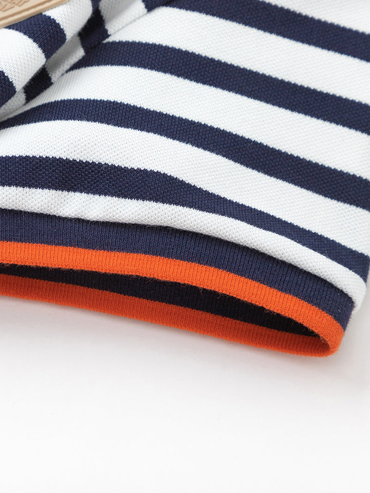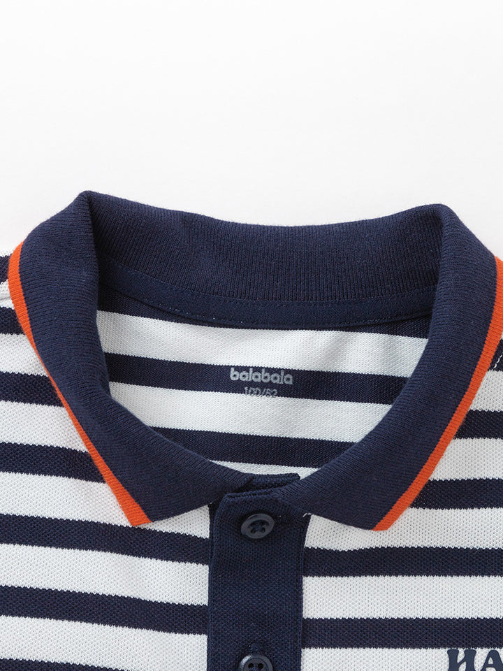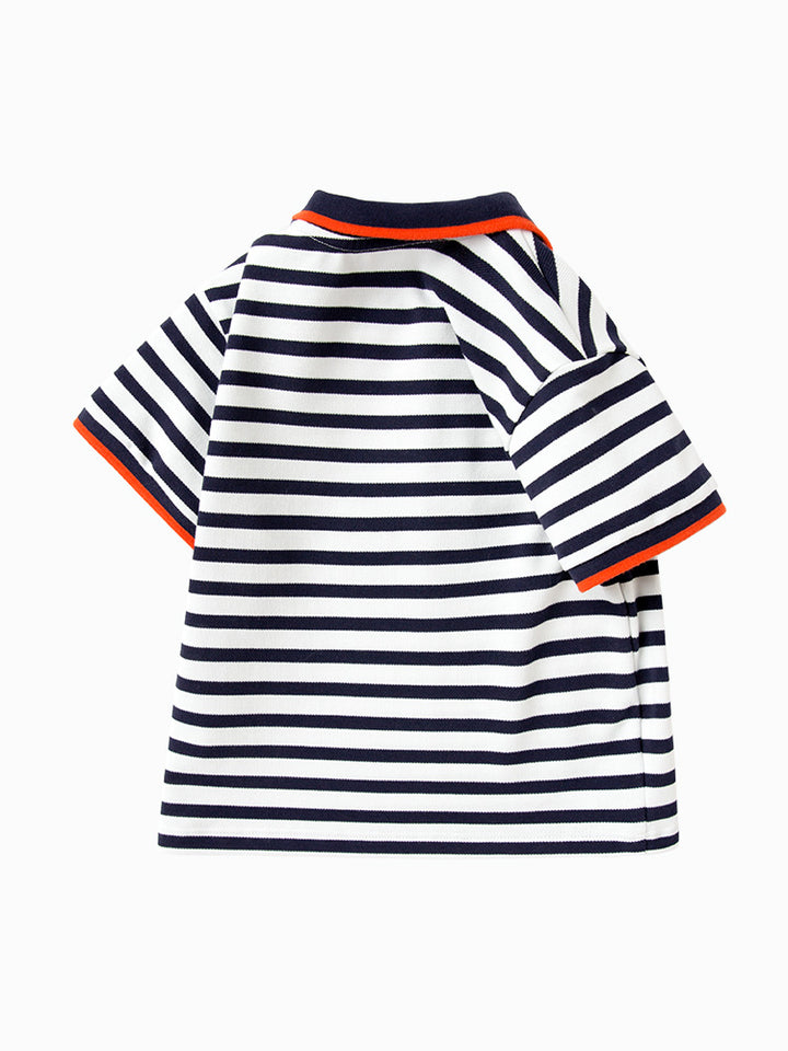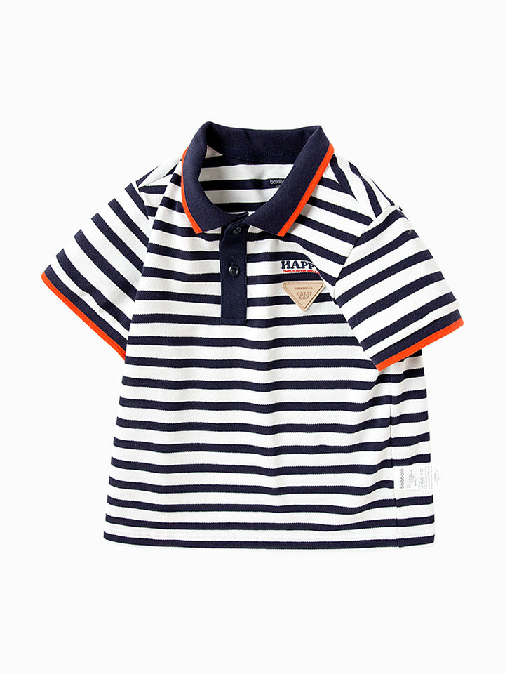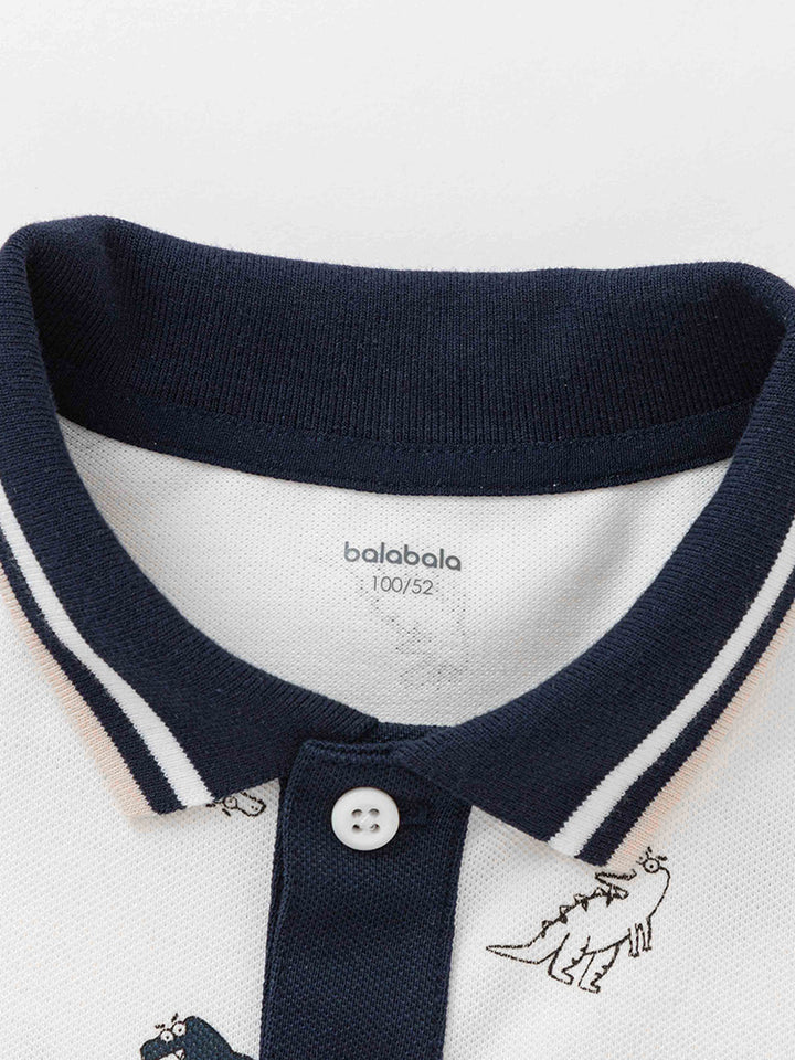 short sleeves polo t-shirt, decorated with a printed pattern, comes with buttons on the front side and with a regular collar