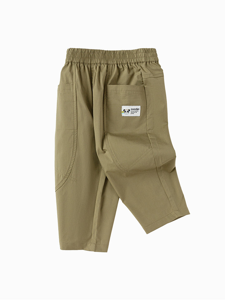 casual boys pants, decorated with a patch on the front side, comes with pockets on the front side and with a comfy elasticated waistband