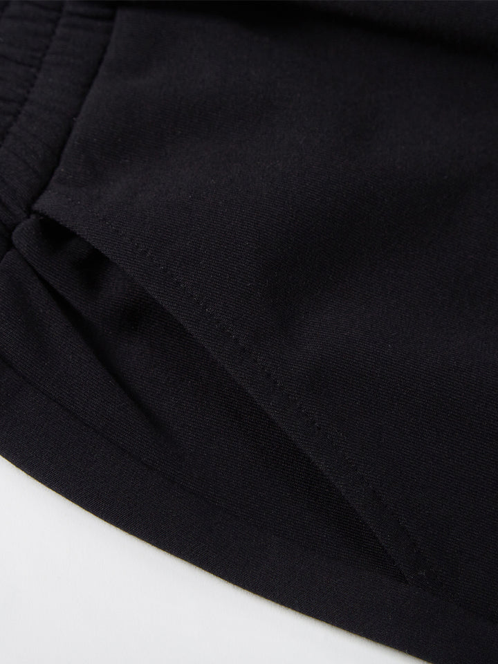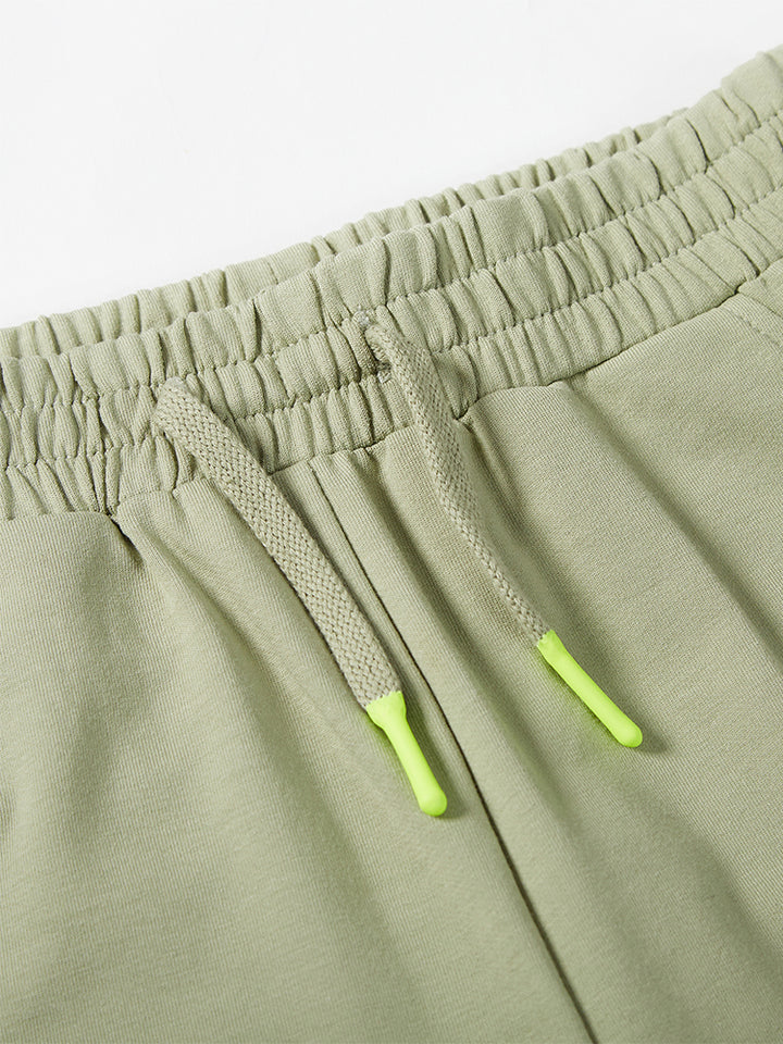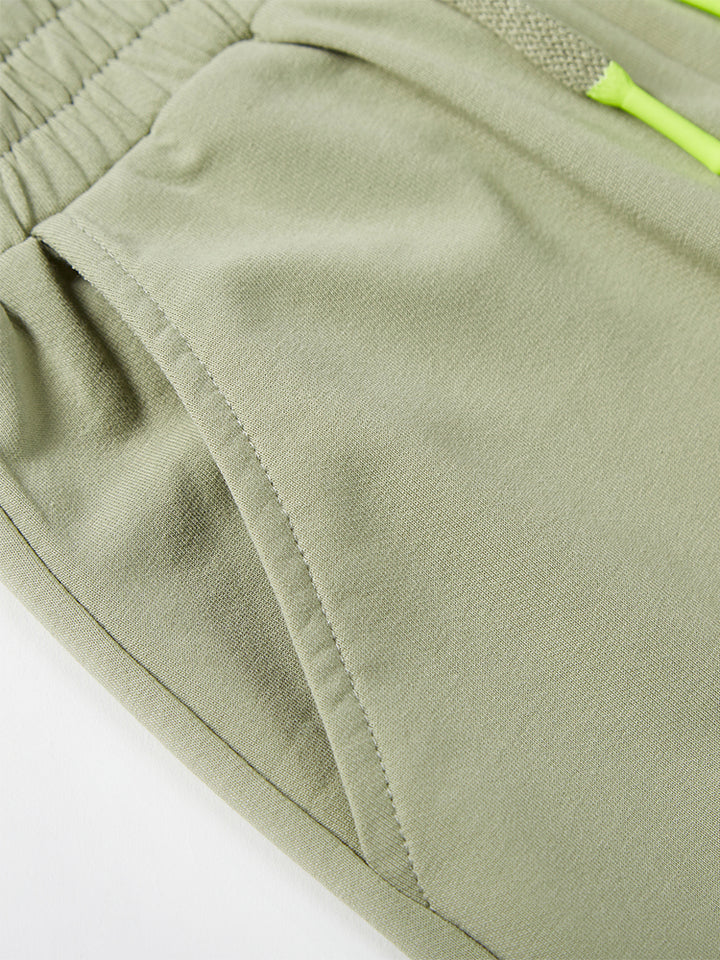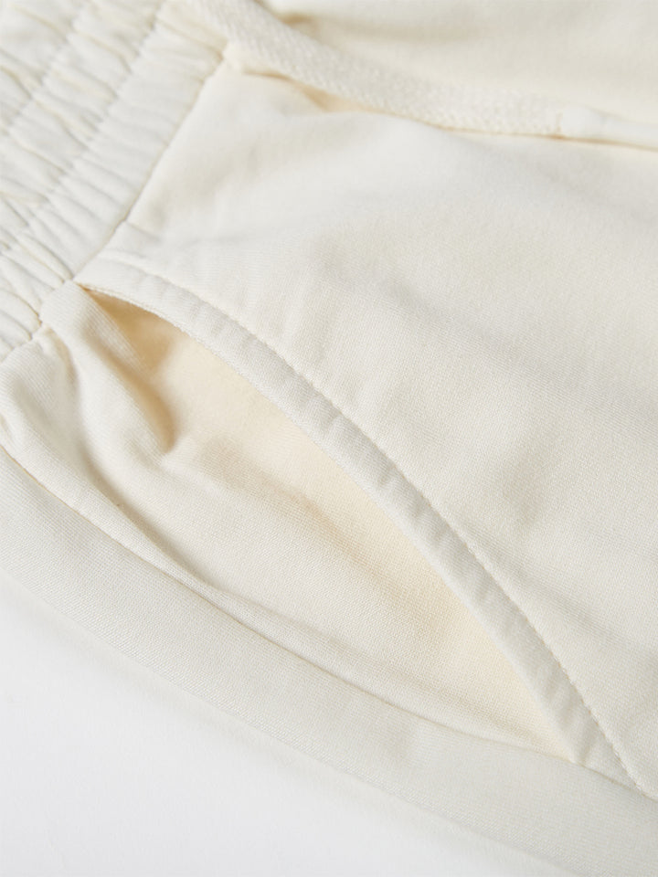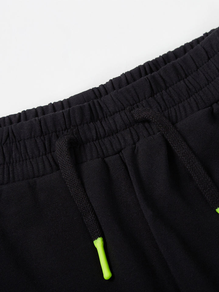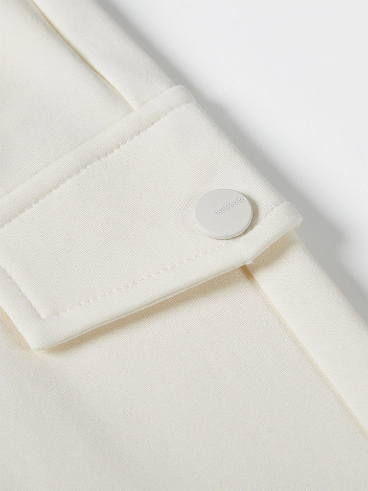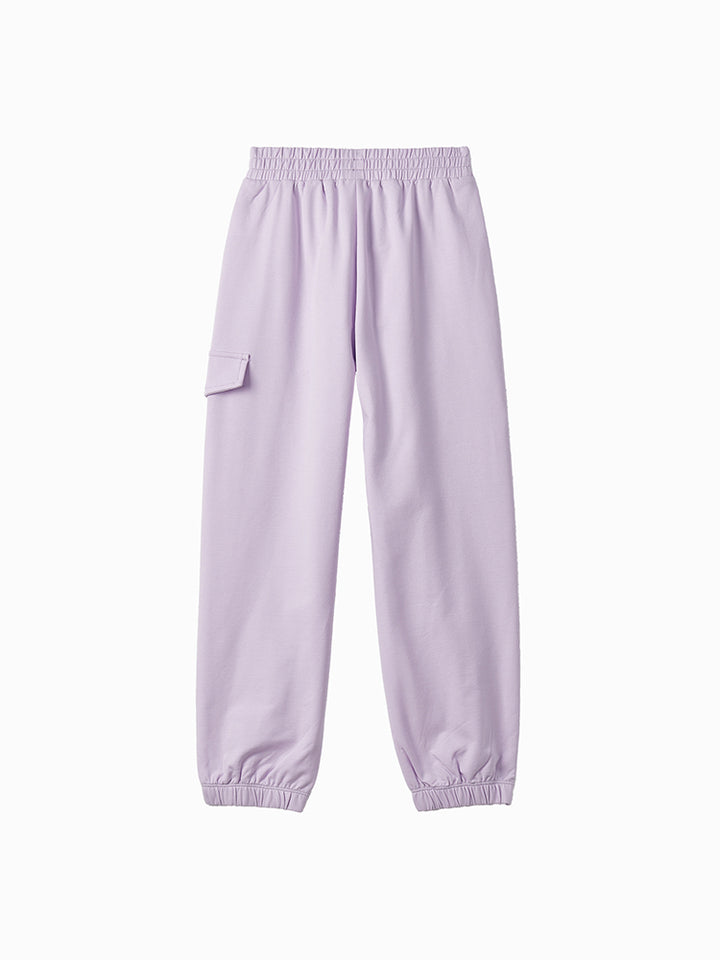 casual sweatpants in a solid mono colored pattern, comes with pockets on the front side and flap pocket on the side of one leg, comfy elasticated waistband and an adjustable drawstring on waistline
