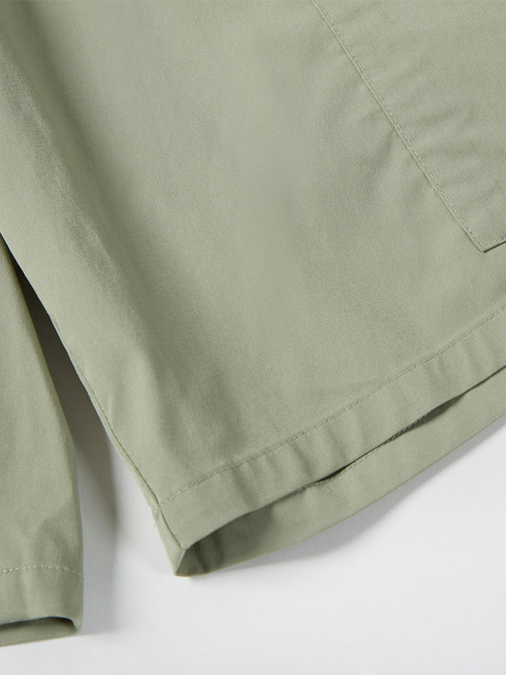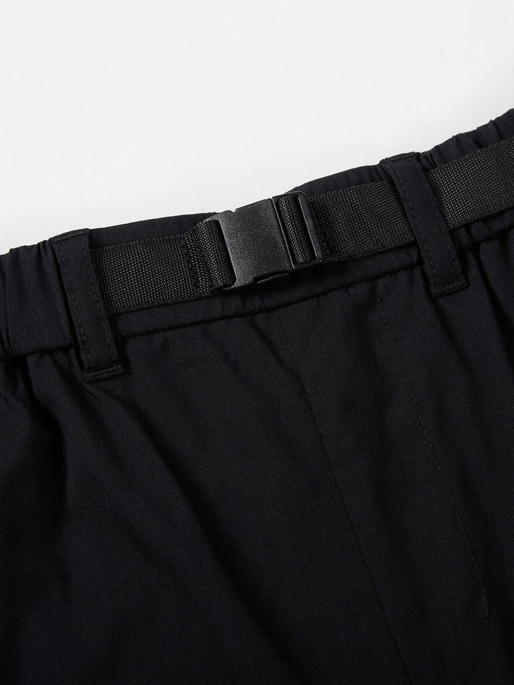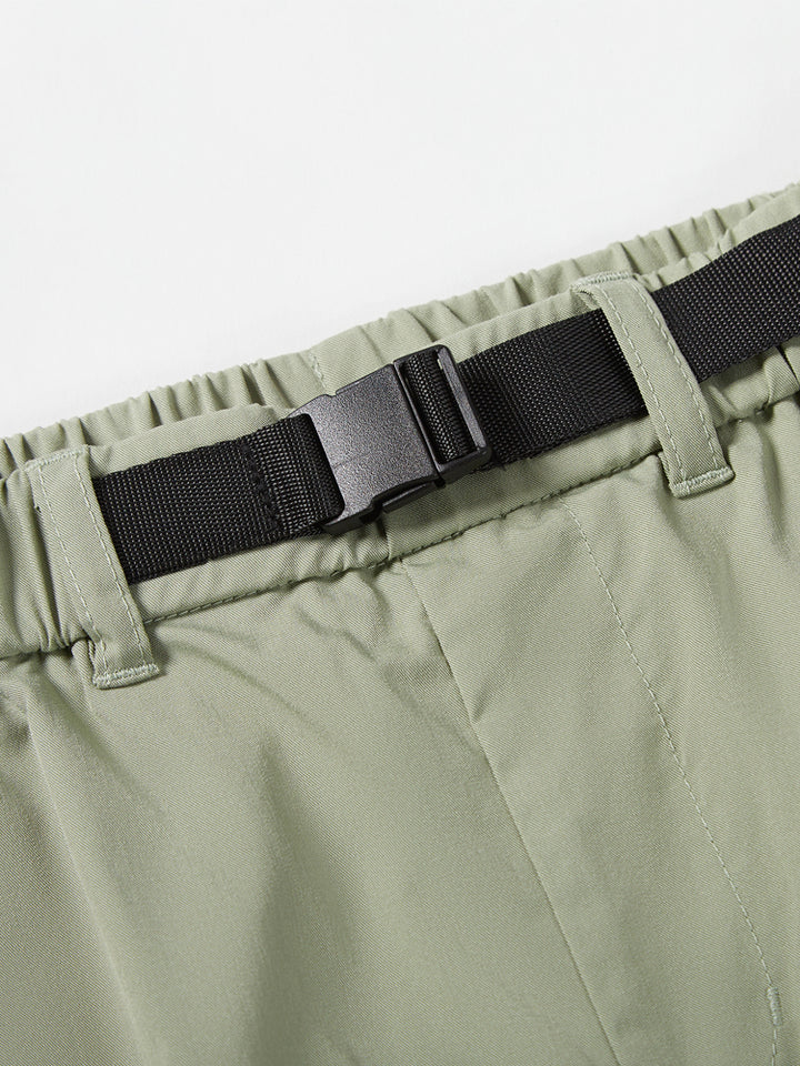 casual shorts in a contrast colored detailed pattern, comes with pockets on the front side and flap pockets on the sides of both legs, comfy elasticated waistband and a buckled strap on waistline
