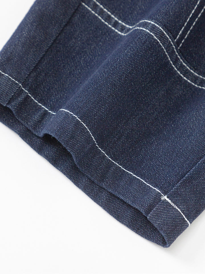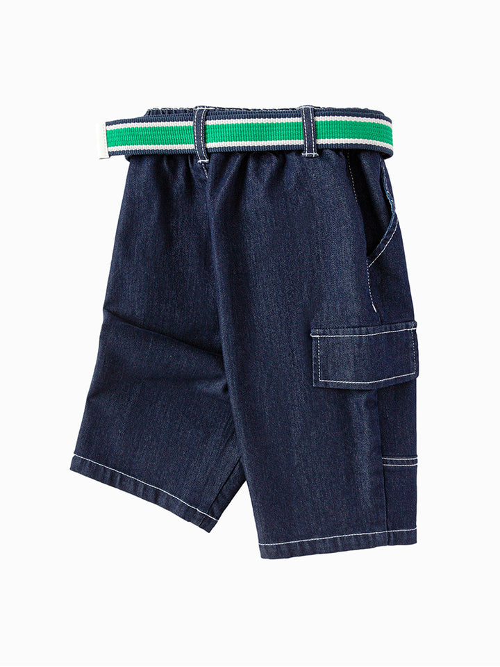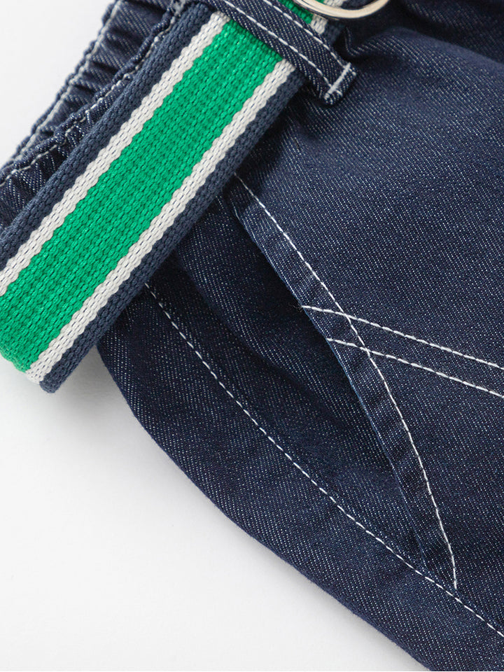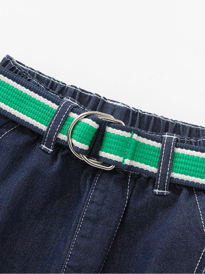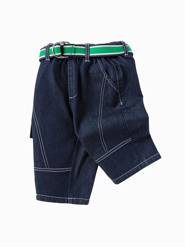casual boys denim pants in a solid mono colored pattern, comes with pockets on the front side, a comfy elasticated waistband and a belt on waistline