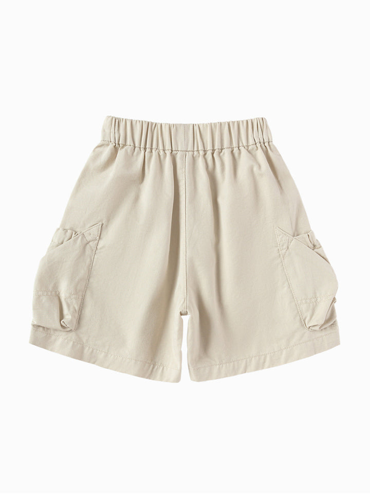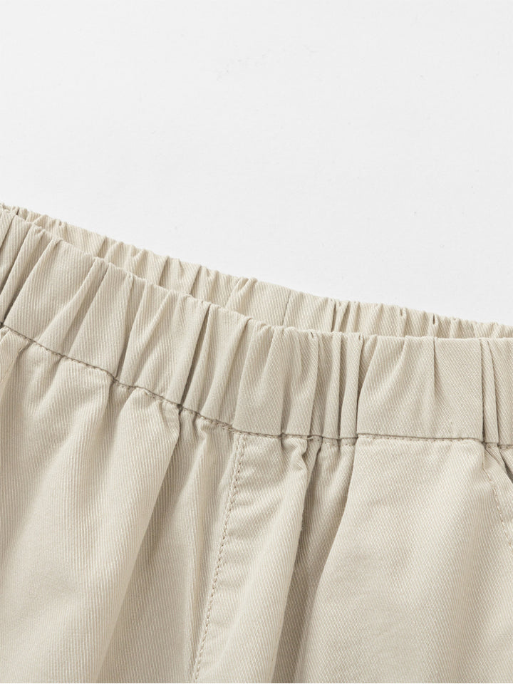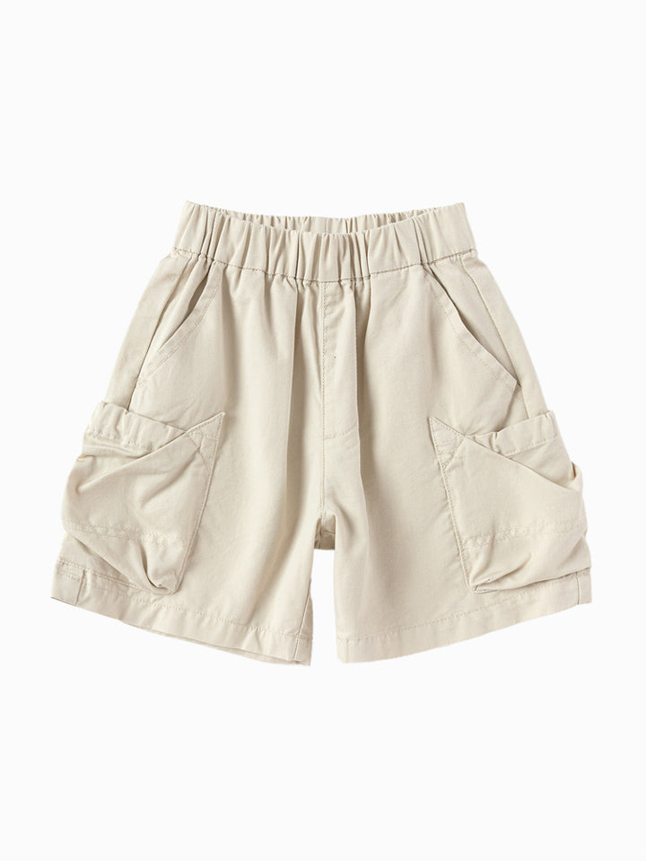 casual boy shorts in a solid mono colored pattern, comes with pockets on the front side and on thw sides of both legs, comfy elasticated waistband
