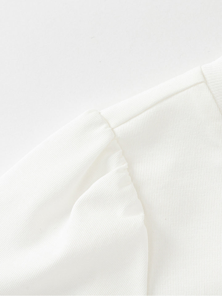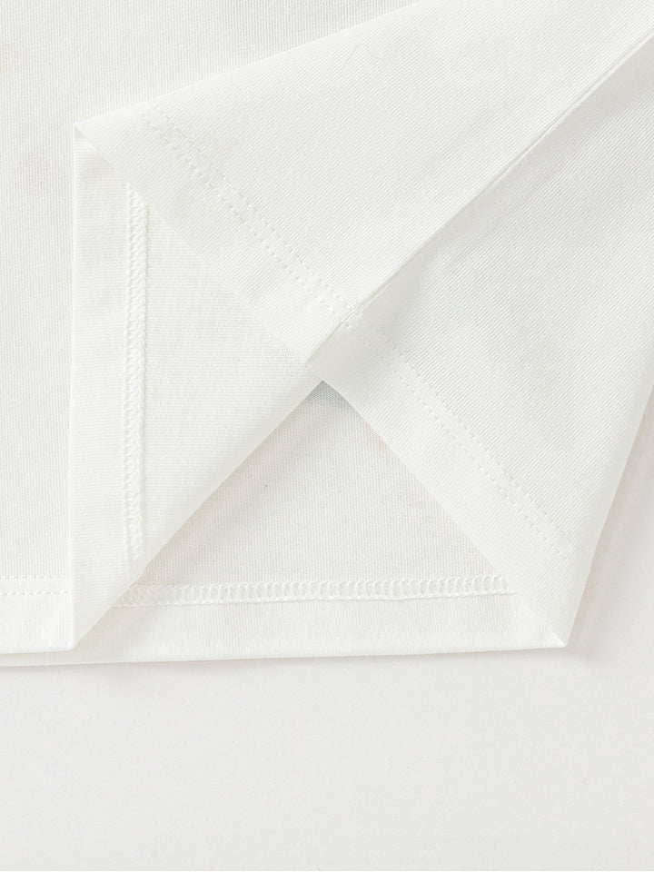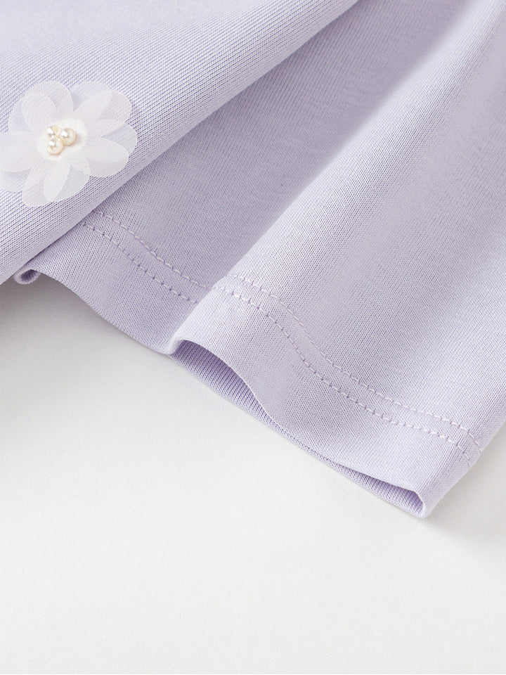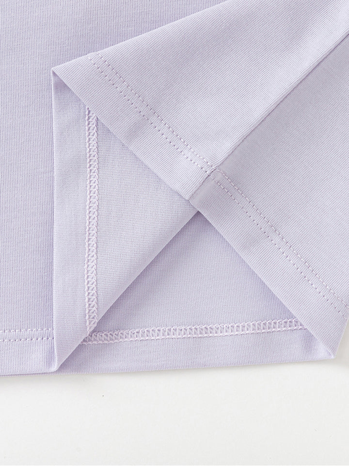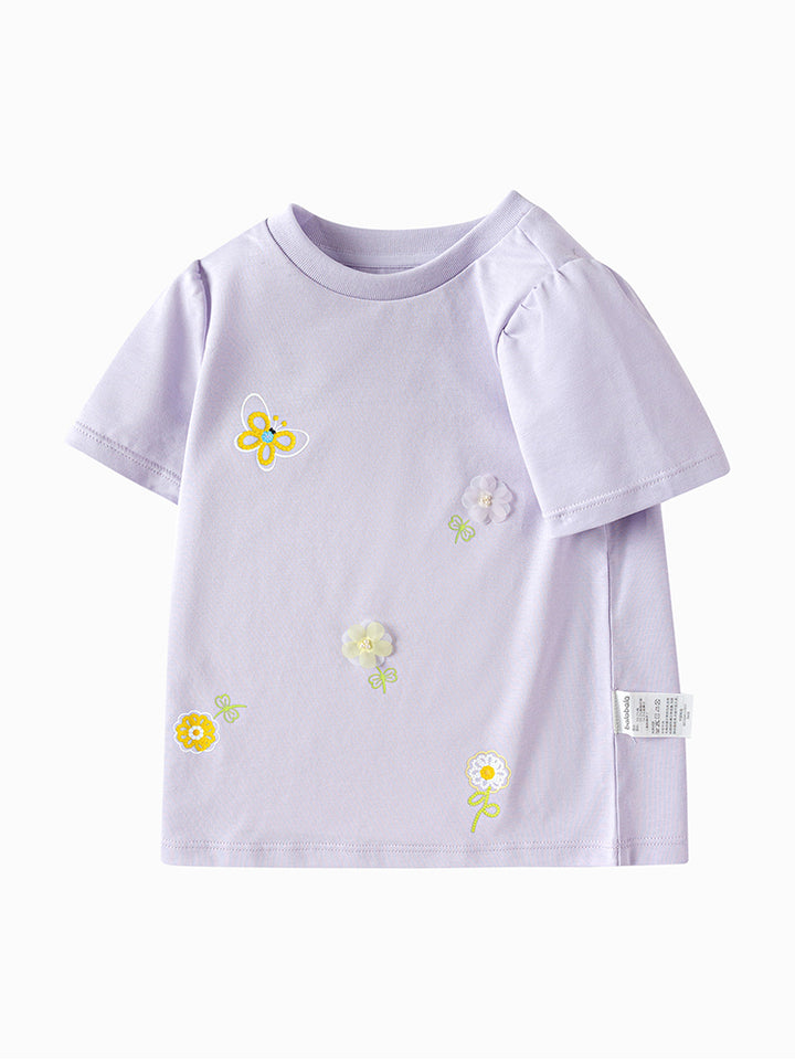short sleeves casual girls t-shirt, decorated with prints on the front side, comes with a rounded shape neckline