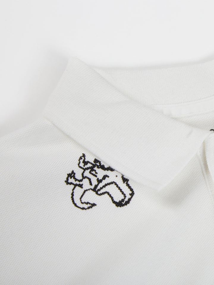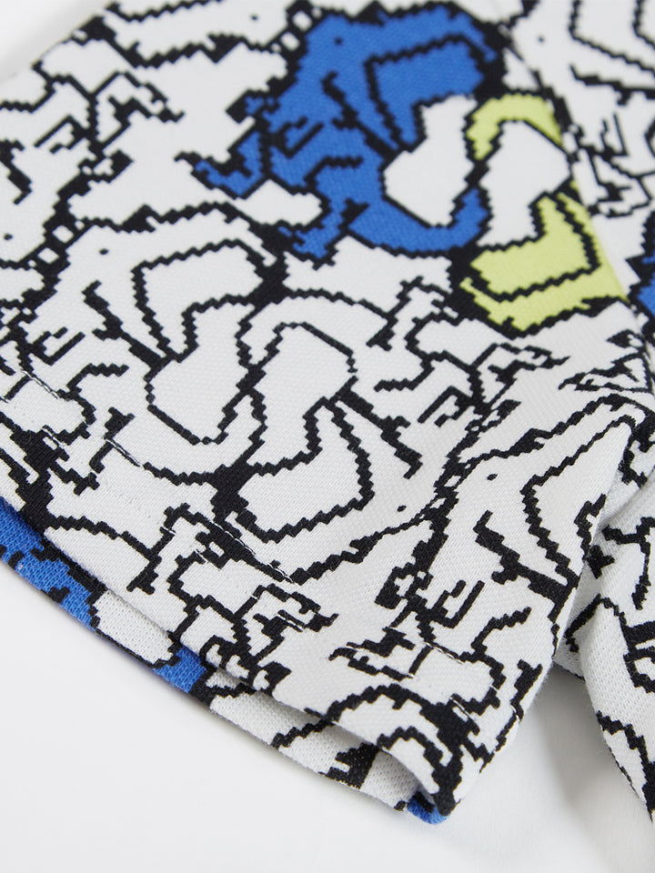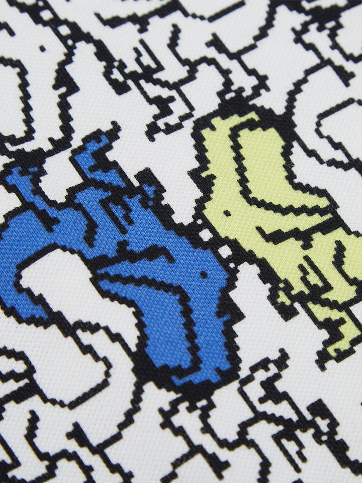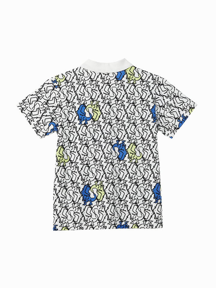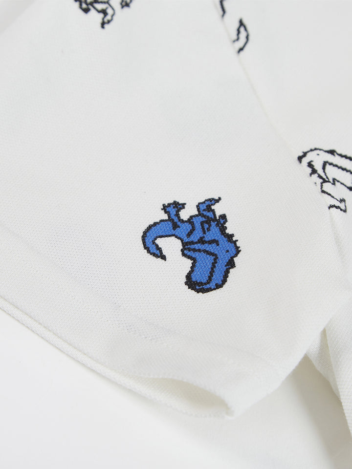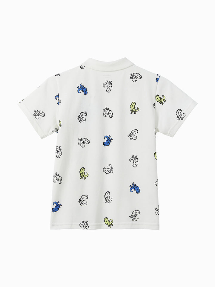 short sleeves casual polo t-shirt, decorated with a printed pattern, comes with buttons for closure on the front side and with a classic regular collar