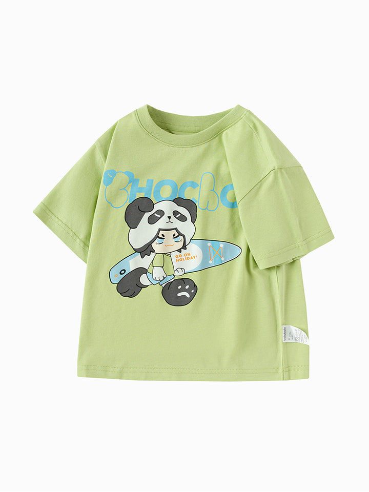 short sleeves casual boys t-shirt, decorated with a print on the front side, comes with a rounded shape neckline