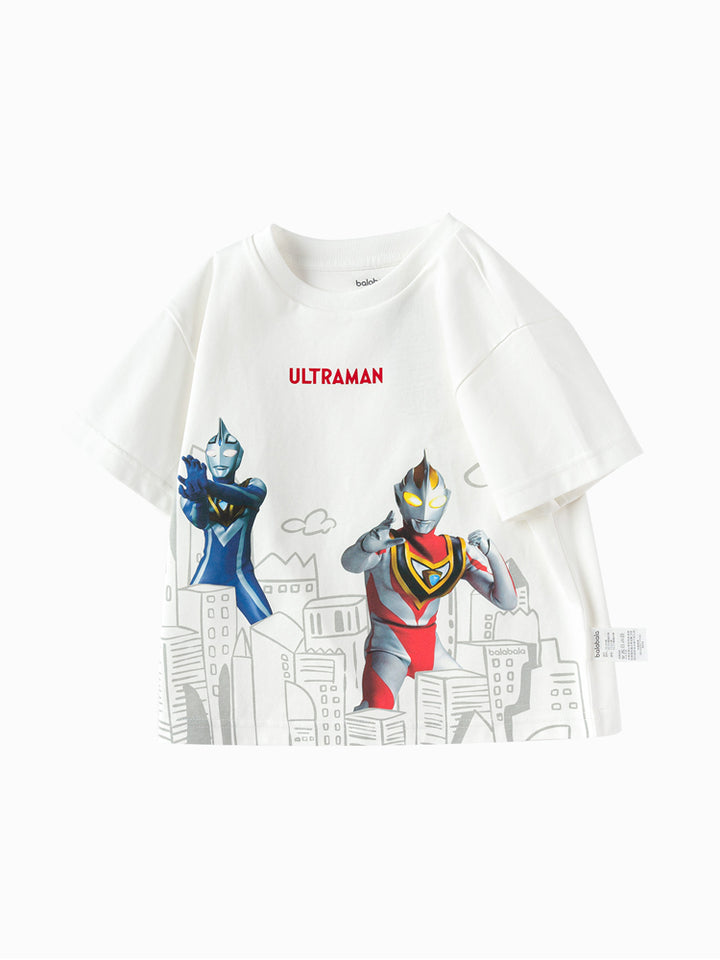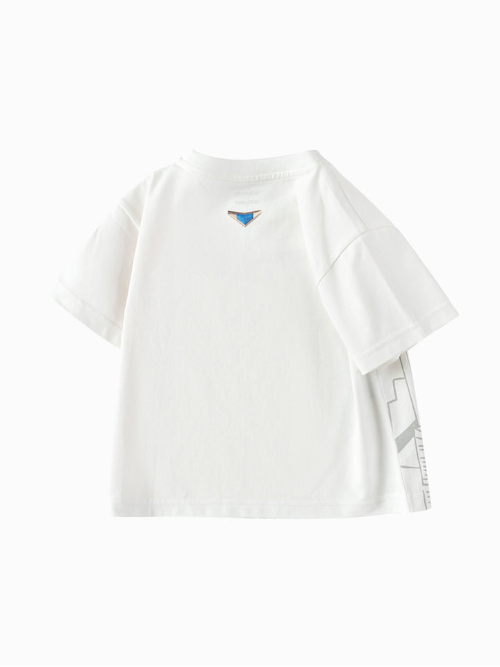 short sleeves casual boy t-shirt, decorated with a print on the front side, comes with a rounded shape neckline