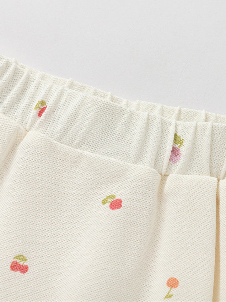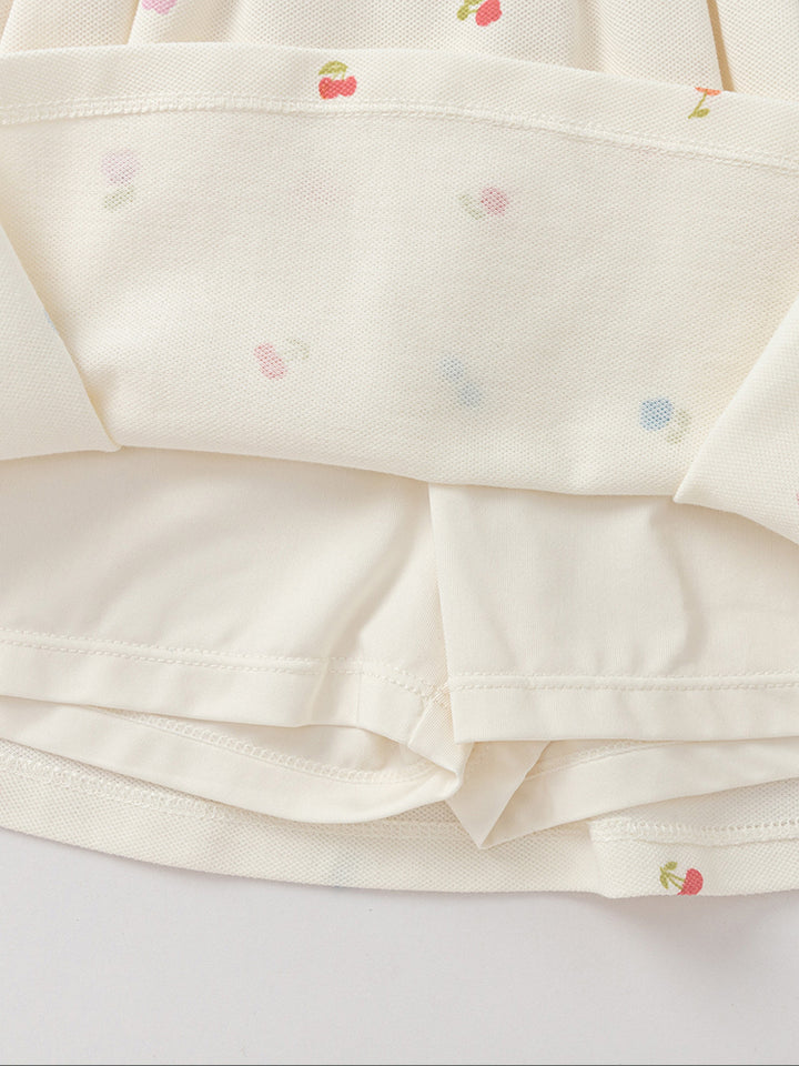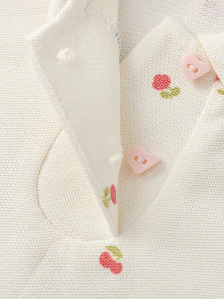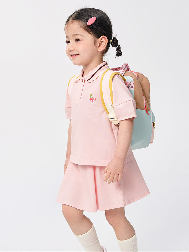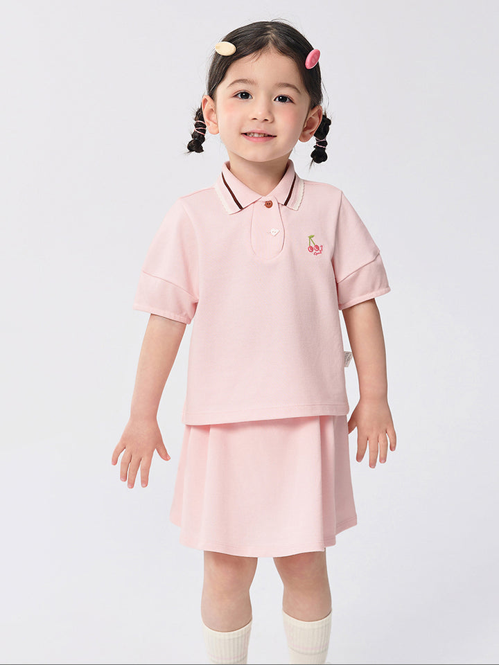 This adorable two-piece set features a short sleeves top with tiny embroidery, front button closure, and a classic collar. Paired with a solid color skirt with an elastic waist for a comfortable and stylish look