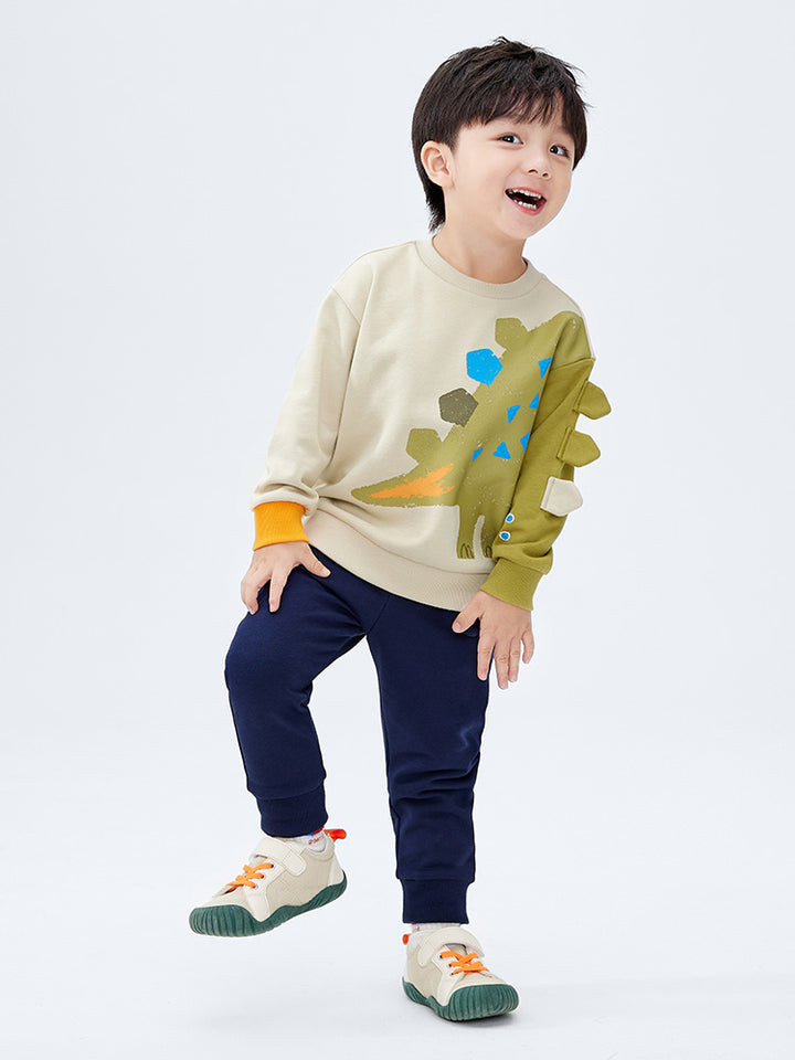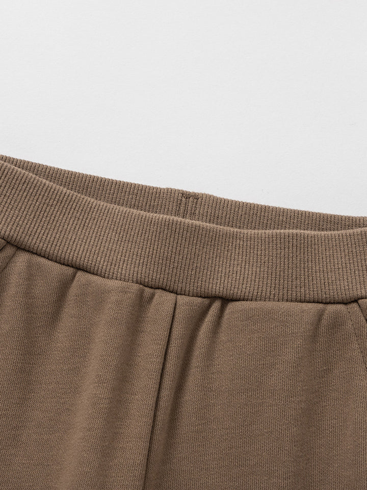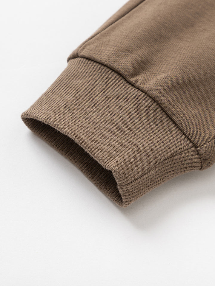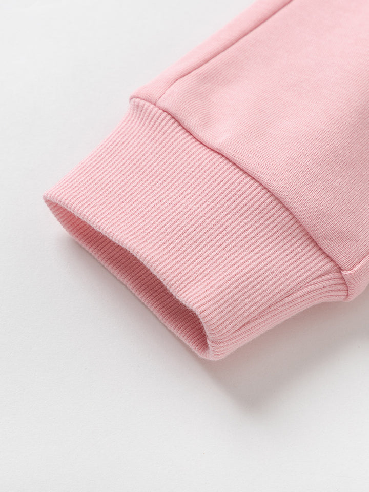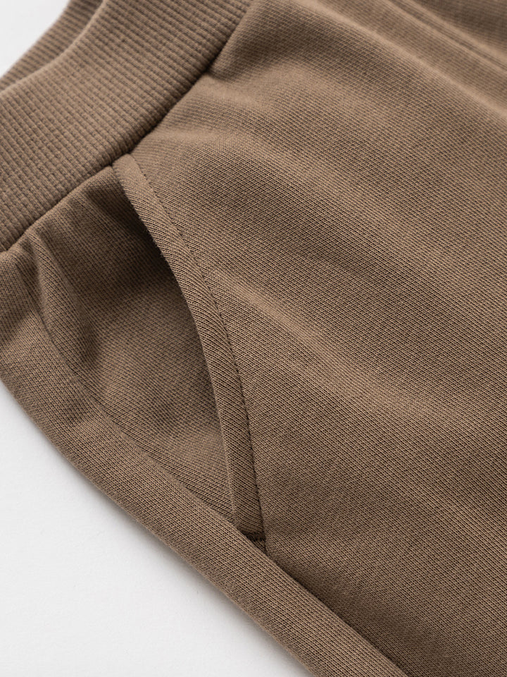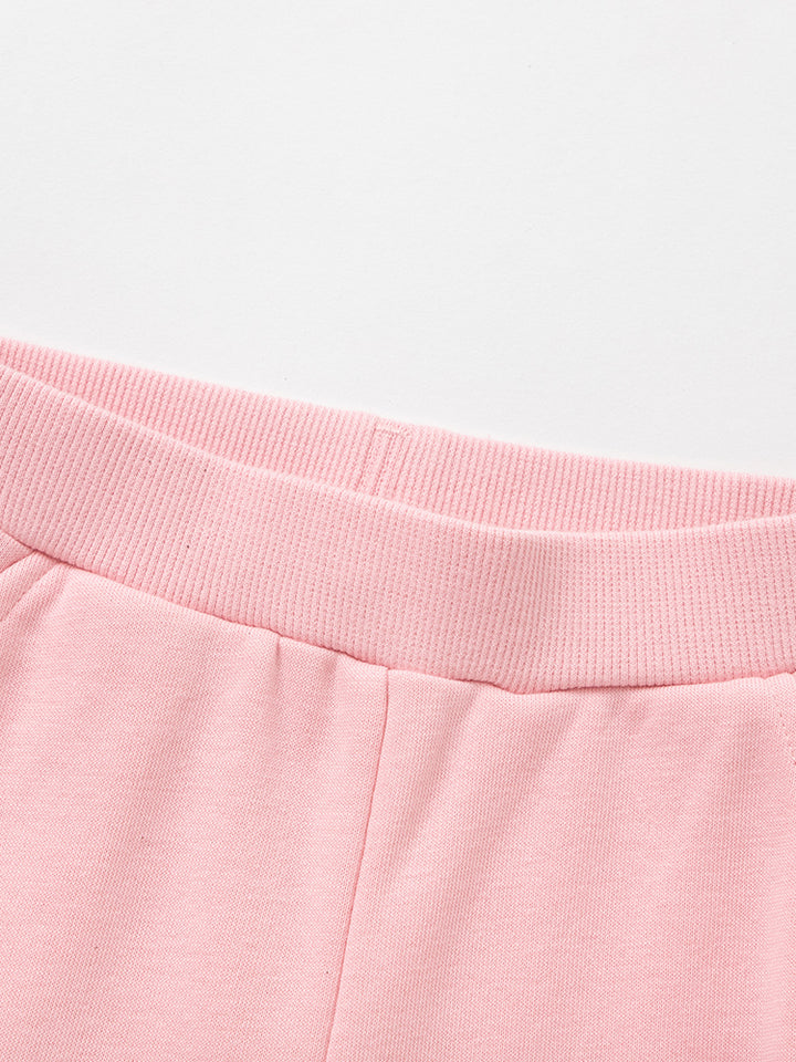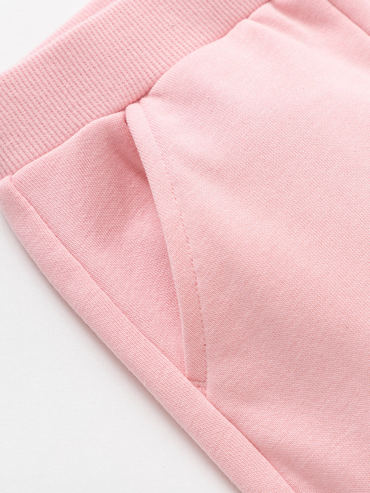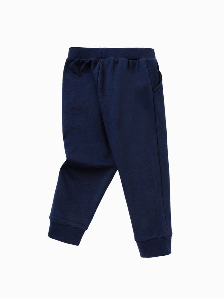 casual sweatpants in a solid mono colored pattern, decorated with a small stuffed toy detail on the front side, comes with pockets on the front side and a comfy elasticated waistband