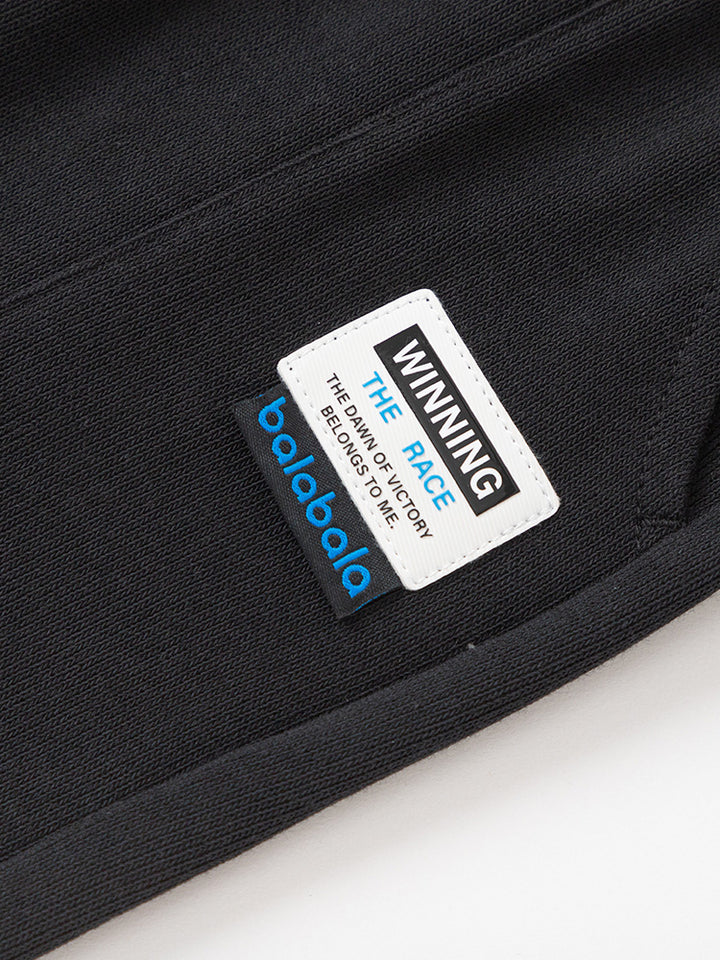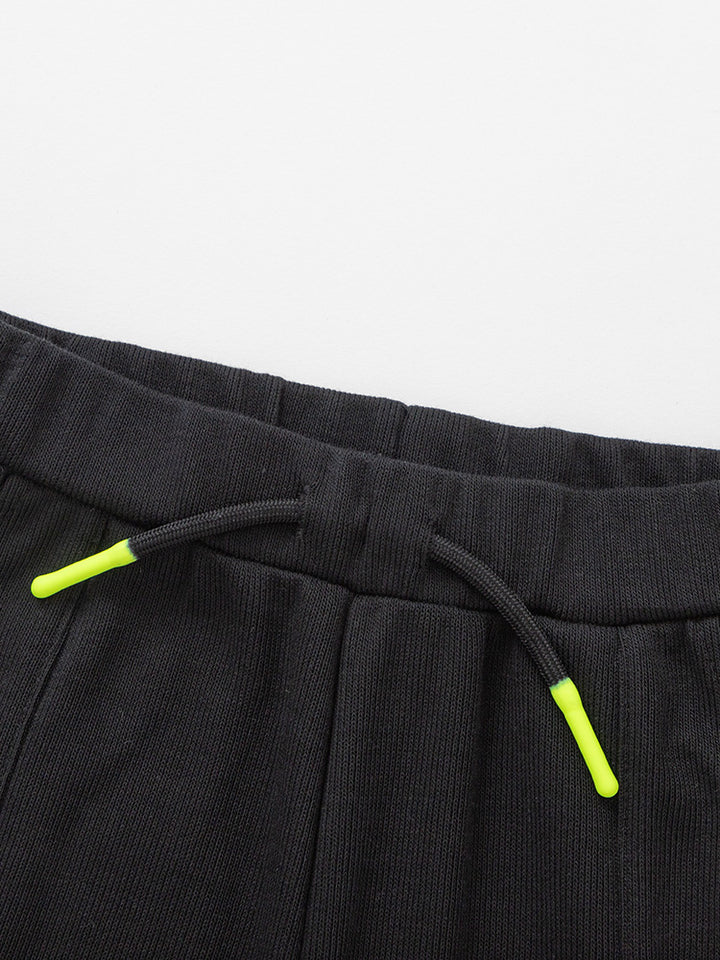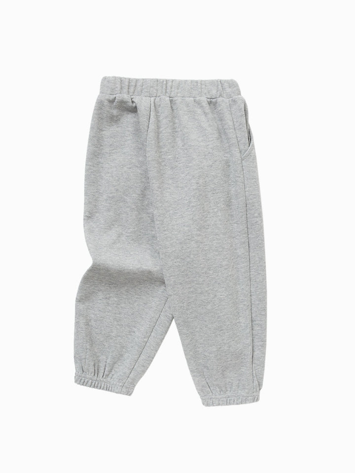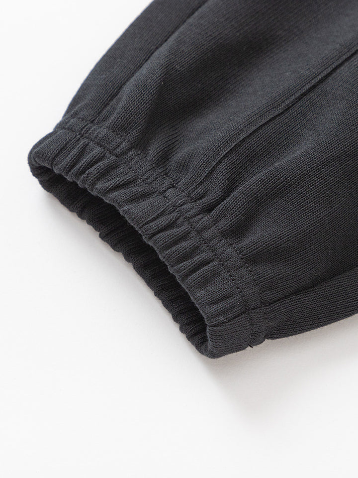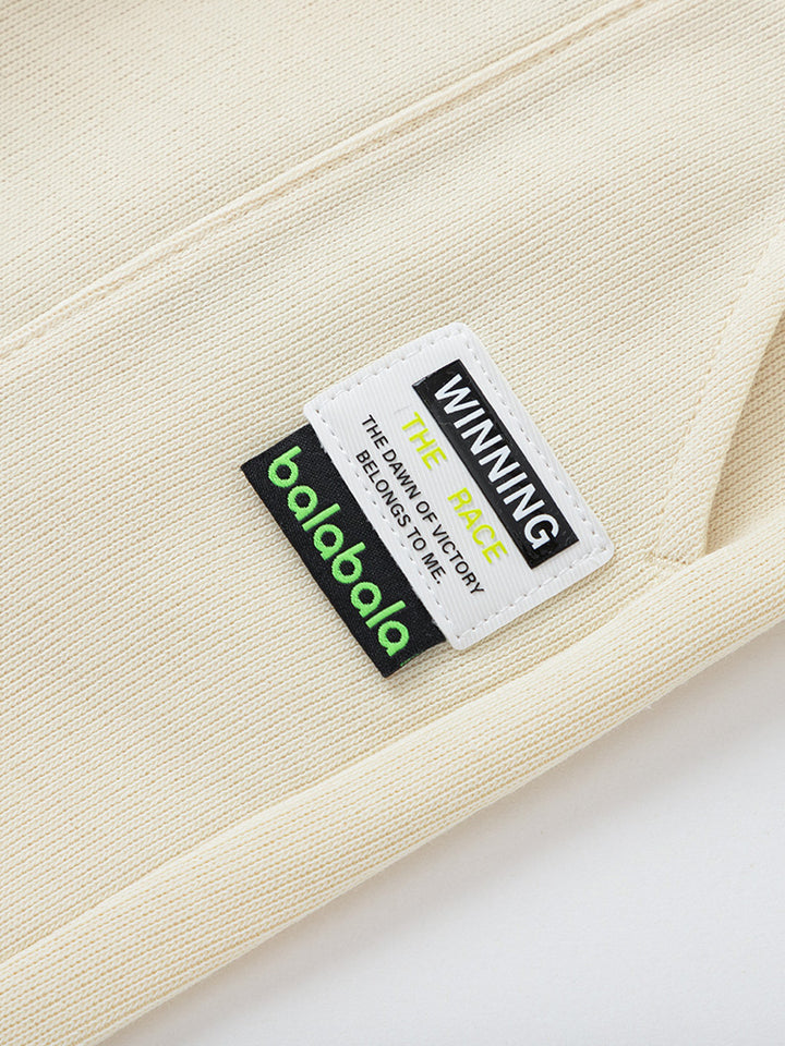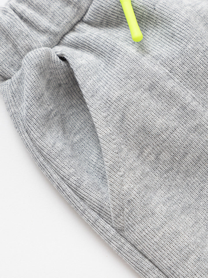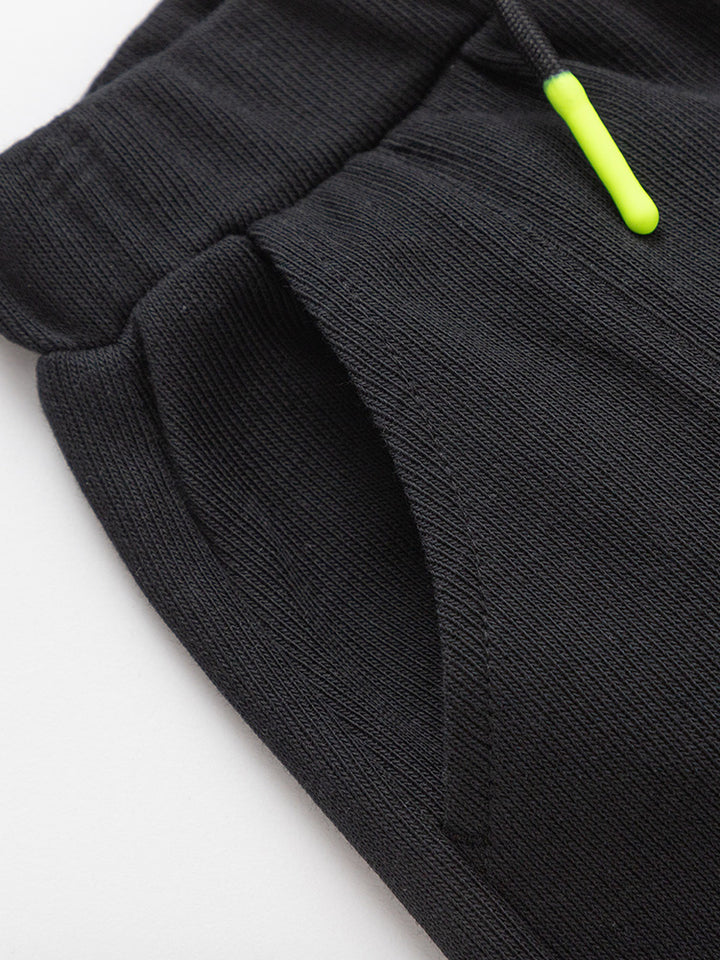 casual sweatpants in a solid mono colored pattern, decorated with a small patch on the front side, comes with pockets on the front side, adjustable drawstring and a comfy elasticated waistband