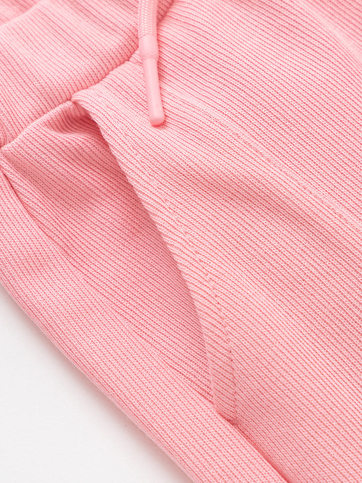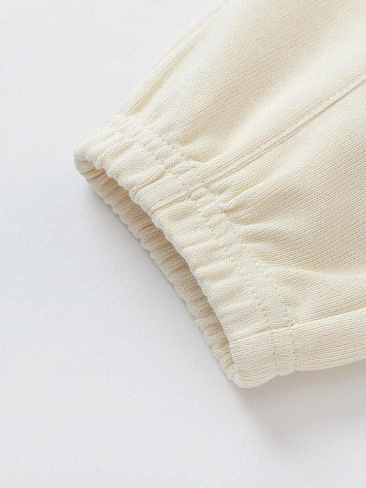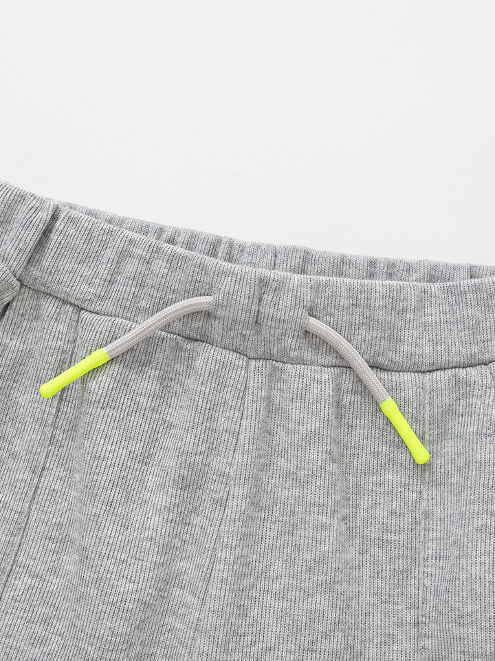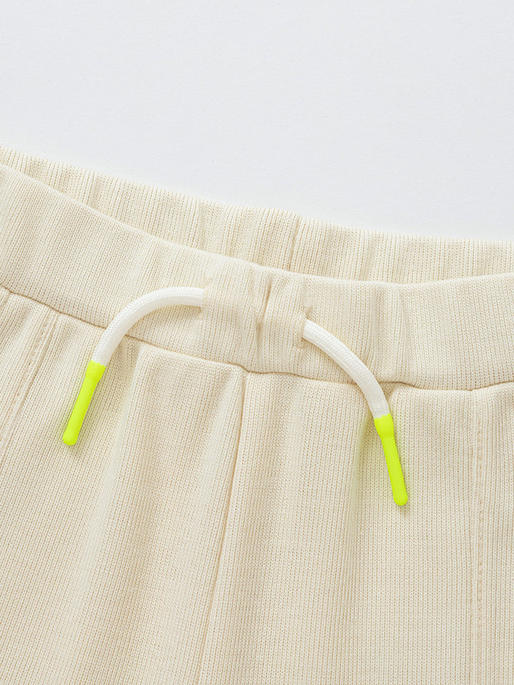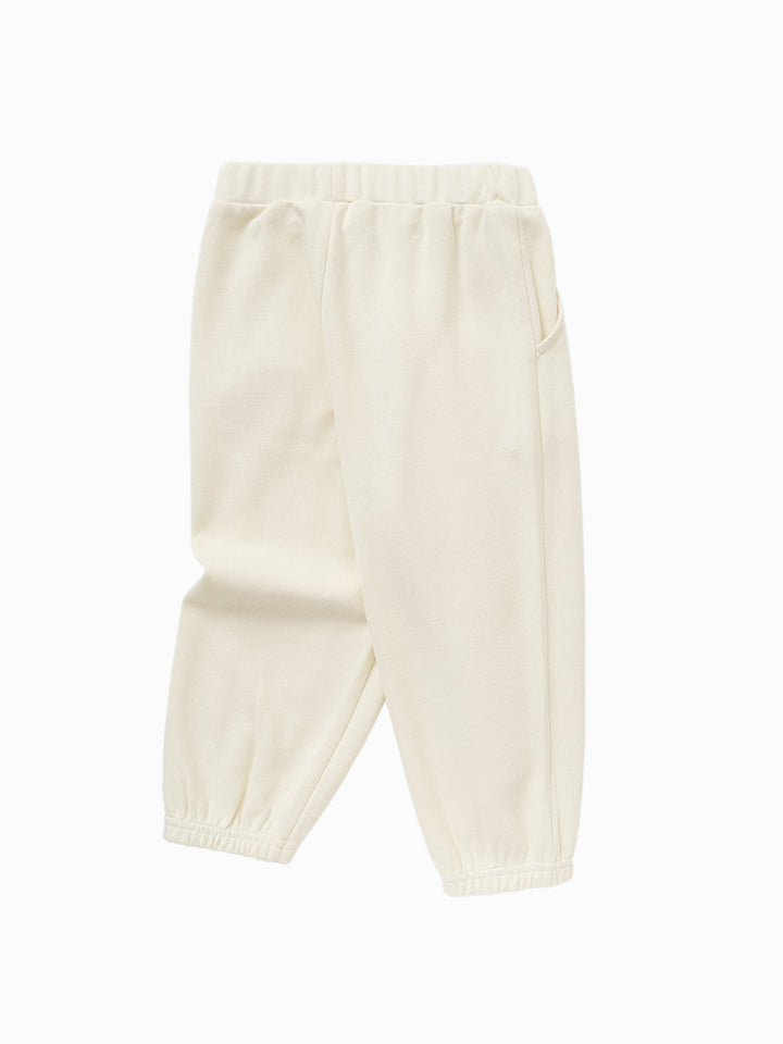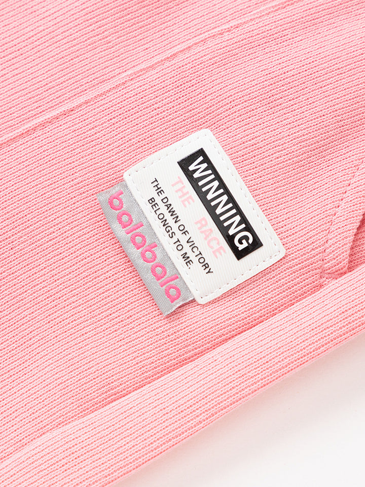 casual sweatpants in a solid mono colored pattern, decorated with a small patch on the front side, comes with pockets on the front side, adjustable drawstring and a comfy elasticated waistband