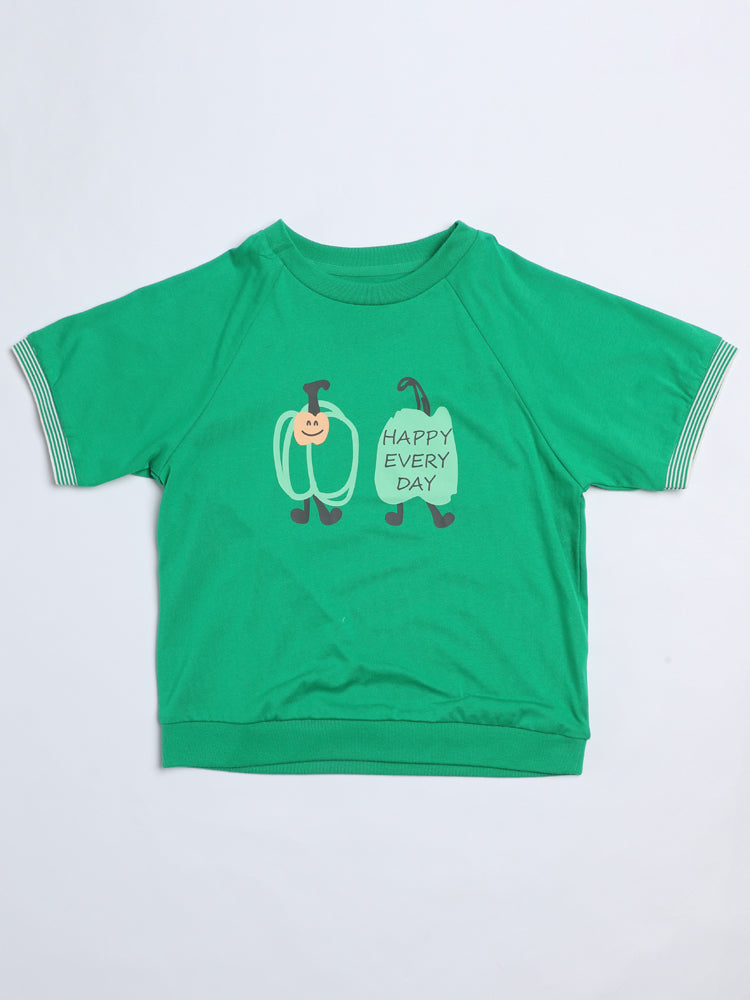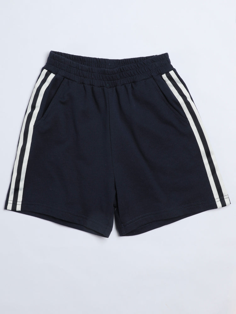 A fun kids’ set featuring a short-sleeved printed t-shirt paired with sporty shorts designed with side stripes and an elastic waistband for extra comfort. Perfect for active days and casual outings.