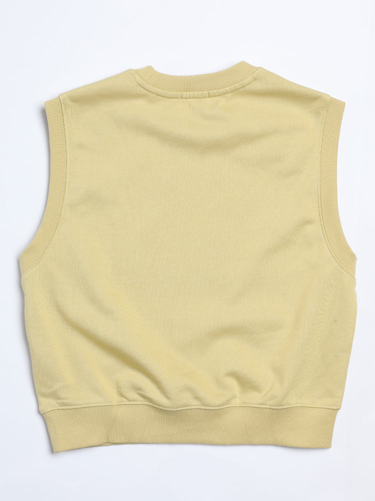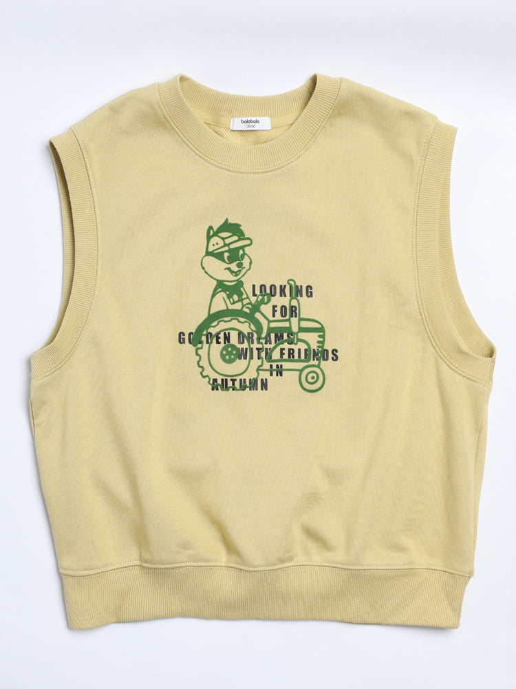 A stylish sleeveless kids’ t-shirt featuring a fun front print for a lively touch. Comfortable and easy to wear, perfect for casual looks and playtime.