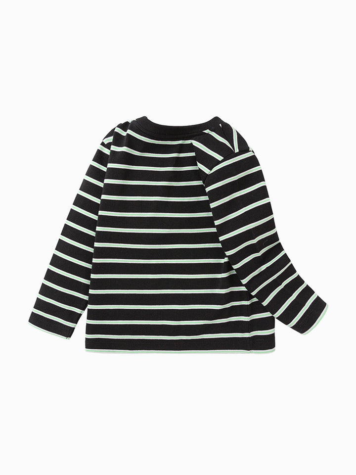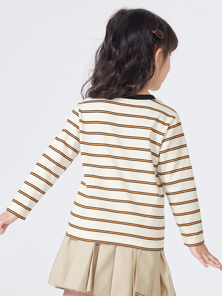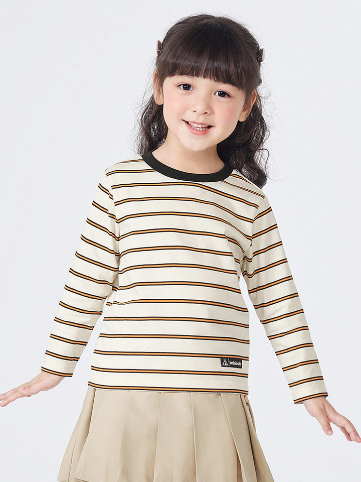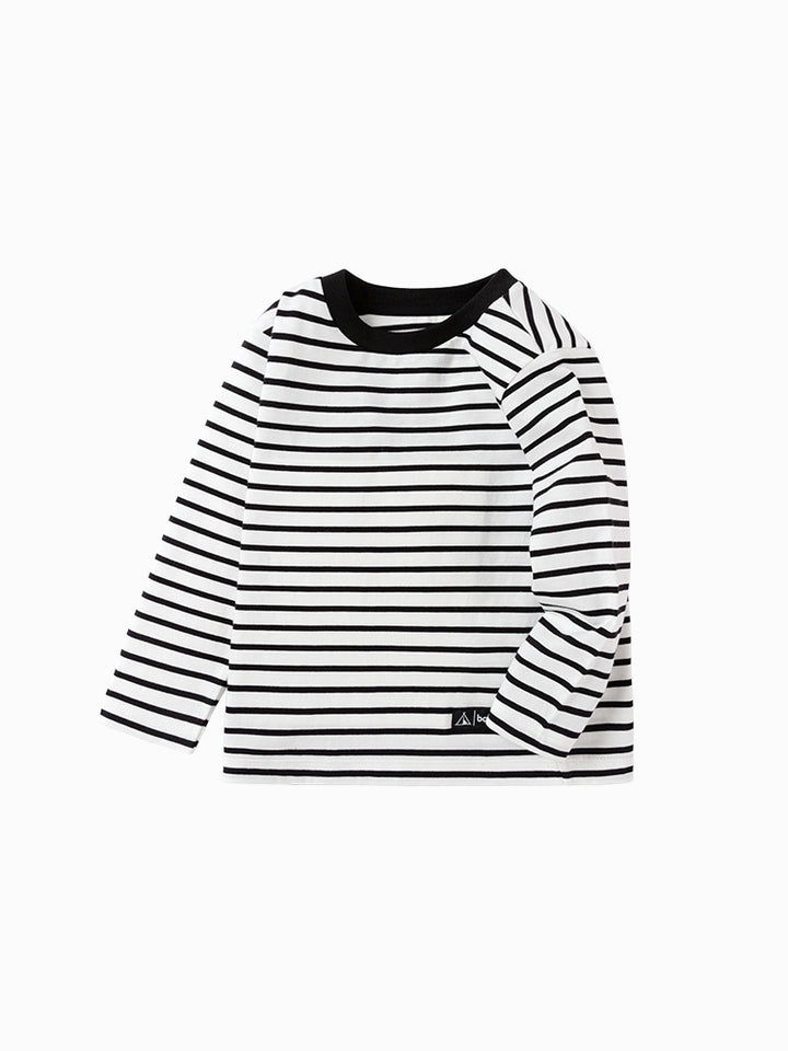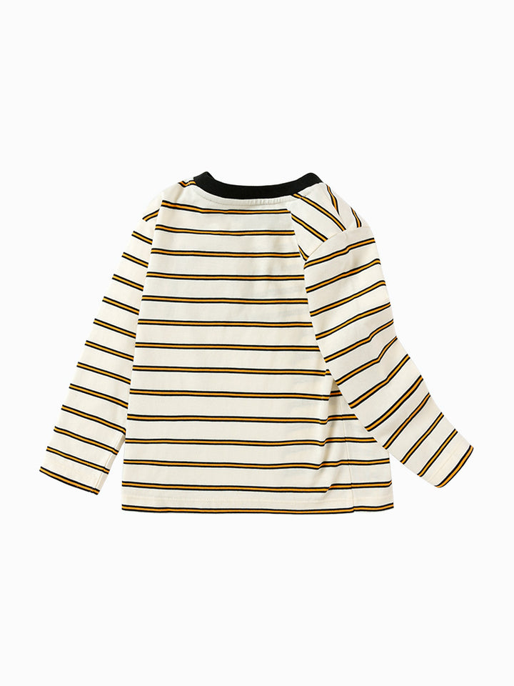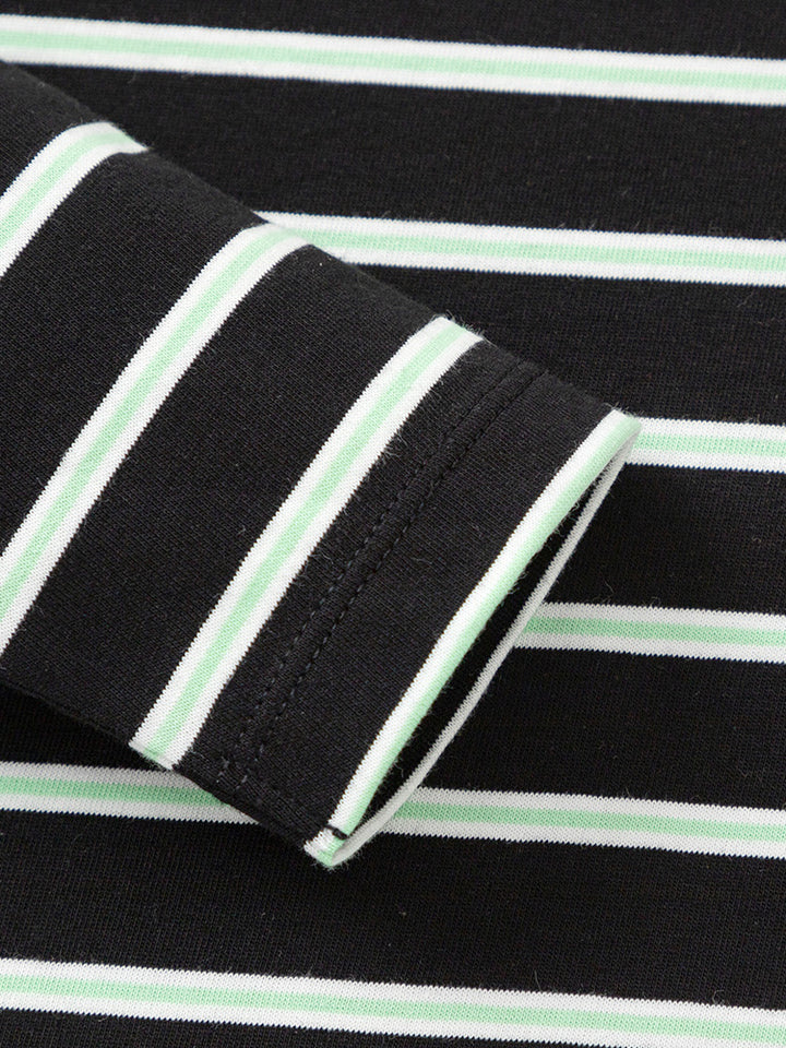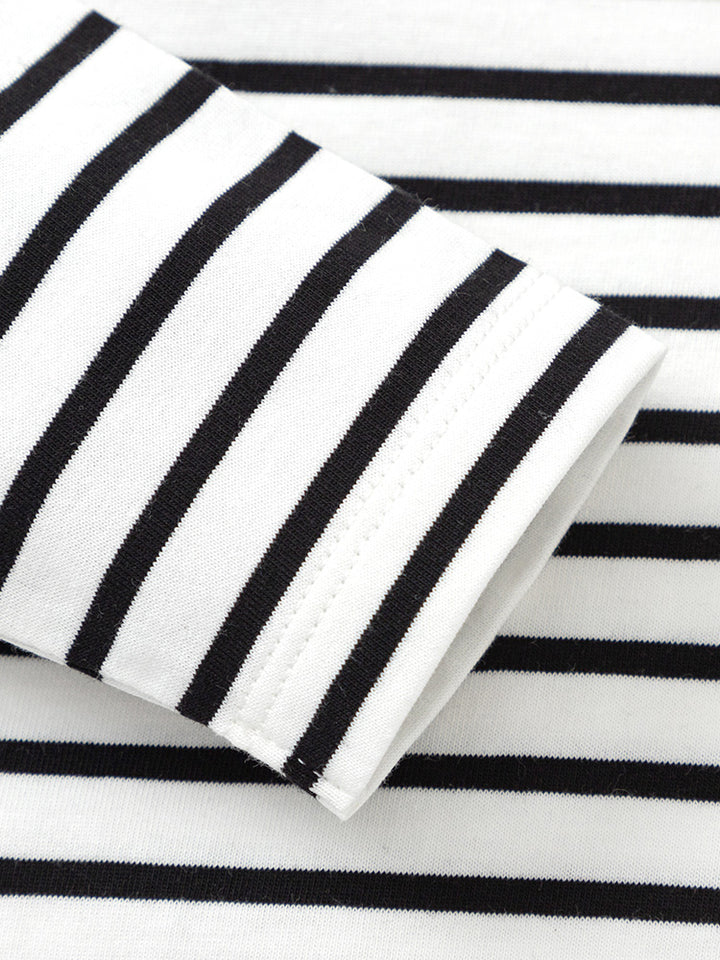 long sleeves casual t-shirt, decorated with a striped printed pattern, comes with a rounded shape collar