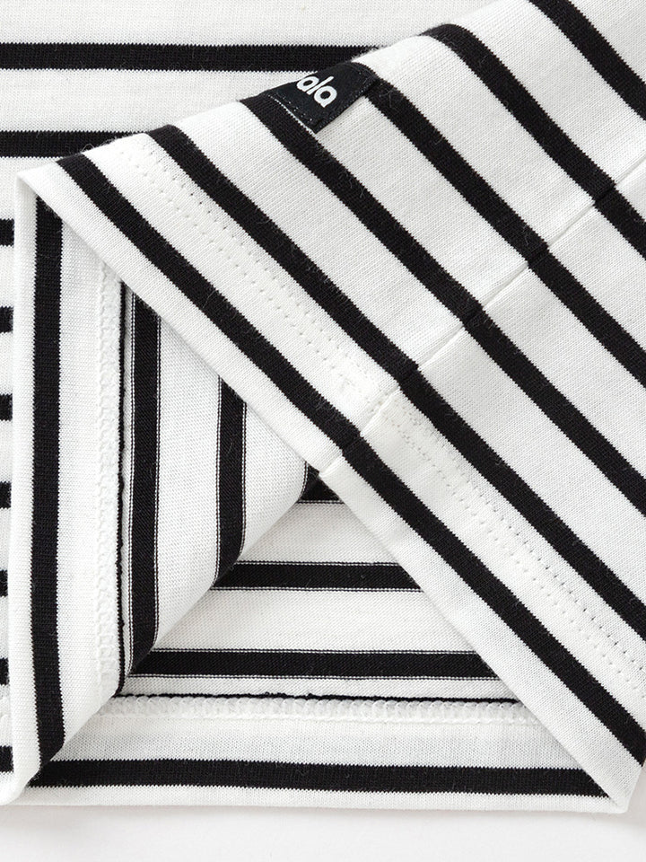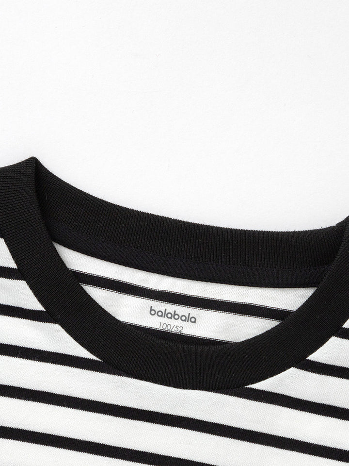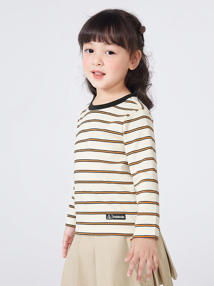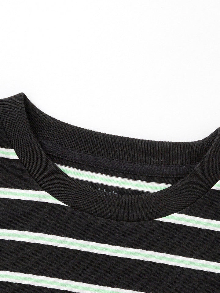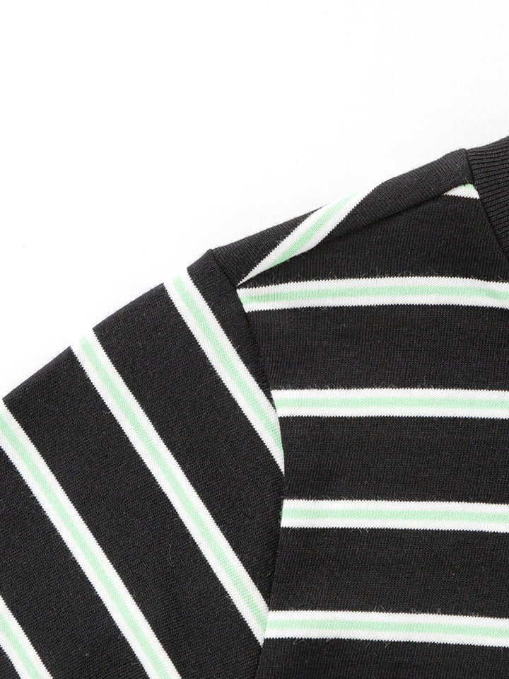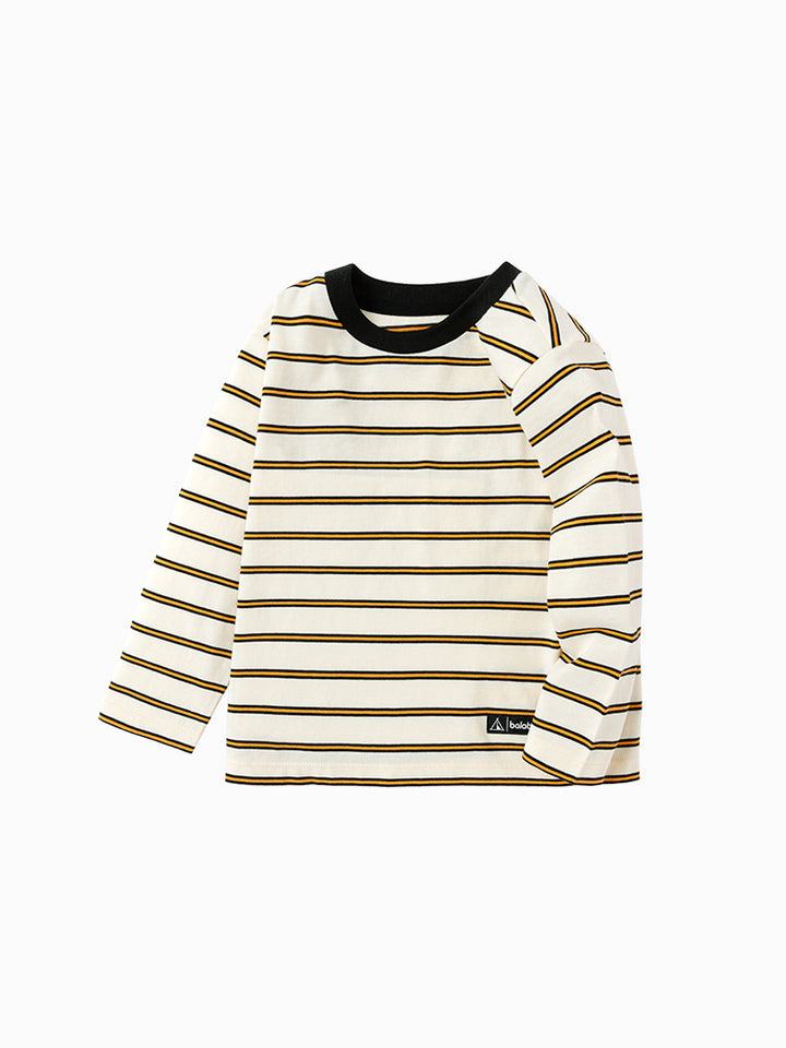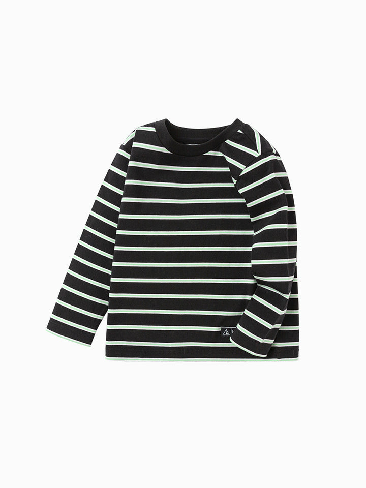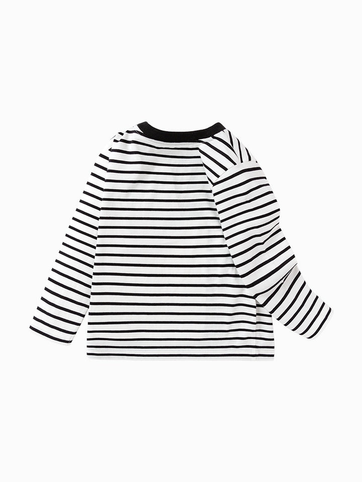 long sleeves casual t-shirt, decorated with a striped printed pattern, comes with a rounded shape collar