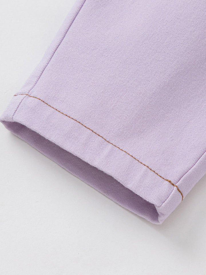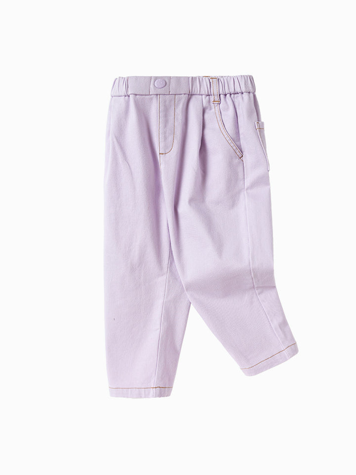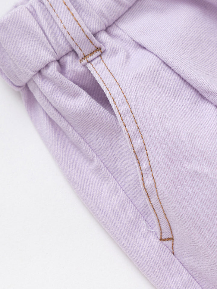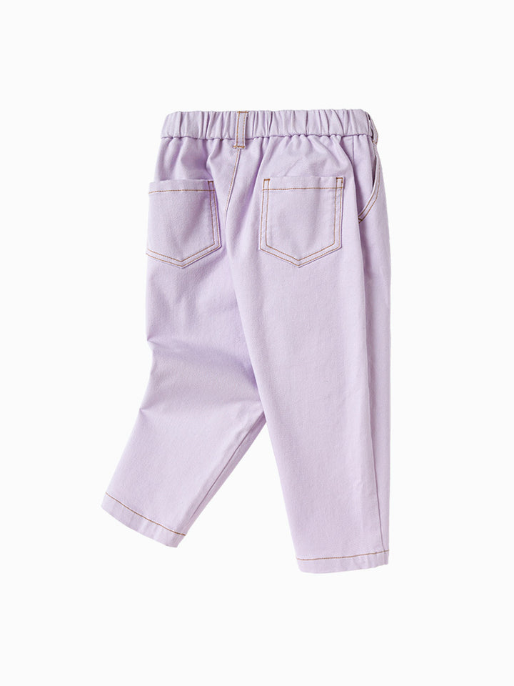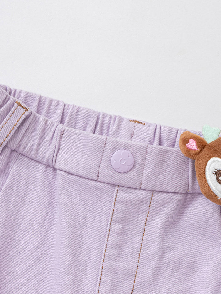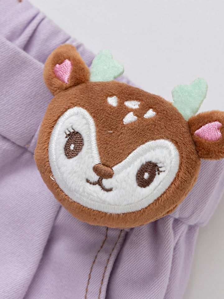 casual pants, decorated with small plush toy detail on waistline, comes with pockets on the front and the back sides and a comfy elasticated waistband