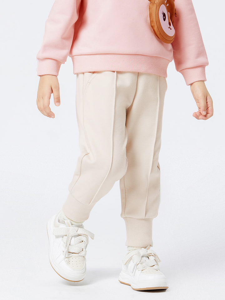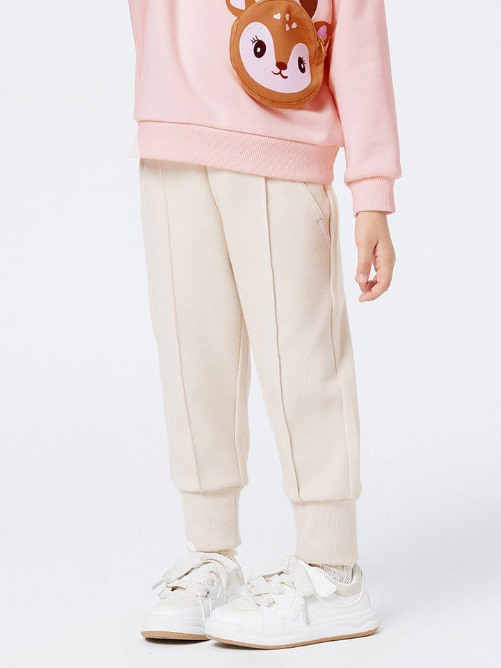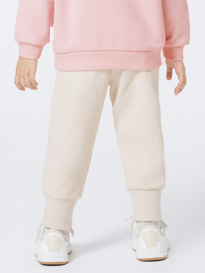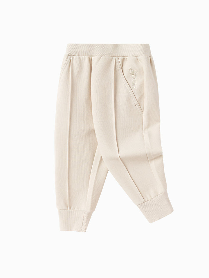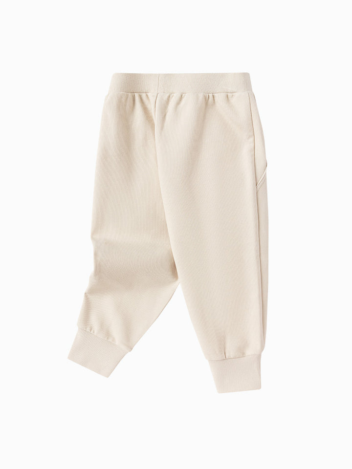 casual sweatpants in a solid mono colored pattern, decorated with a small embroidery on the front side, comes with pockets on the front side and with a comfy elasticated waistband
