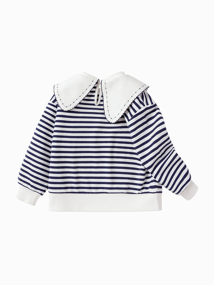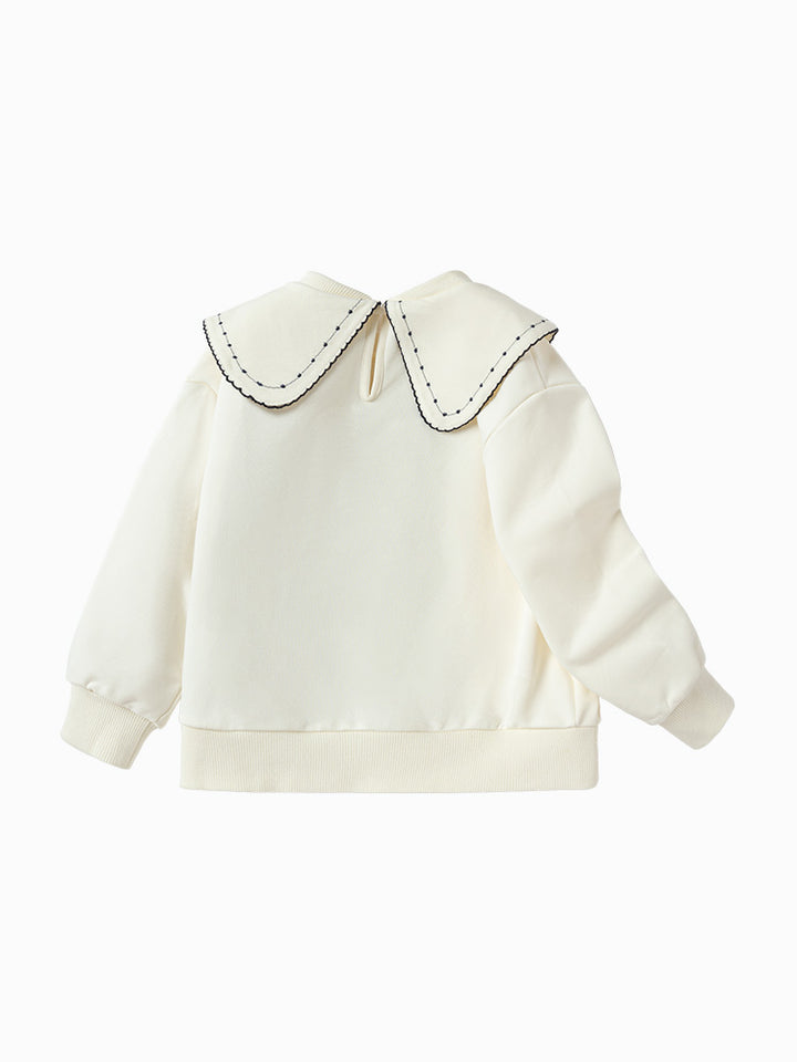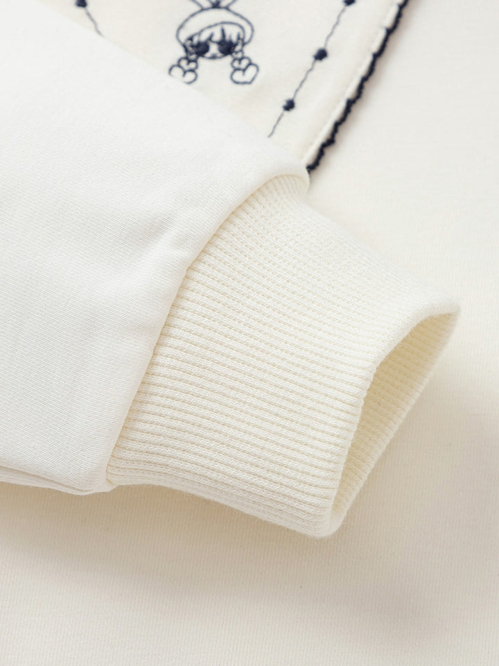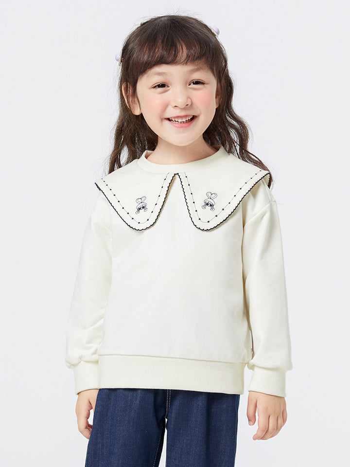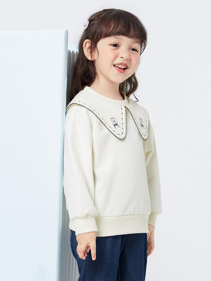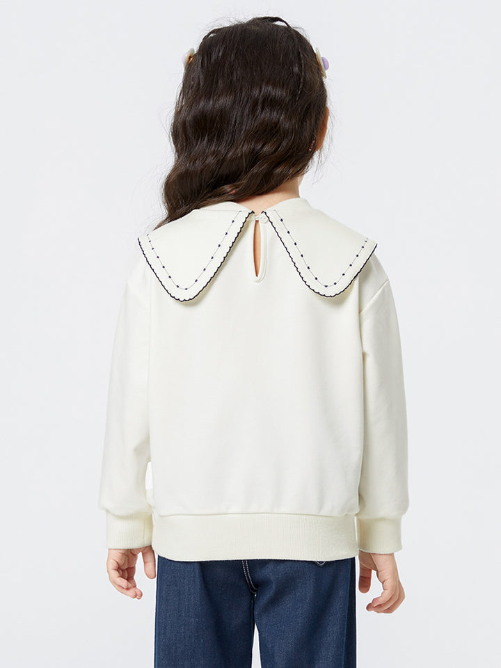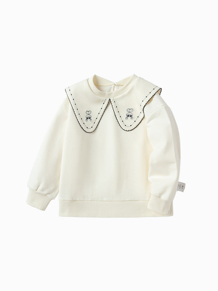 long sleeves casual blouse decorated with embroidery details on collar, comes with button for closure on the back side and with a wide cut classic collar