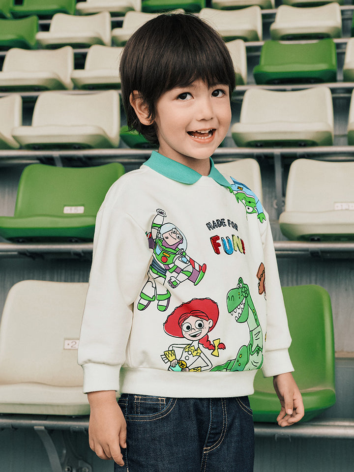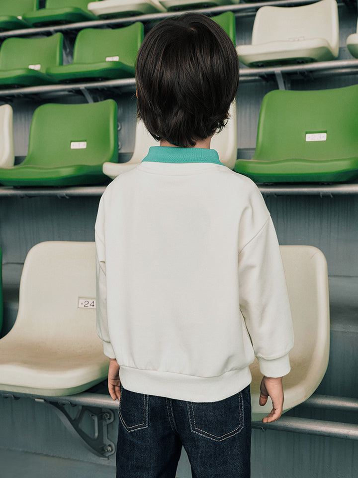 long sleeves casual sweatshirt, decorated with prints on the front side, comes with a rounded shape collar