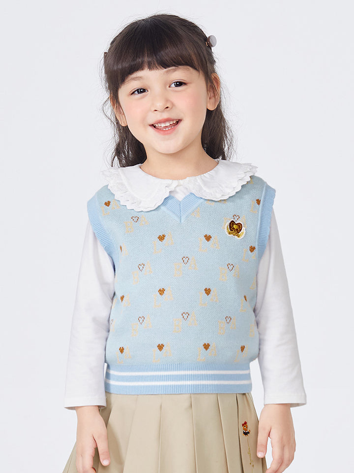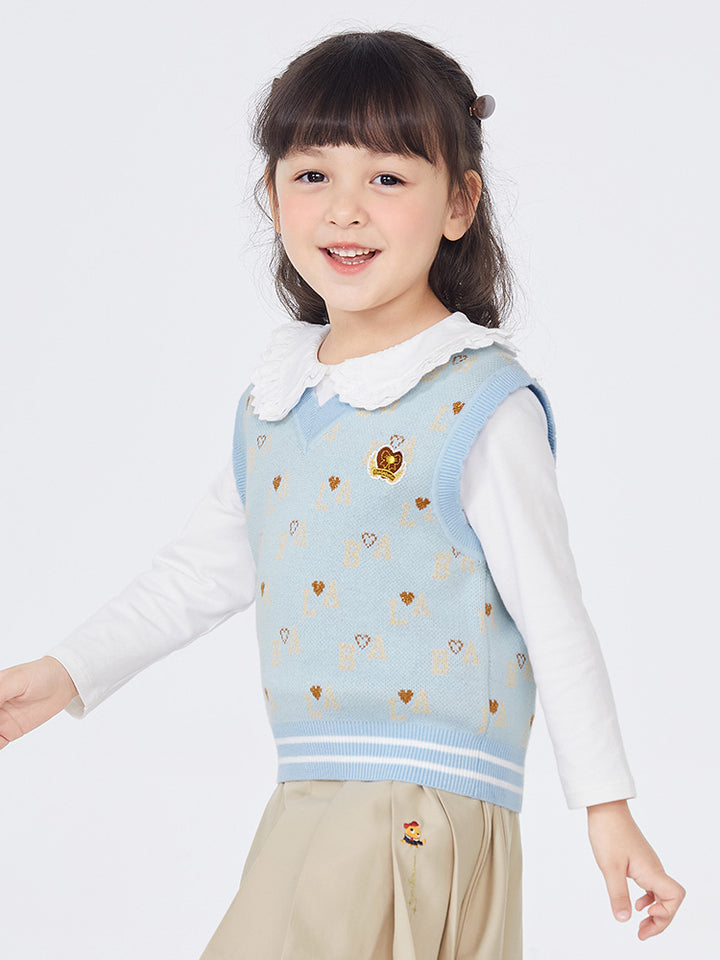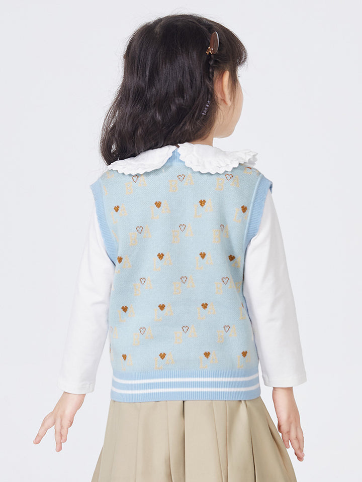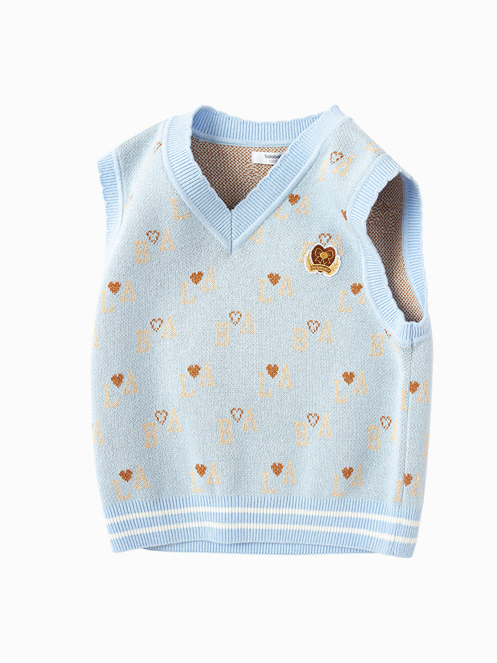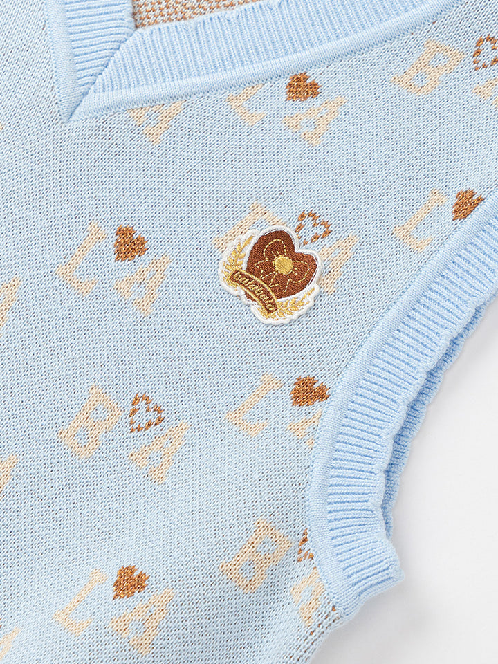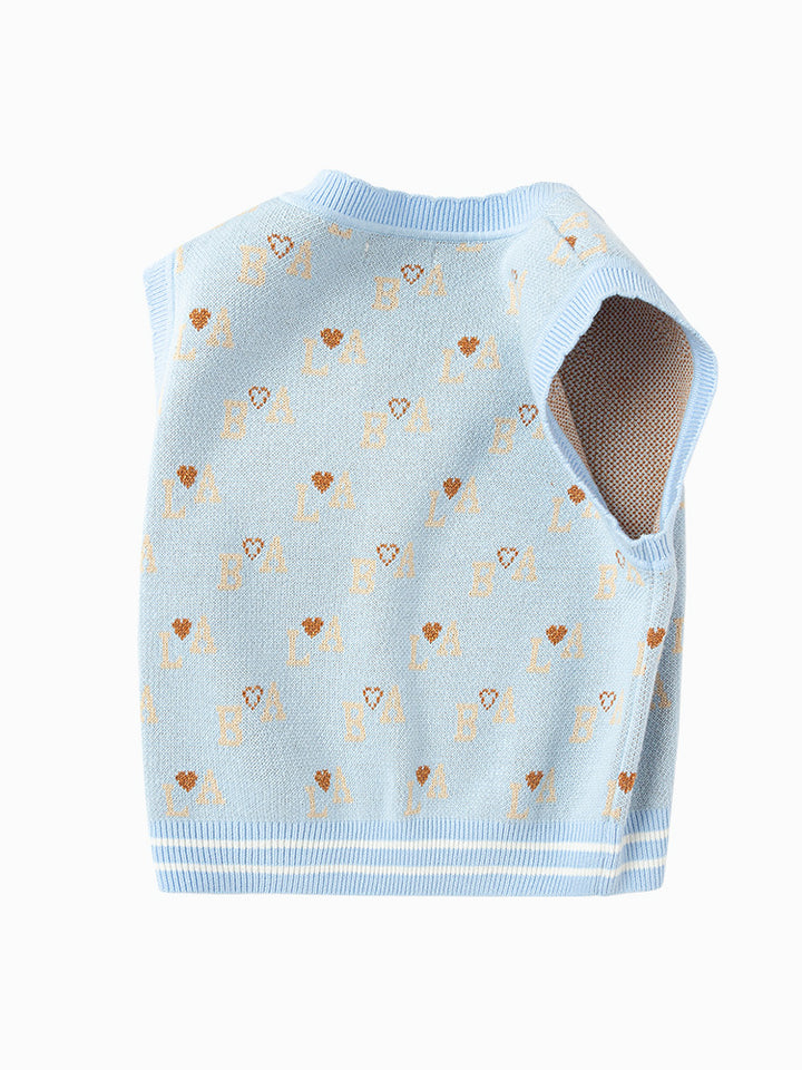 sleeveless knitted vest, decorated with a printed pattern, comes with a V shape collar