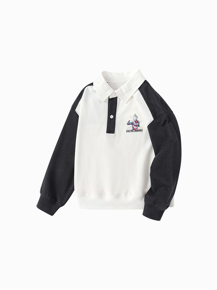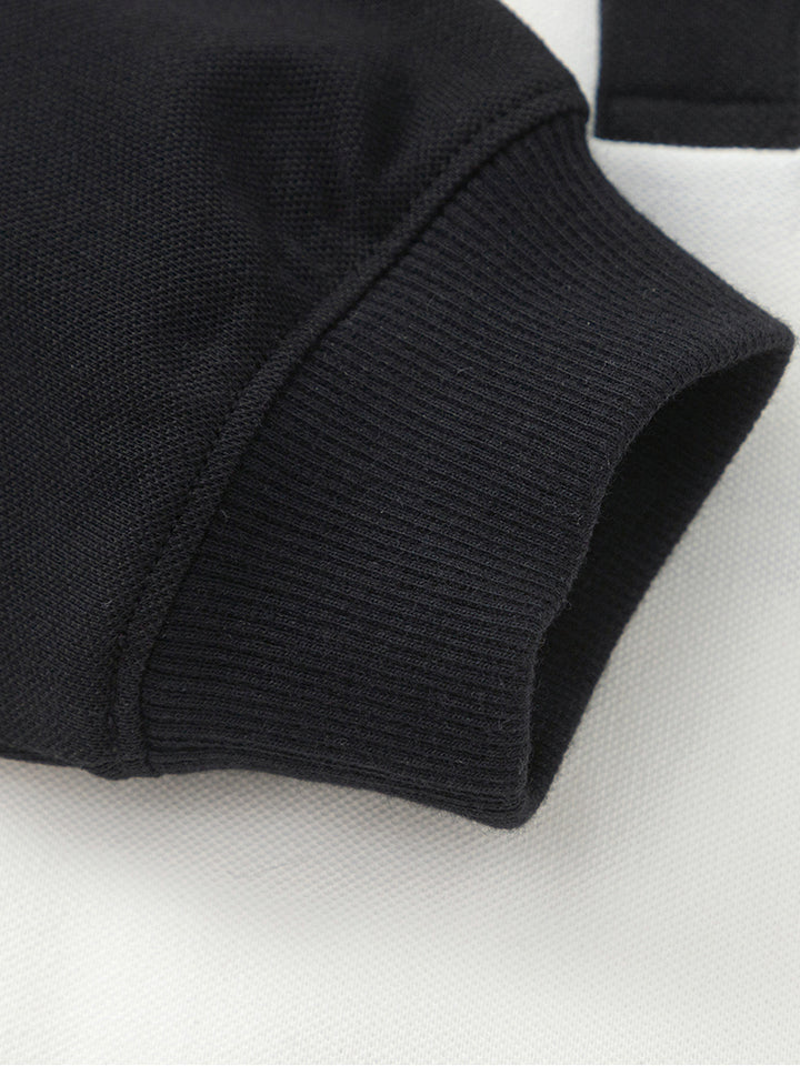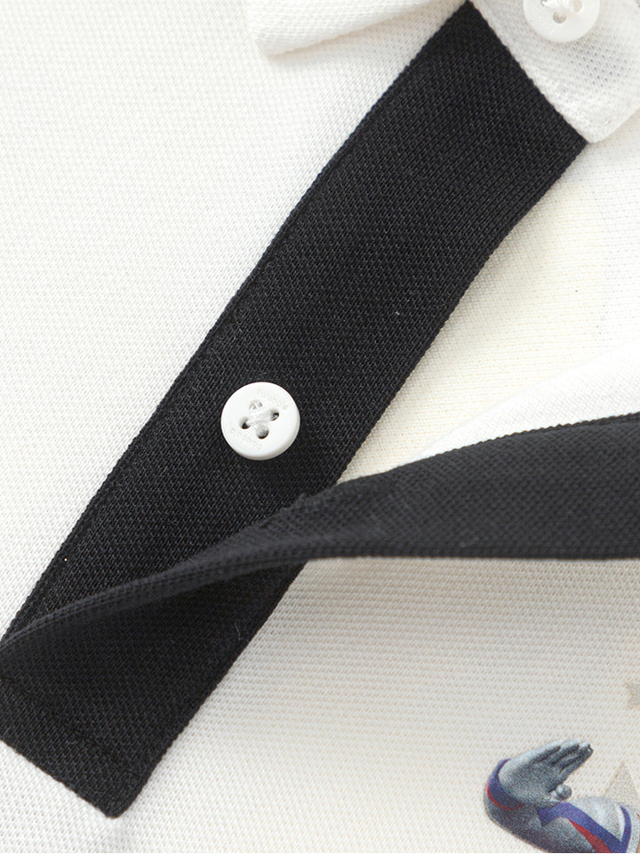 long sleeves polo t-shirt, decorated with front and back prints, comes with buttons for closure on the front side and with a classic regular collar