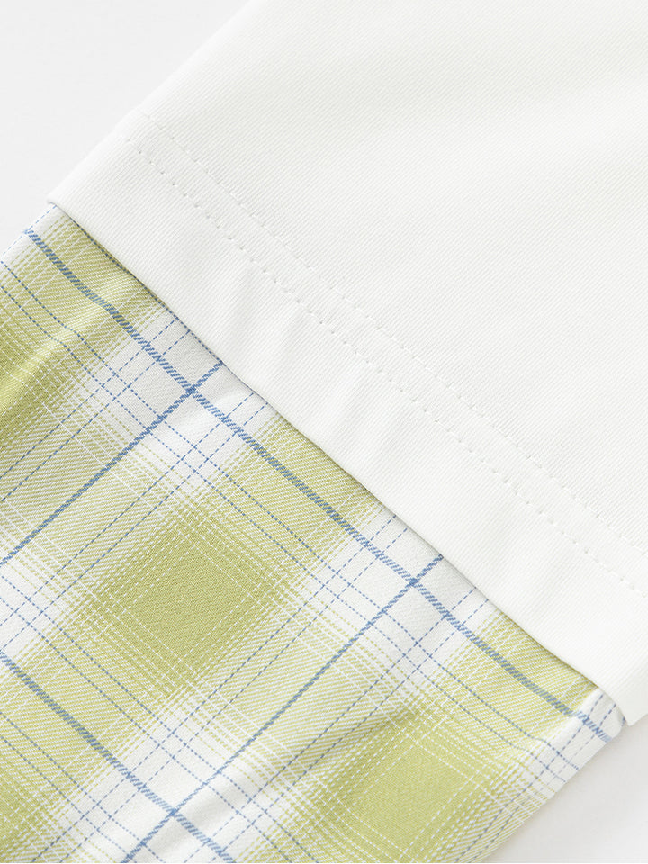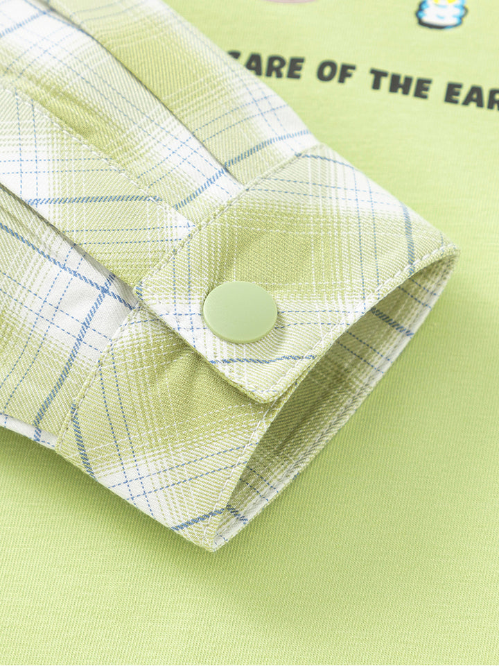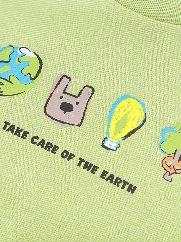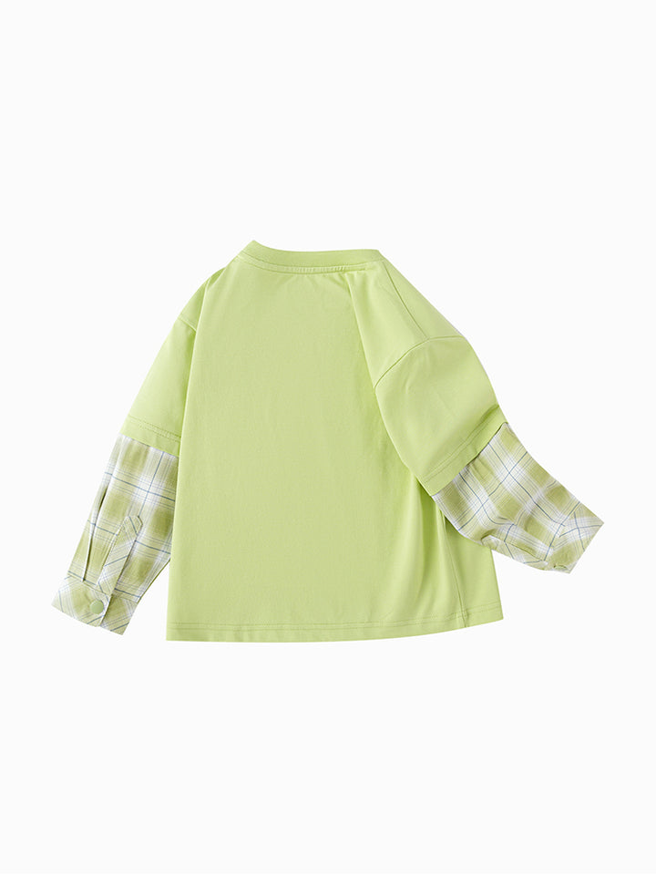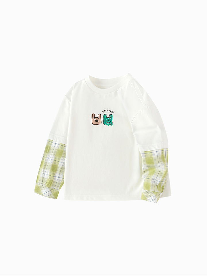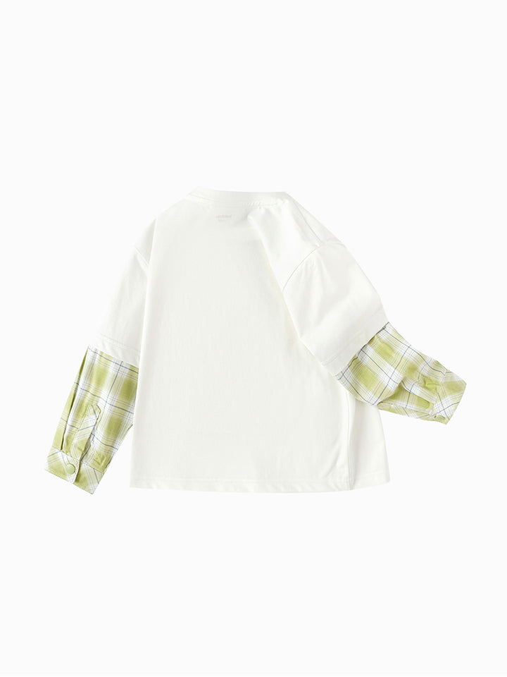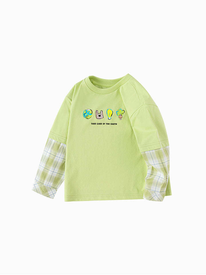 long sleeves boy t-shirt decorated with a print an contrast sleeves, comes with a rounded shape neckline